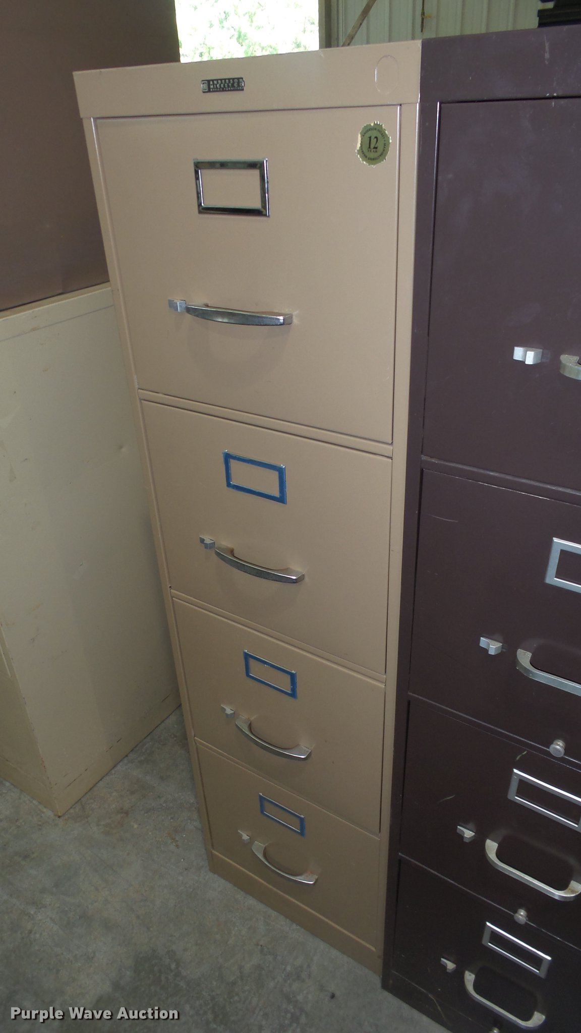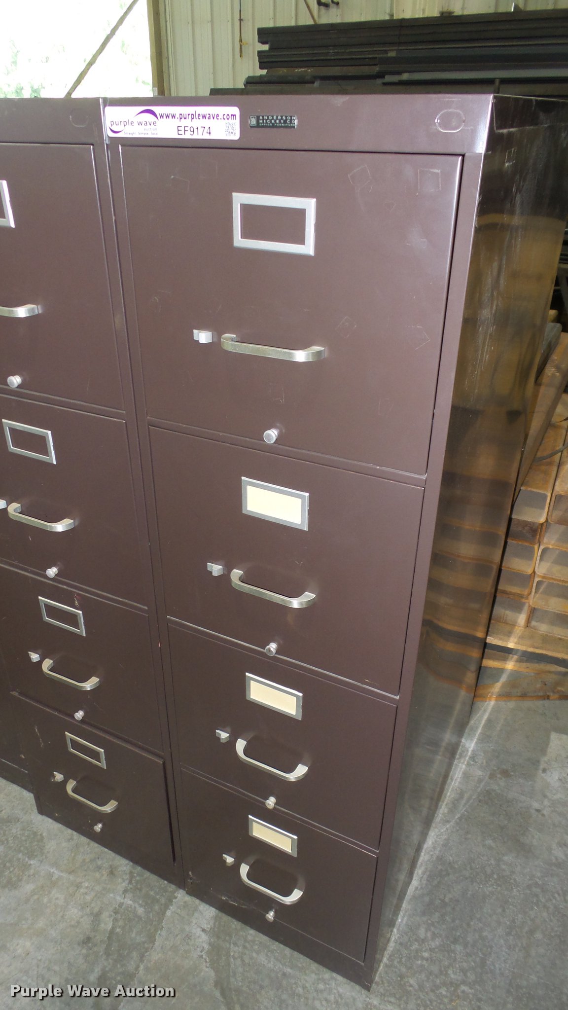 Purple Wave is selling a used Office Supplies and Equip. in Kansas. This item is a (4) Anderson Hickey four drawer filing cabinets with the following: (4) Anderson Hickey four drawer filing cabinets. USD 373 Newton High School. Newton, KS 67114