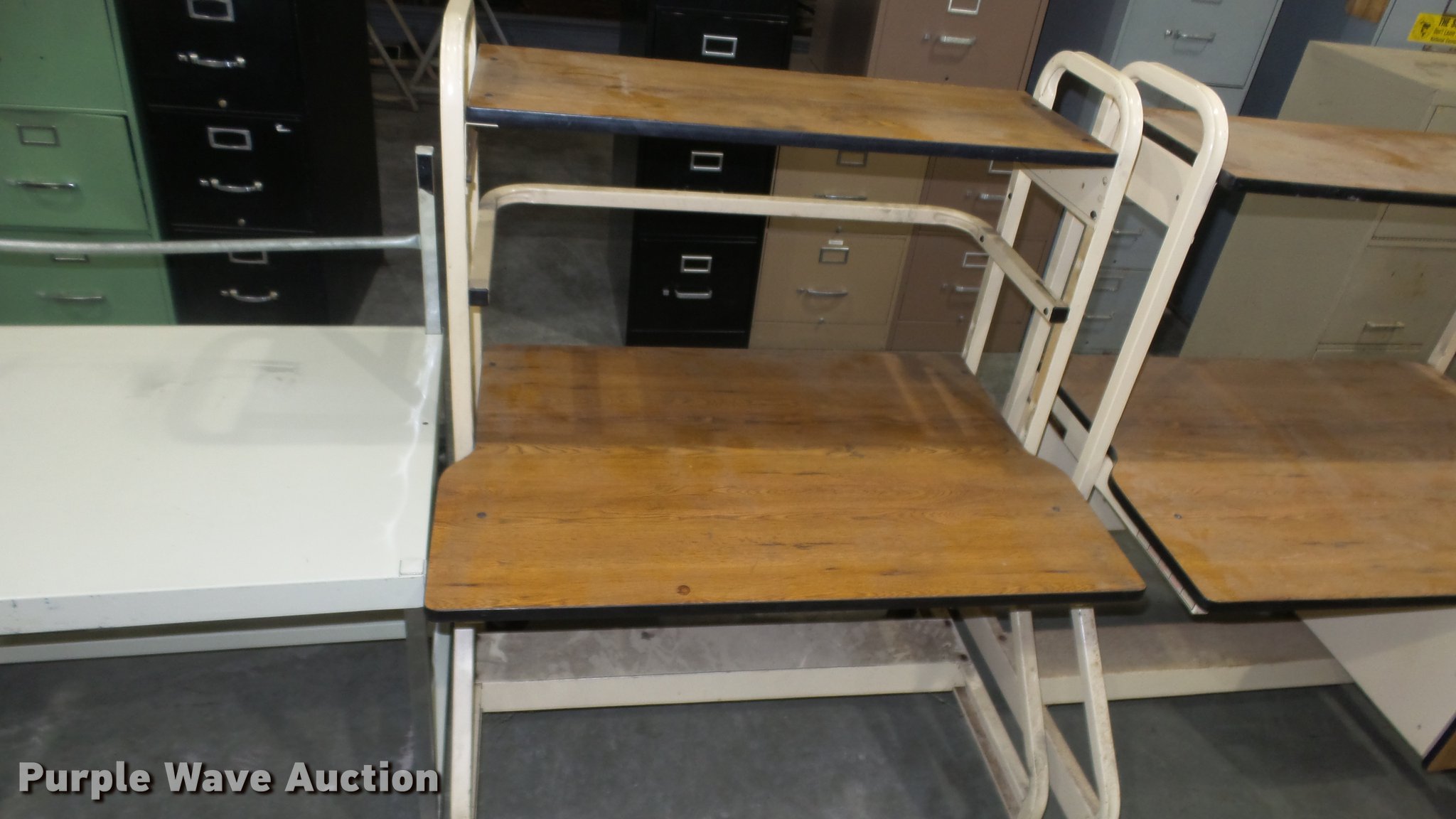 (4) computer carts. Metal computer cart, (2) wood computer carts, Wood computer desk Wheels, Printer cart, Smartboard. USD 373 Newton High School. Newton, KS 67114