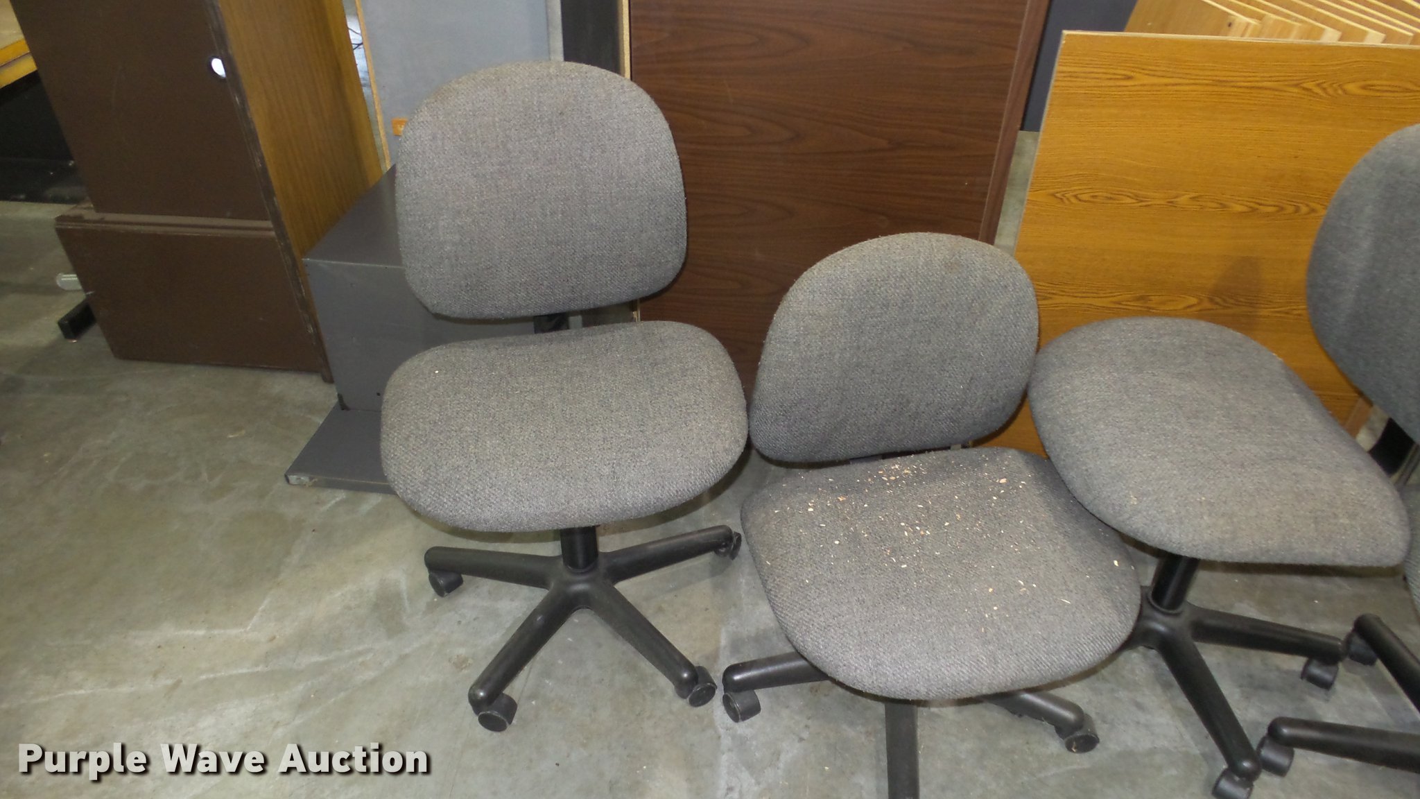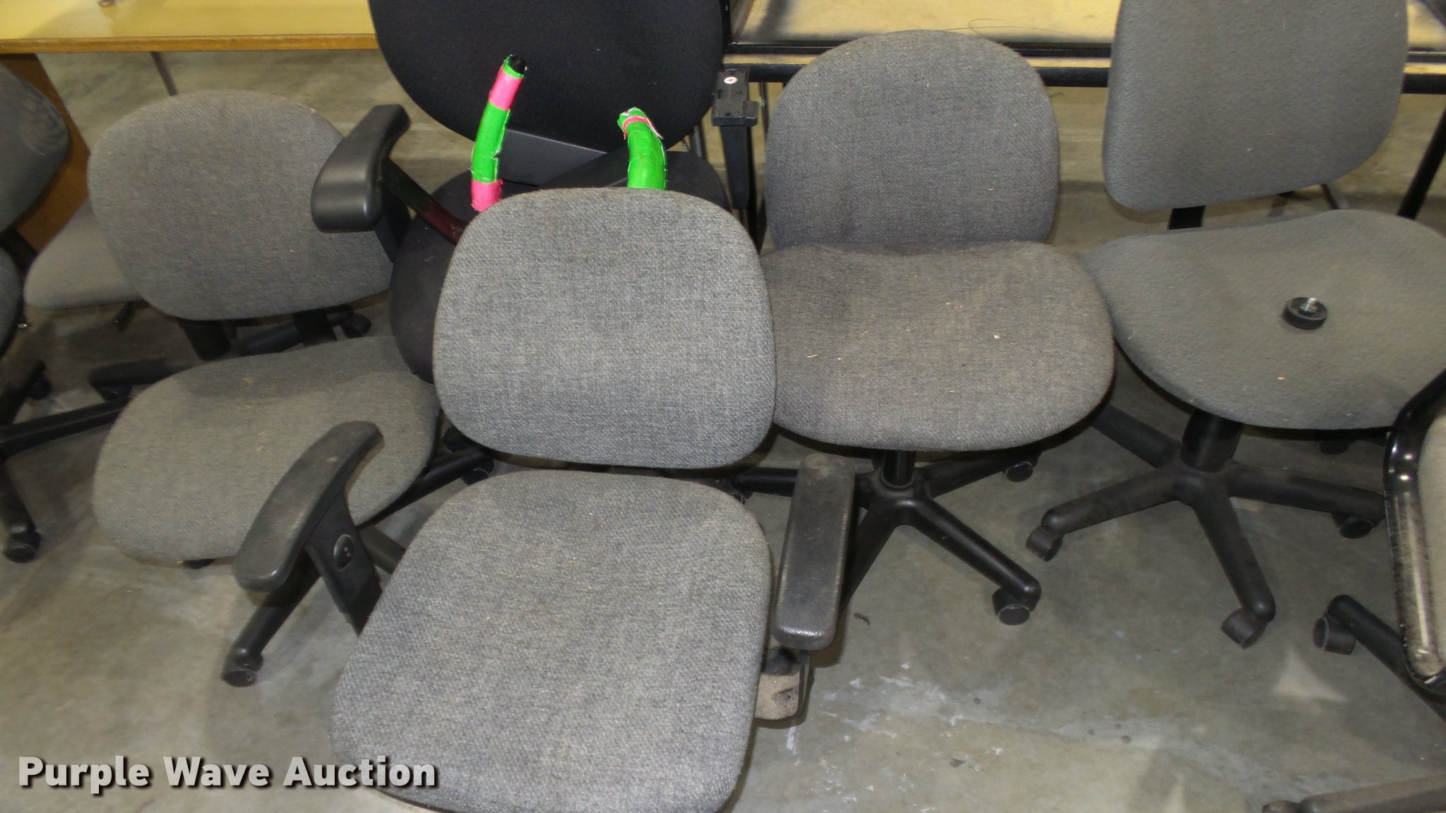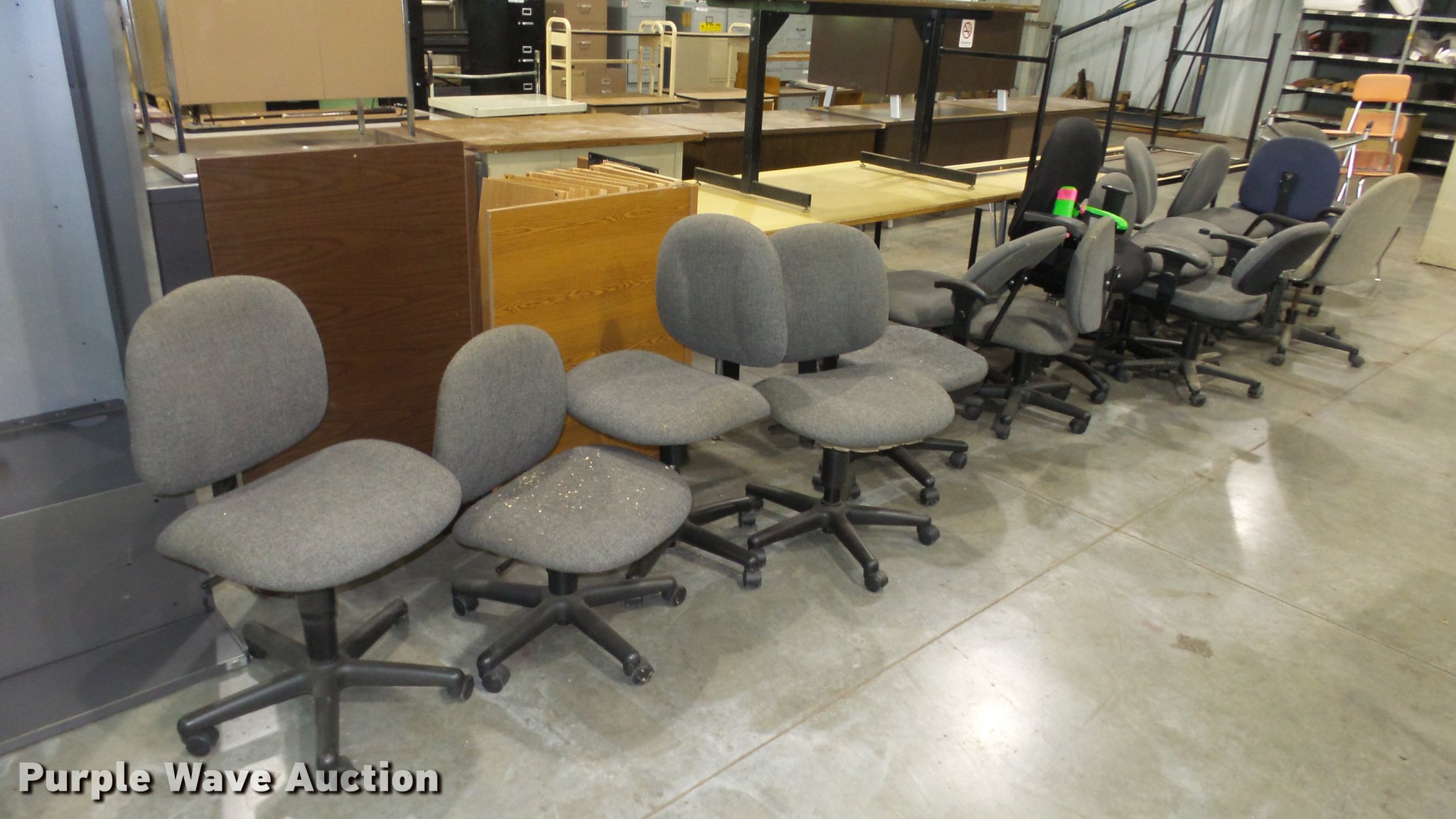 Purple Wave is selling a used Furniture in Kansas. This item is a Approximately 33 chairs with the following: Rolling and stationary, Assorted styles, Various conditions
