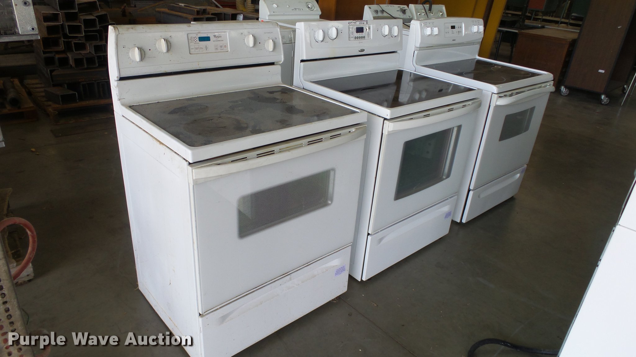 Purple Wave is selling a used Appliances in Kansas. This item is a (3) ovens with the following: (2) Whirlpool, Kenmore, Unknown operating conditions