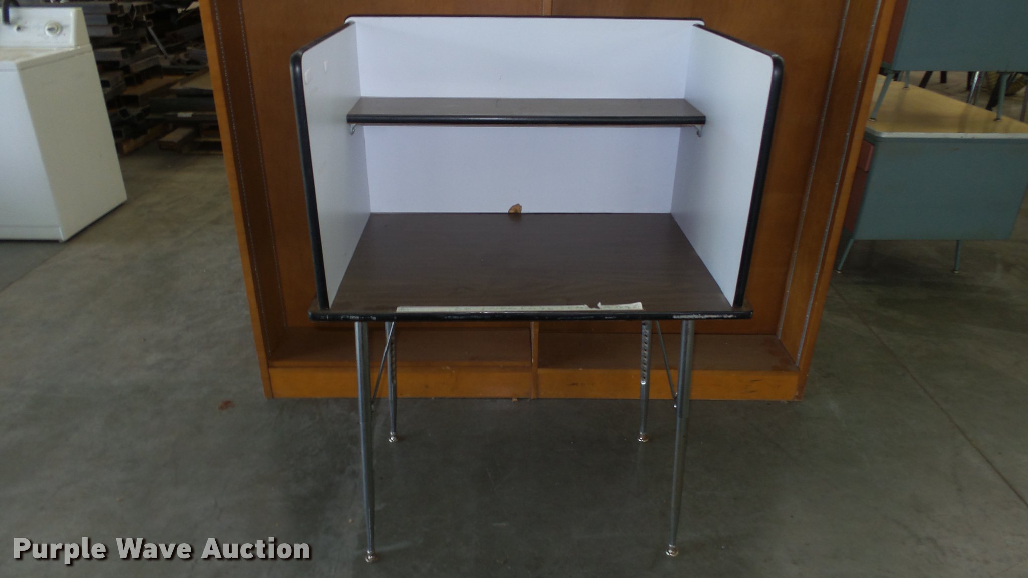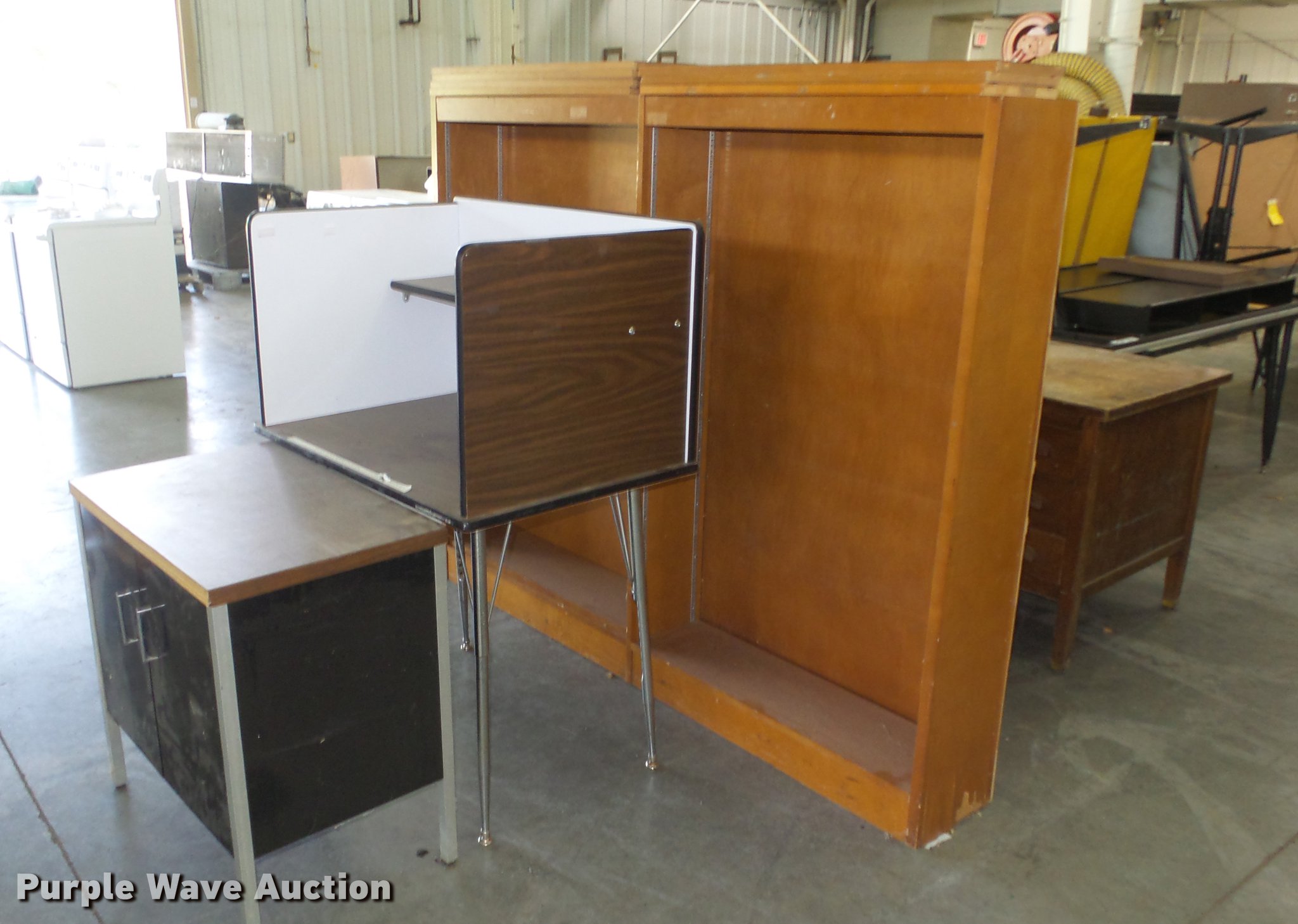 Purple Wave is selling a used Furniture in Kansas. This item is a Furniture with the following: Cabinet, Study cubicle, Wood shelf, 72" x 10" x 60", (2) rolling wood carts, Wood desk