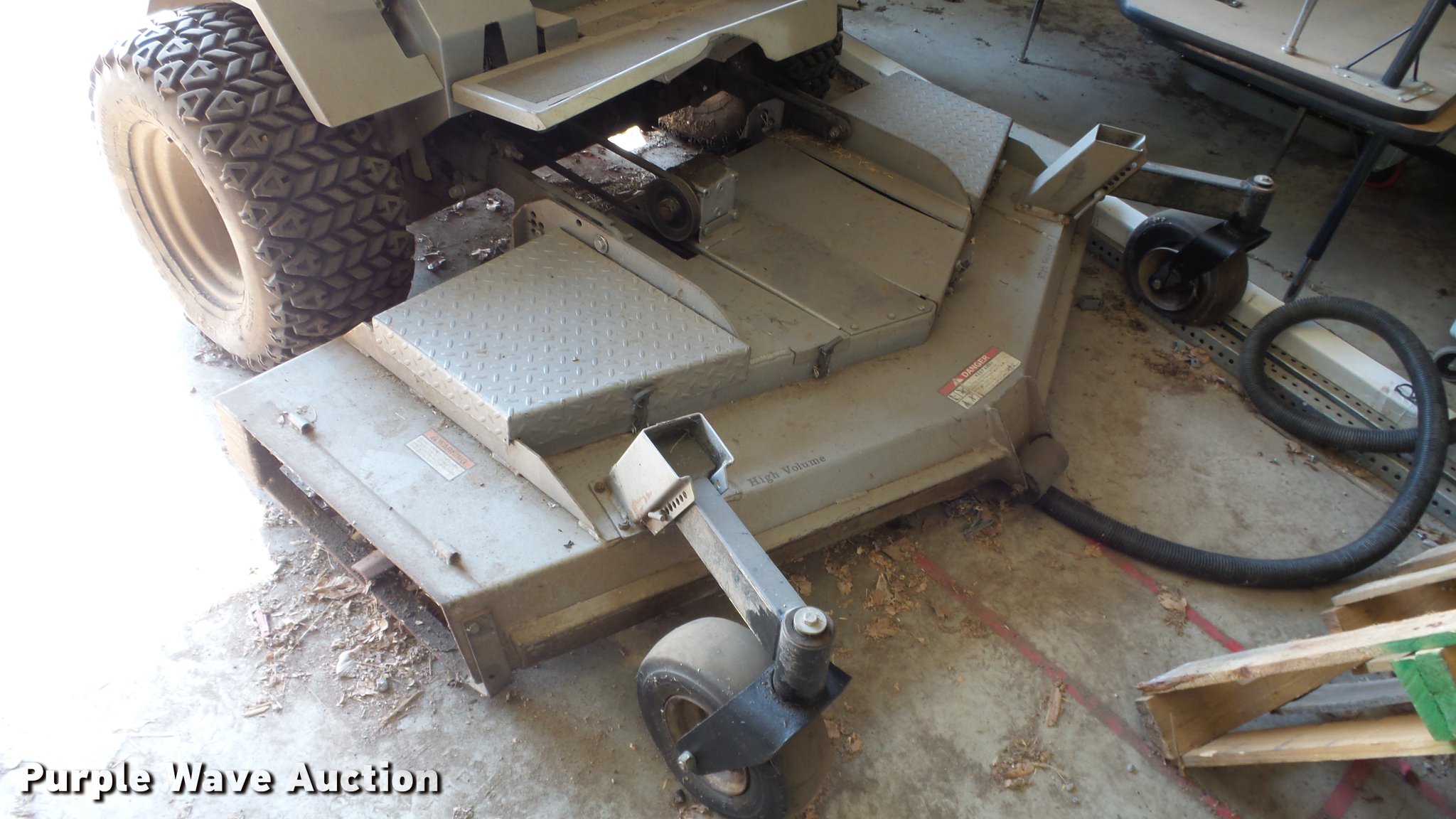 Purple Wave is selling a used Commercial Turf Mower in Kansas. This item is a Zipper STS-27 ZTR lawn mower with the following: 1,019 hours on meter, 72" cut, Gas engine, Hydrostatic transmission, 60"W mulching deck, Wheel damaged, 25x10.50-12 tires, Flat tires, Dead battery, Operational when last used approx. three years ago