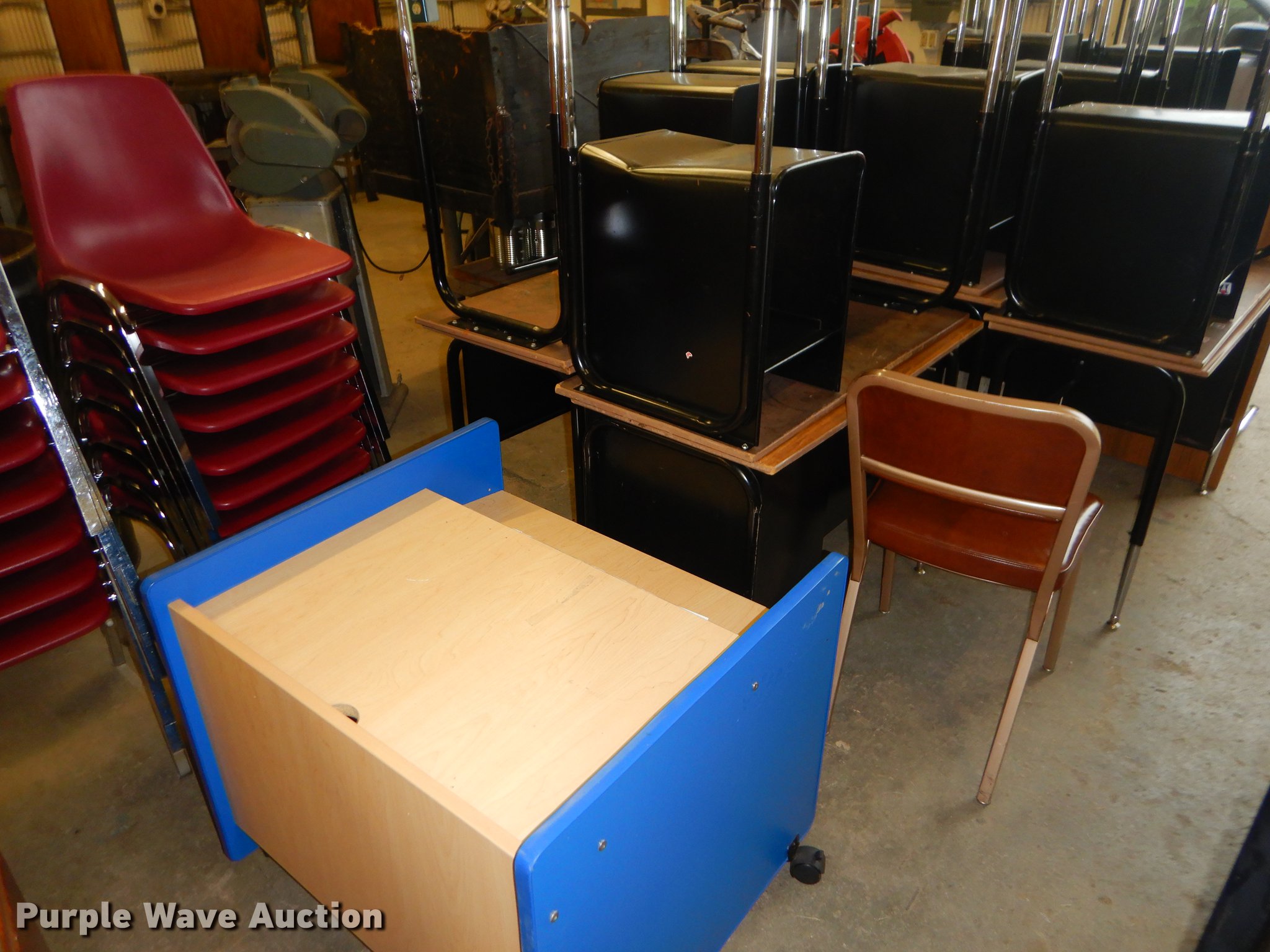 Purple Wave is selling a used Furniture in Kansas. This item is a Furniture with the following: Approx. 20 plastic chairs, (3) desks, Approx. 18 metal desks