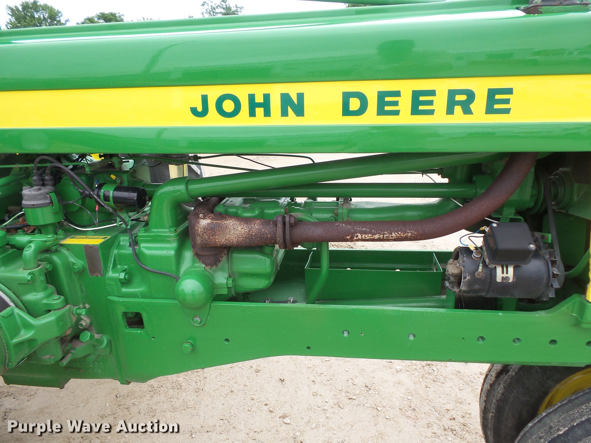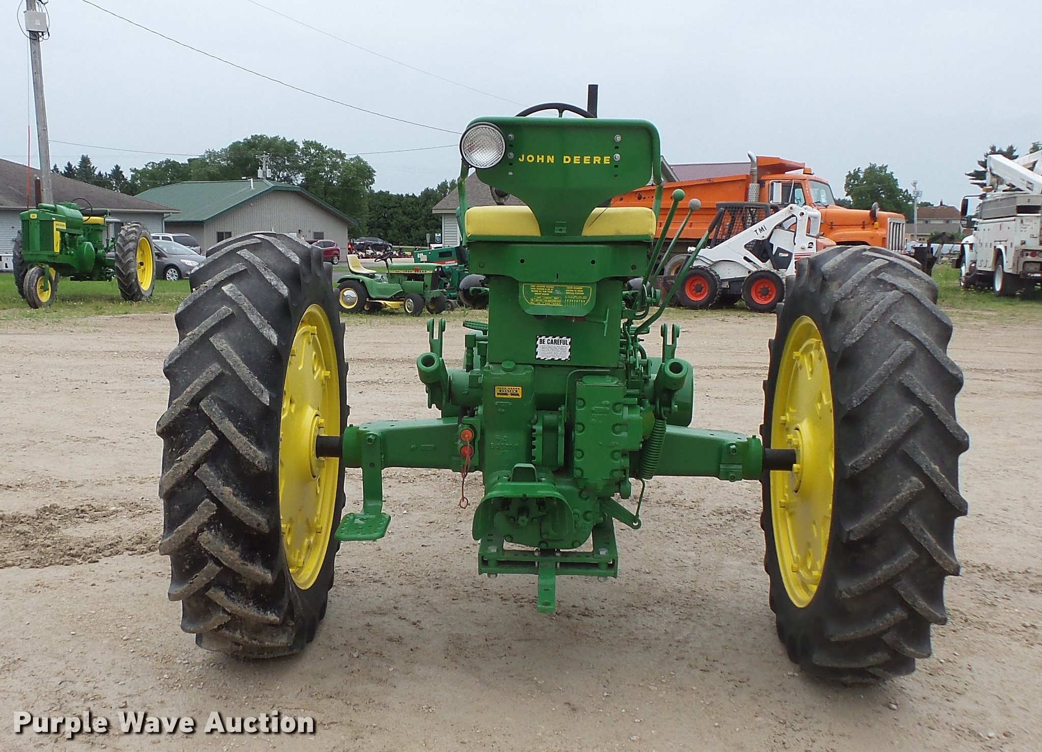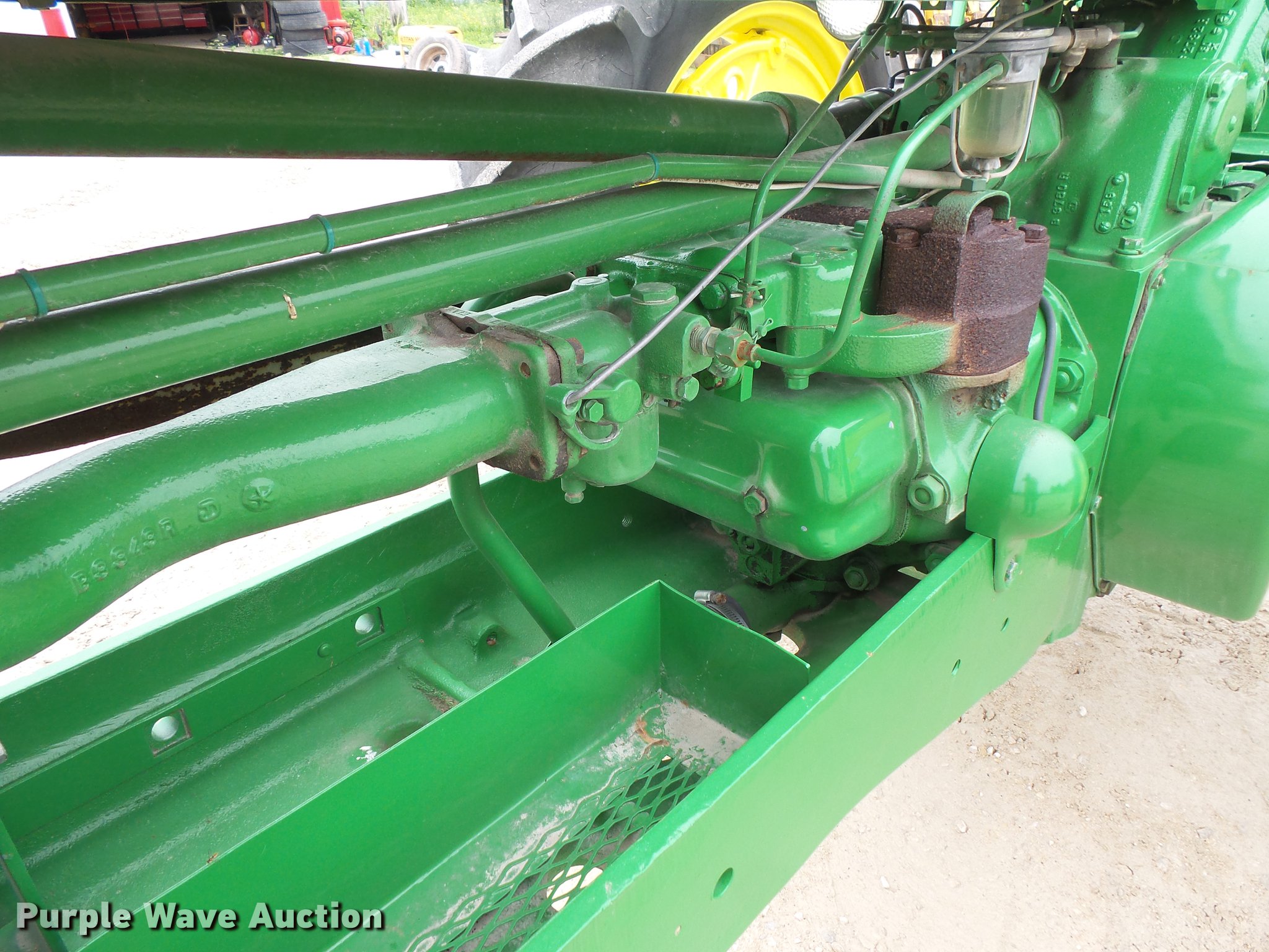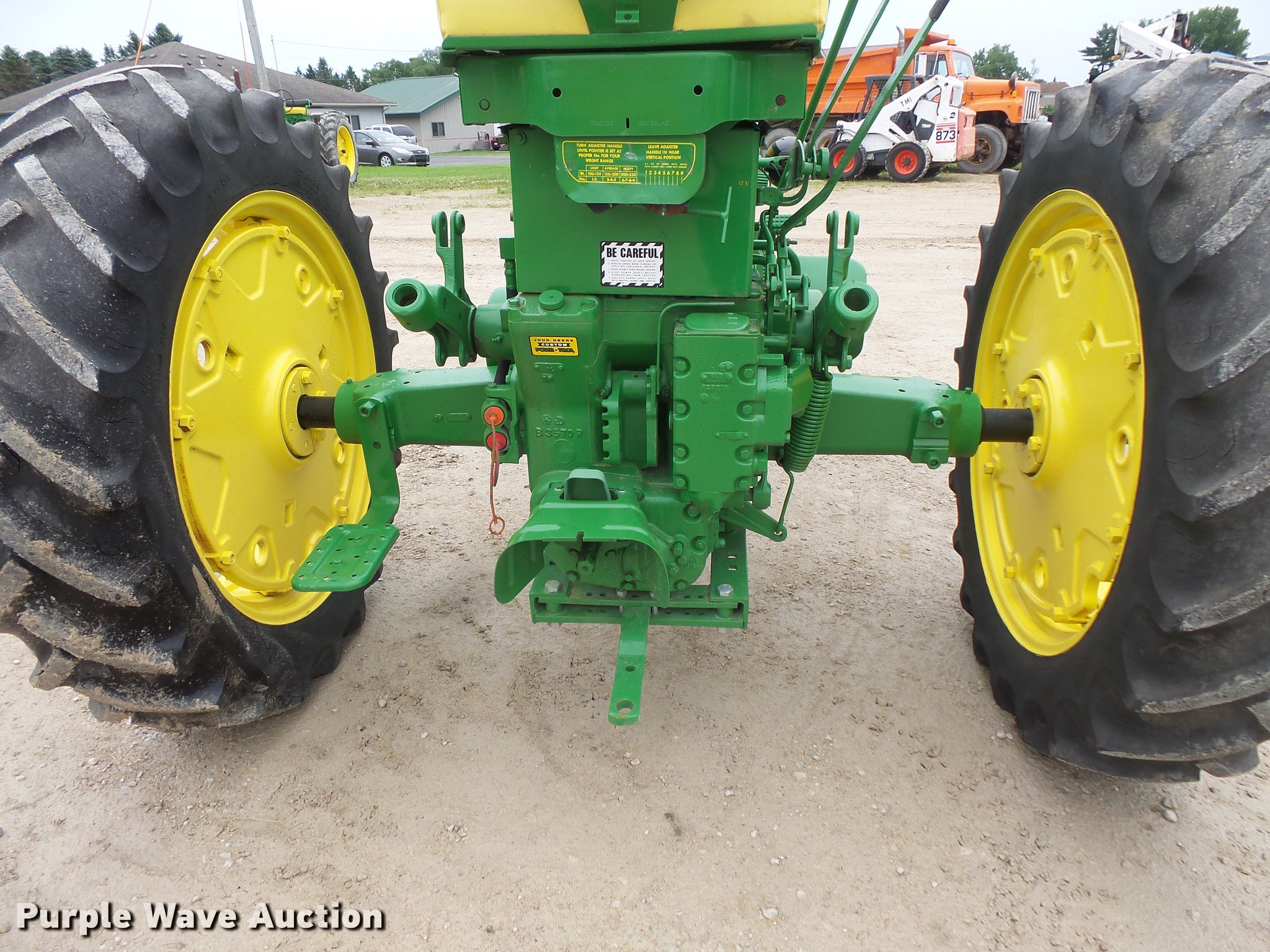 Purple Wave is selling a used Tractor in Minnesota. This item is a John Deere 520 tractor with the following: John Deere two cylinder gas engine, Manual transmission, 6F-1R gears, Power steering, Front blade, Three point, No arms, 540 PTO, Rear hydraulic remote set, 6.00-16 front tires, 13.9-36 rear tires, Serial 5207893