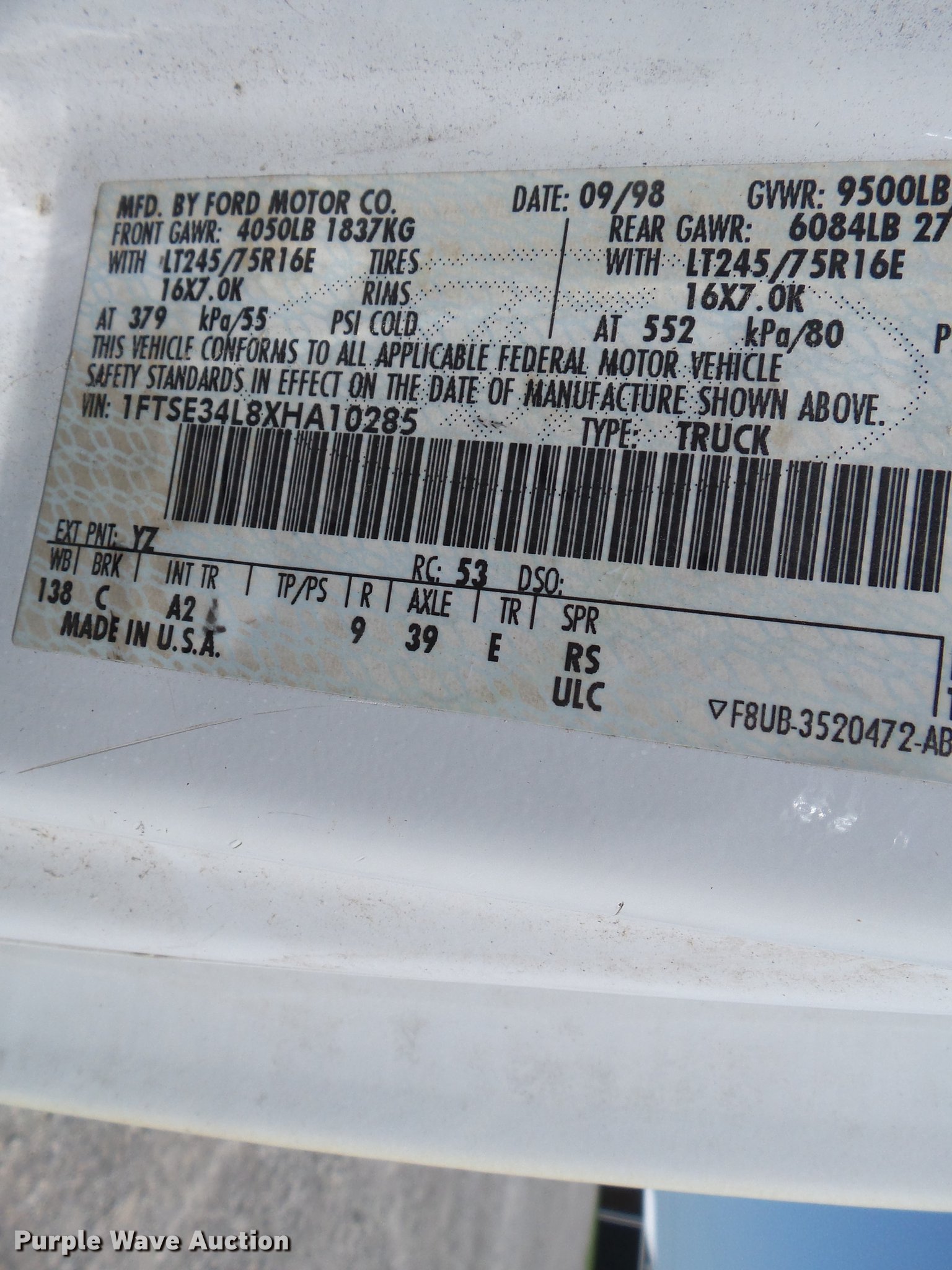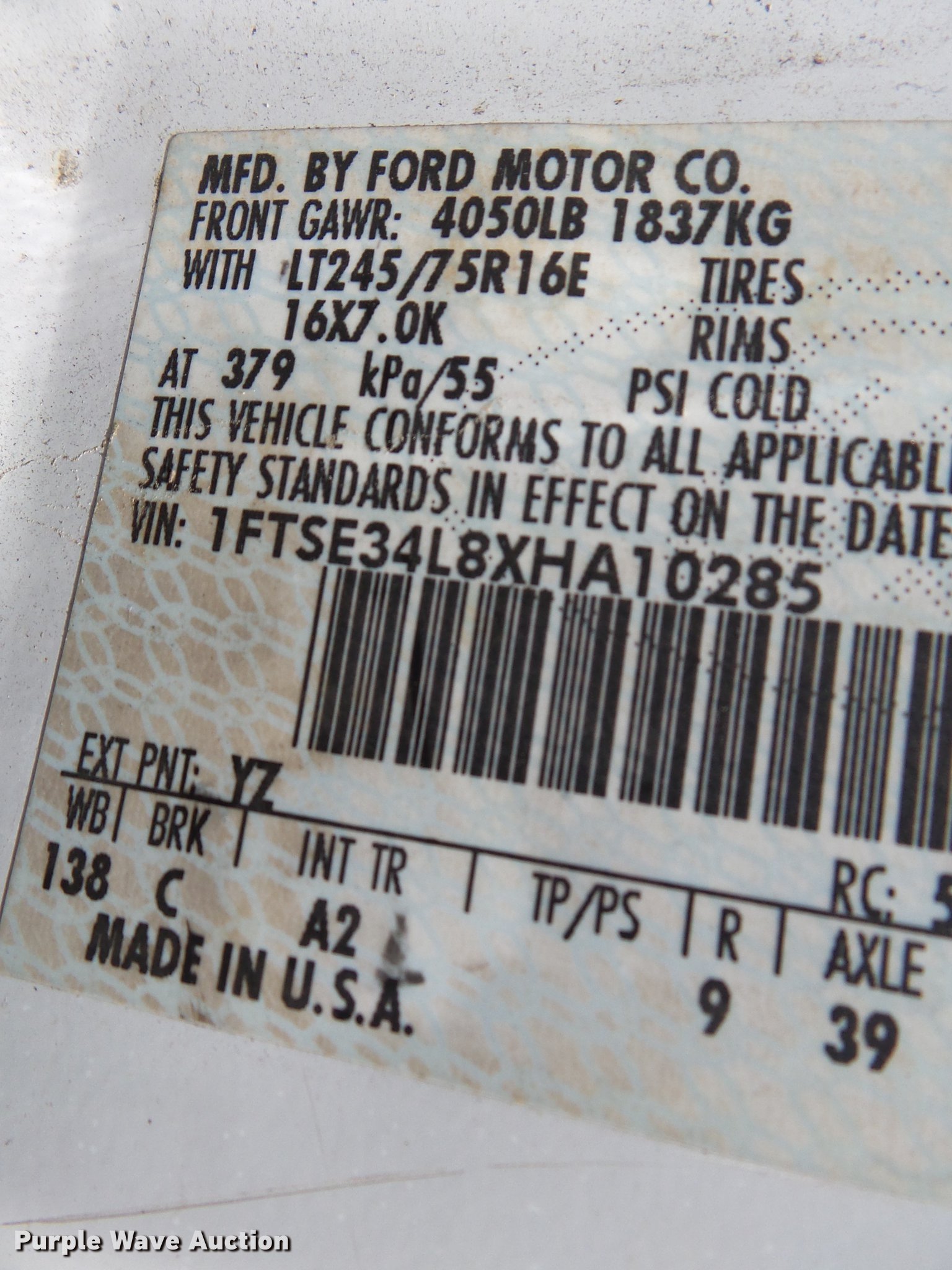 1FTSE34L8XHA10285
