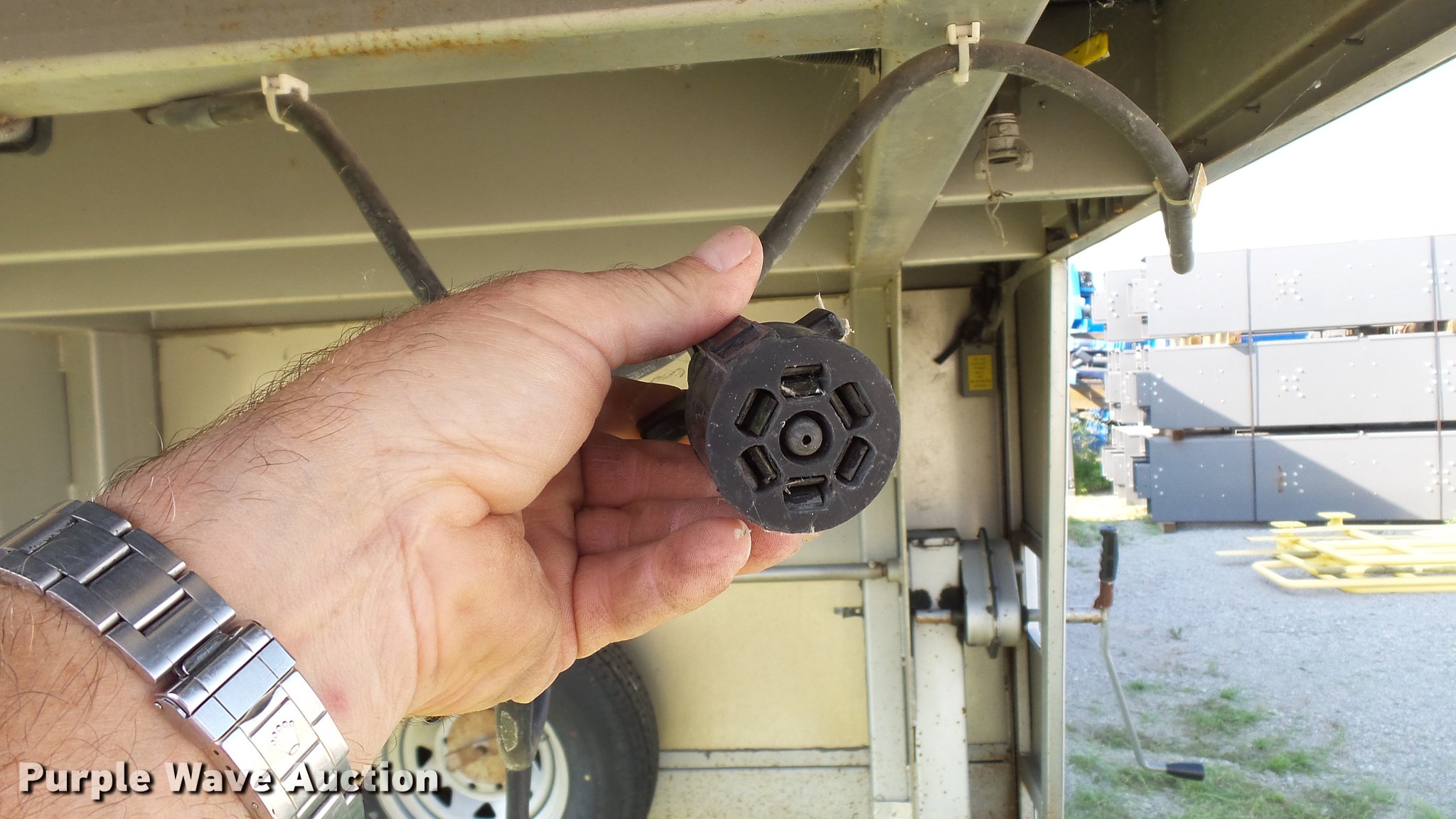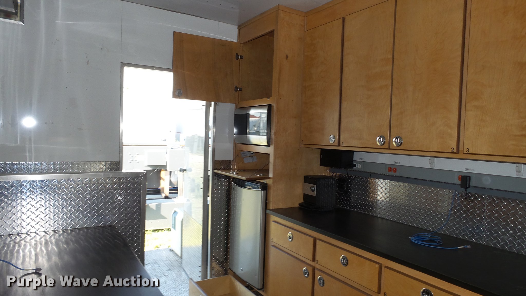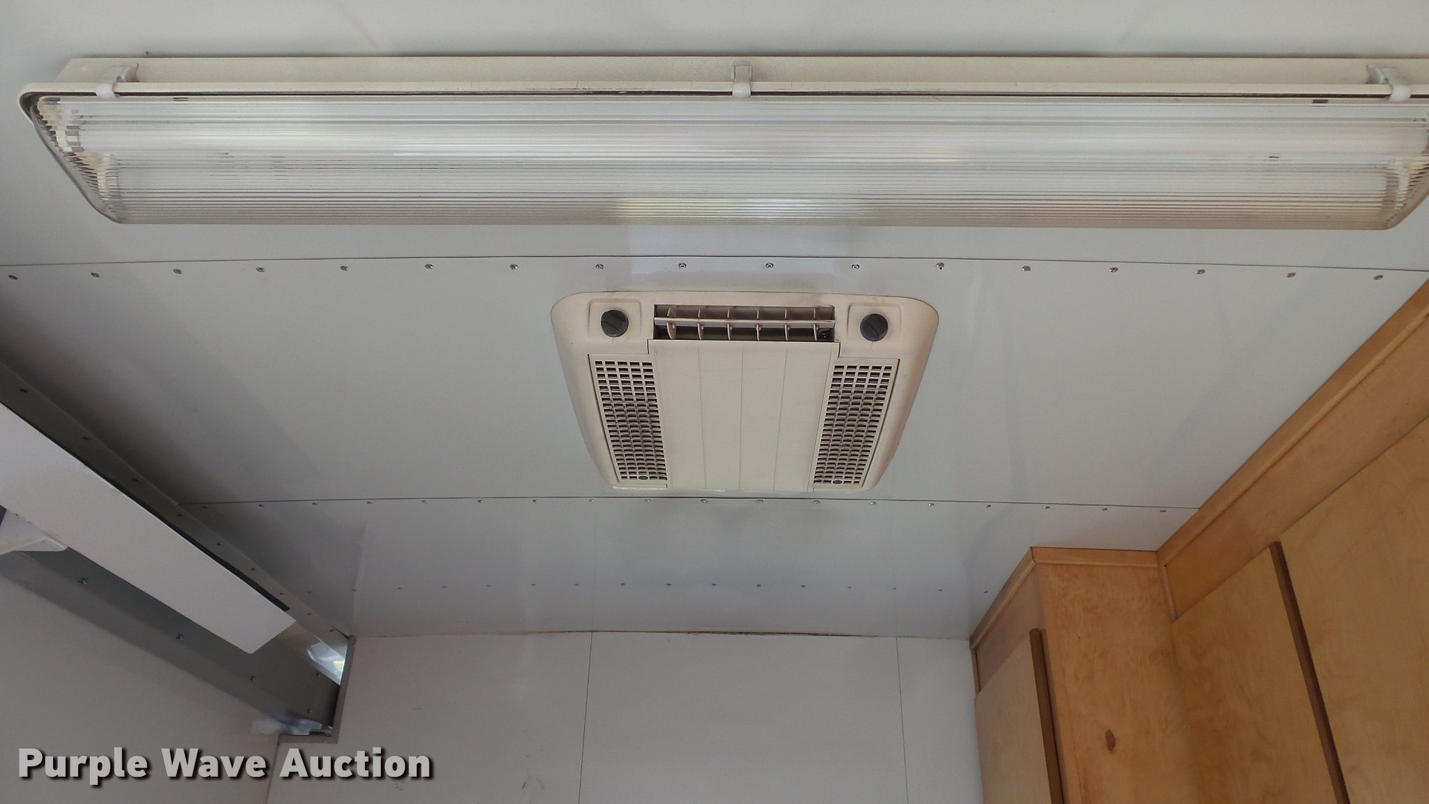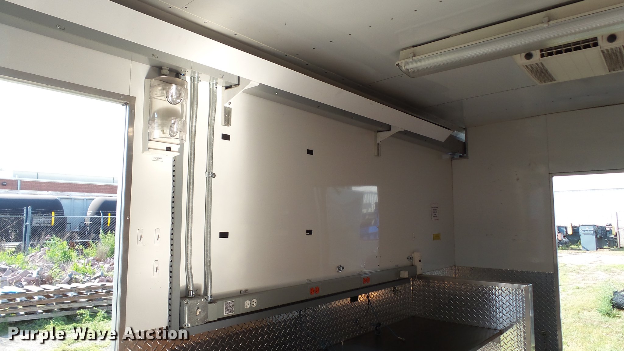 Purple Wave is selling a used Enclosed Cargo Trailer in Illinois. This item is a 2011 Wells Cargo CVG2825 enclosed cargo trailer with the following: 28'L x 96"W, Aluminum deck, Swing-our rear door, Right side entry door, Cabinets, Interior lighting, (3) Coleman-Mach roof mounted AC units, 750 watt power inverter, GE refrigerator, GE microwave, Sony AM/FM, Eaton Ferrups FE series power supply backup, Square D three phase transformer, Gooseneck hitch, Dual leg two speed landing gear, Torsion axle suspension, Electric brakes, ST235/80R16 tires, GVWR 14,700 lbs, GAWR 6,000 lbs