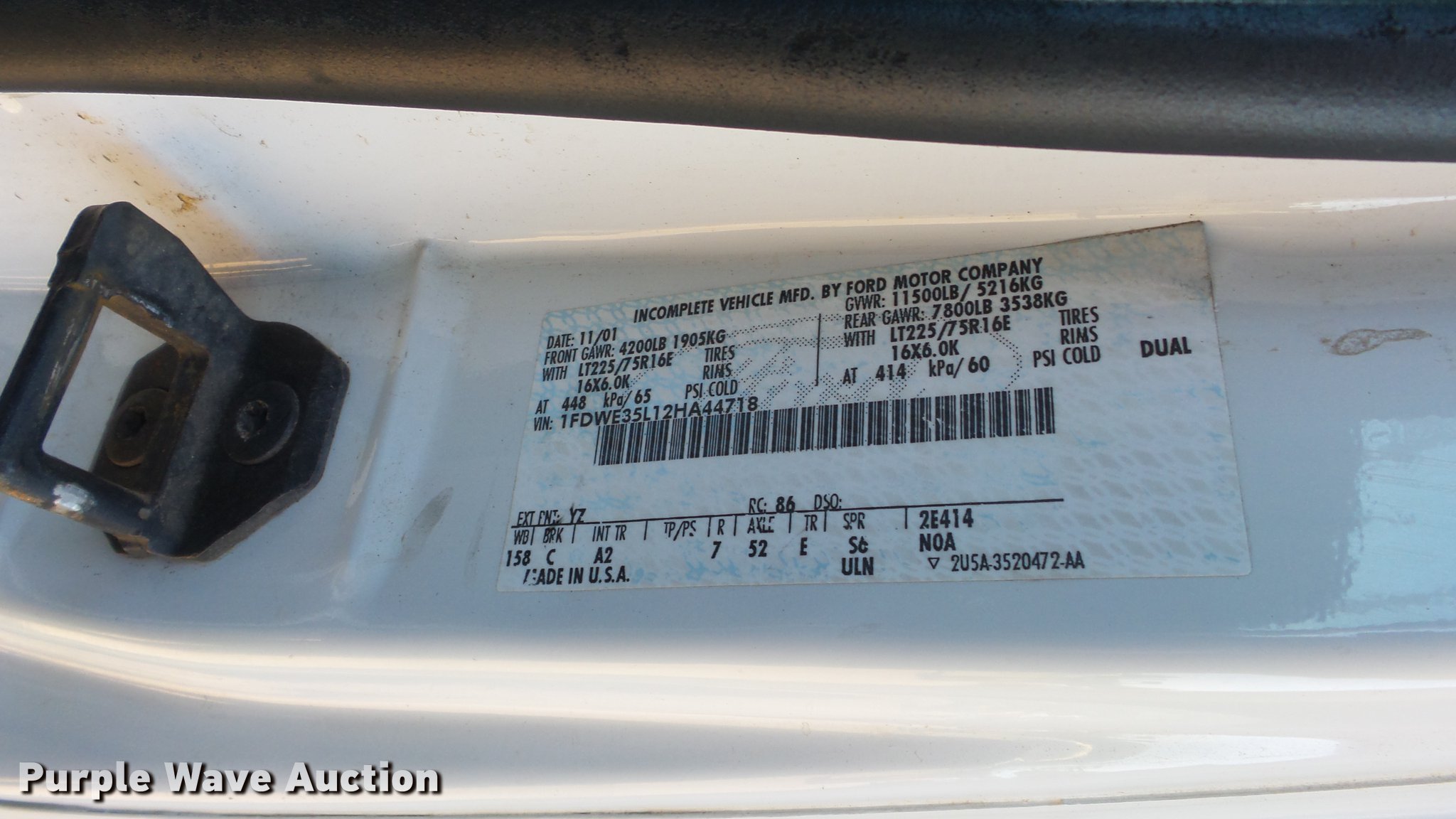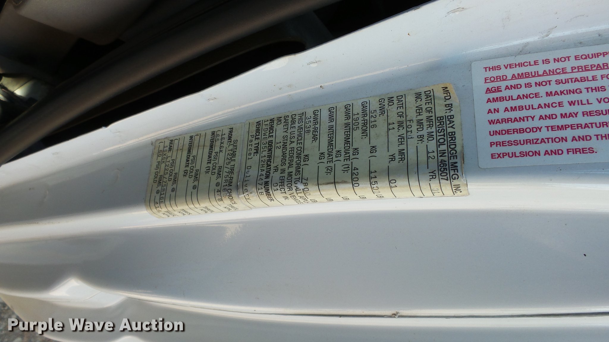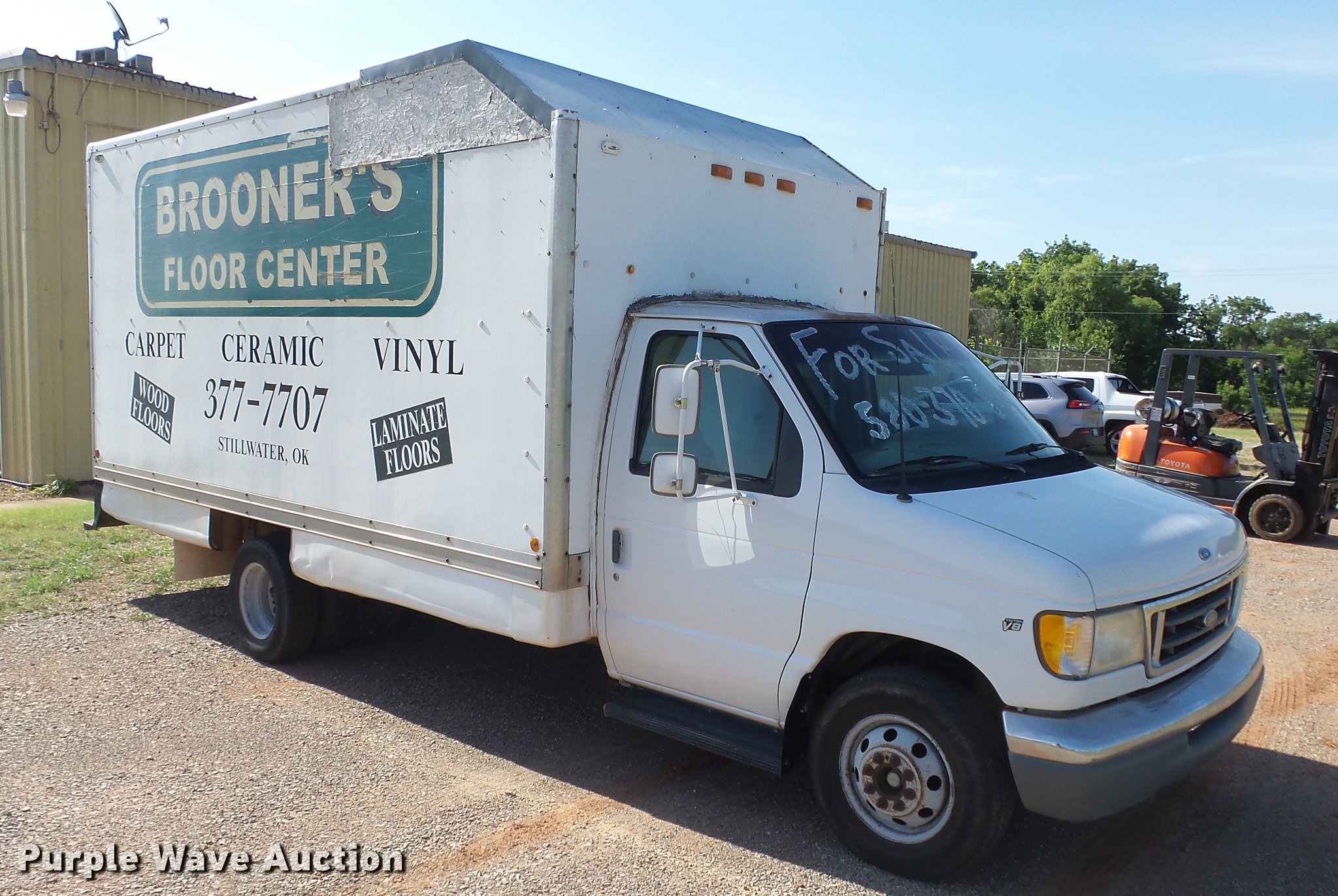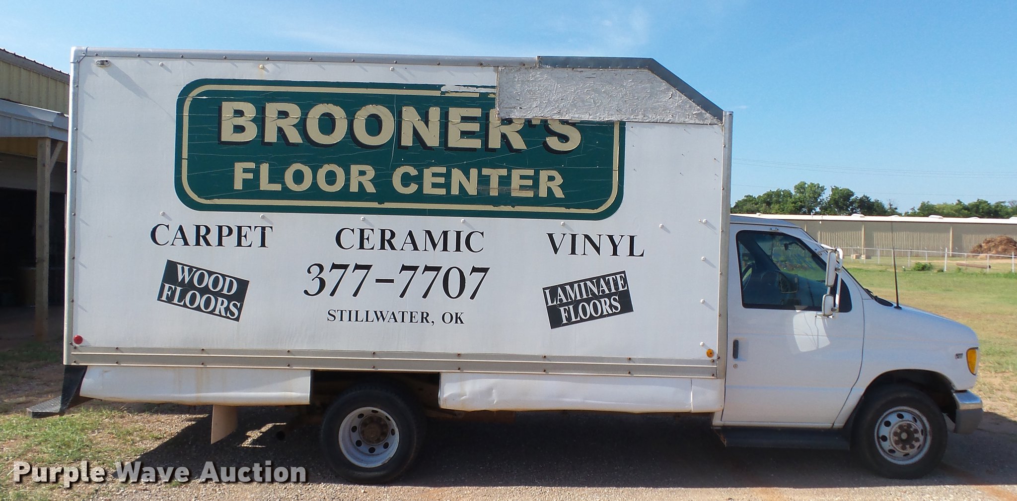 Purple Wave is selling a used 3/4 or 1 Ton Pickup or Van in Oklahoma. This item is a 2002 Ford Econoline E350 box van with the following: 115,247 miles on odometer, 5.4L V8 SOHC 16V gas engine, Automatic transmission, Single axle, AC and heat, AM/FM, Manual windows and locks, Vinyl interior, Whiting 15'L x 8'W box bed, Roll-up rear door, Ramp, 225/75R16 tires
