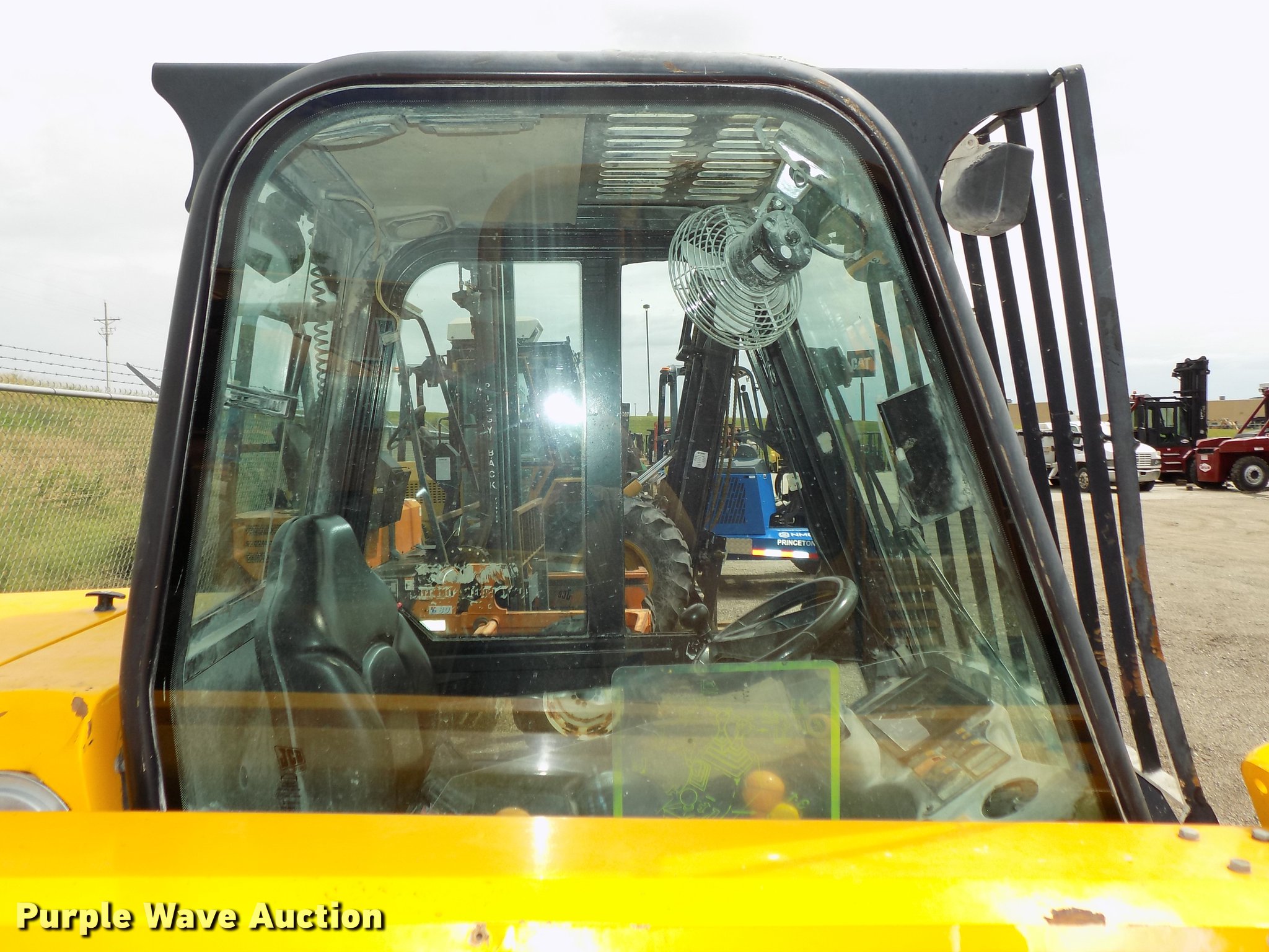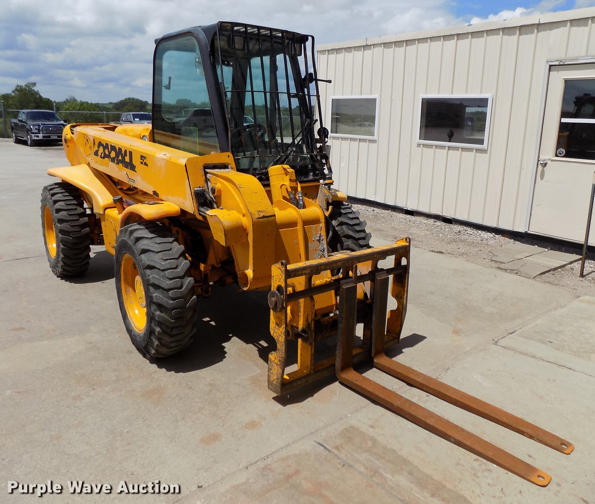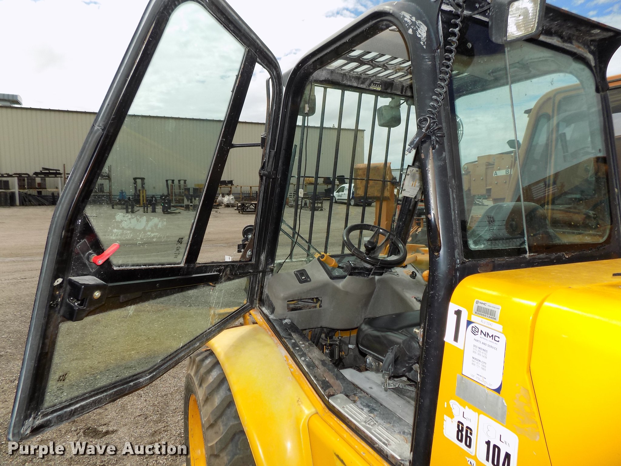 Purple Wave is selling a used Telehandler in Nebraska. This item is a 2001 JCB 520 telehandler with the following: 7,242 hours on meter, Perkins 4.2L four cylinder diesel engine, 76 HP, Serial 174072H, Synchro shuttle shift transmission, 4F-4R gears, Four wheel steer, Enclosed cab, Heat, Wiper, Worklights, 4,400 lbs maximum lift capacity, 16.4' maximum lift height, 9.7' maximum reach, 1,650 lbs maximum lift capacity at maximum reach, 46"L x 4"W forks, Holes in forks, 41"W x 27"H backrest, Auxiliary hydraulics, Additional glass panel for cab door included, Load chart, 10.5/80-18 tires, 10,000 lbs. base operating weight, Serial SLP520501F0881568, Unit# RLU12043