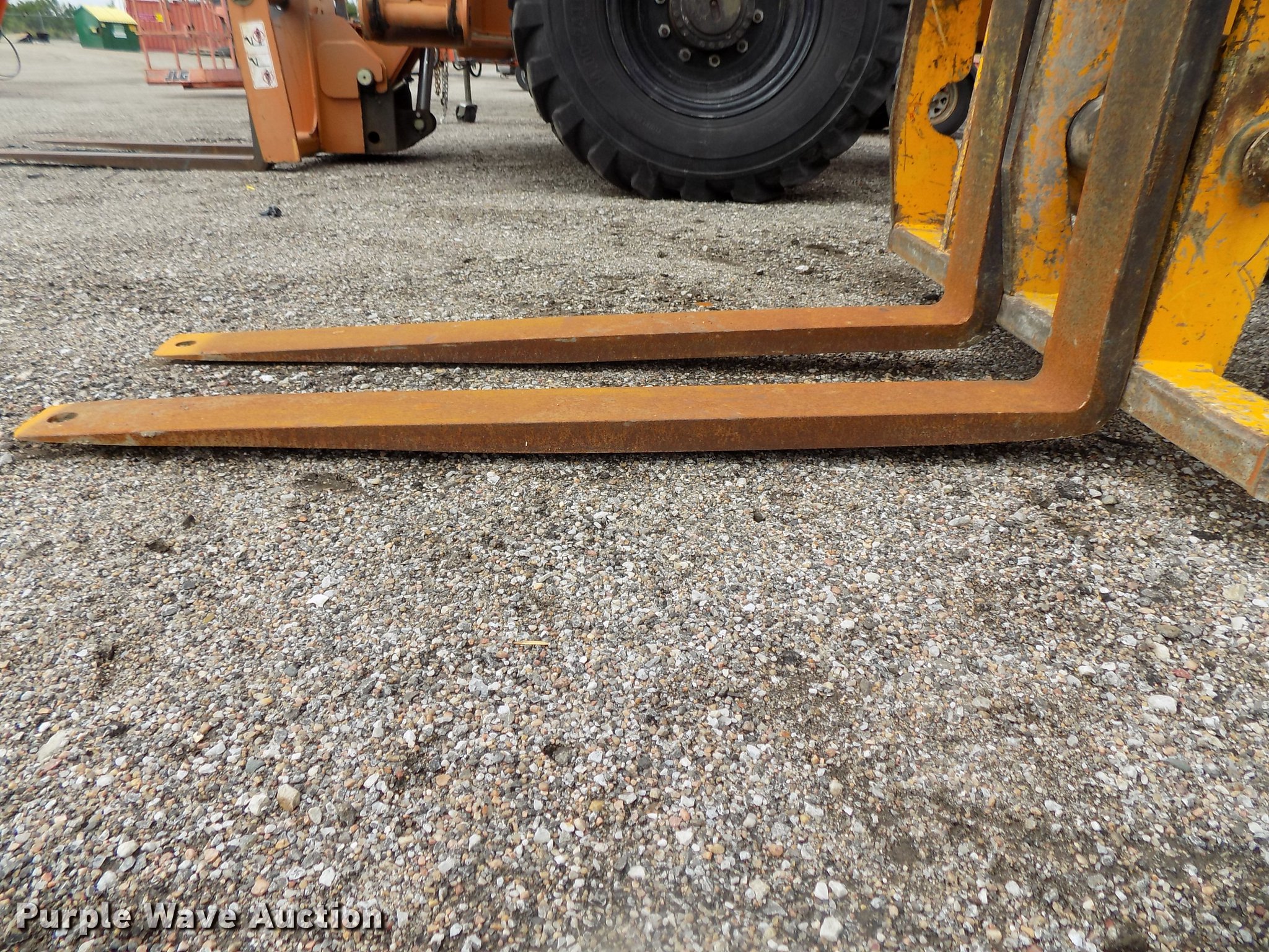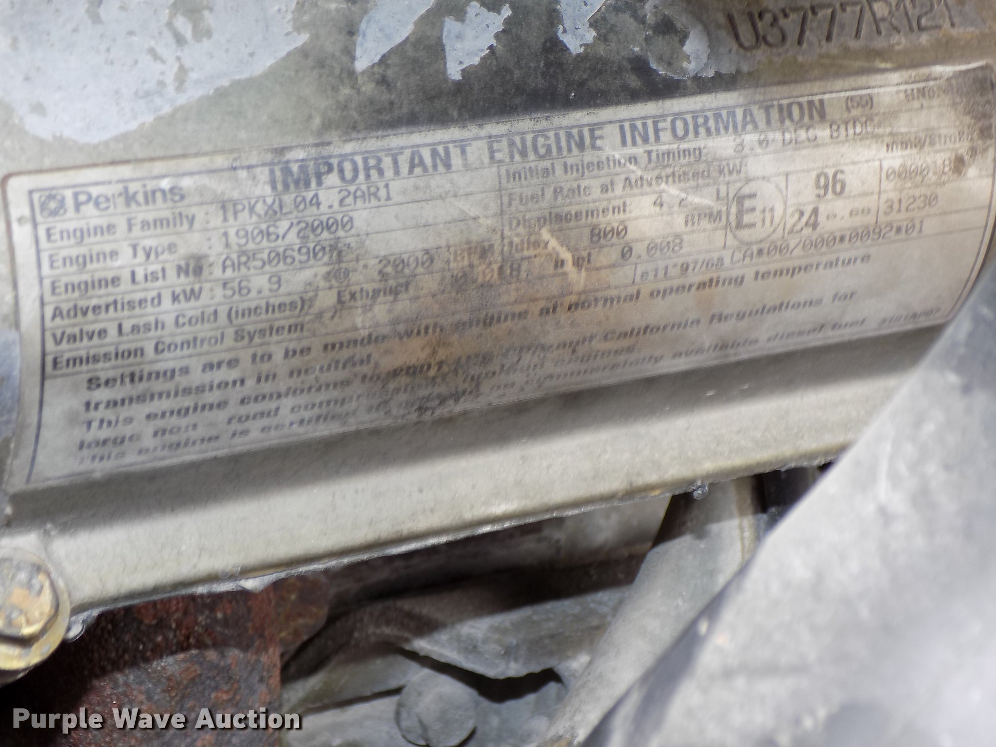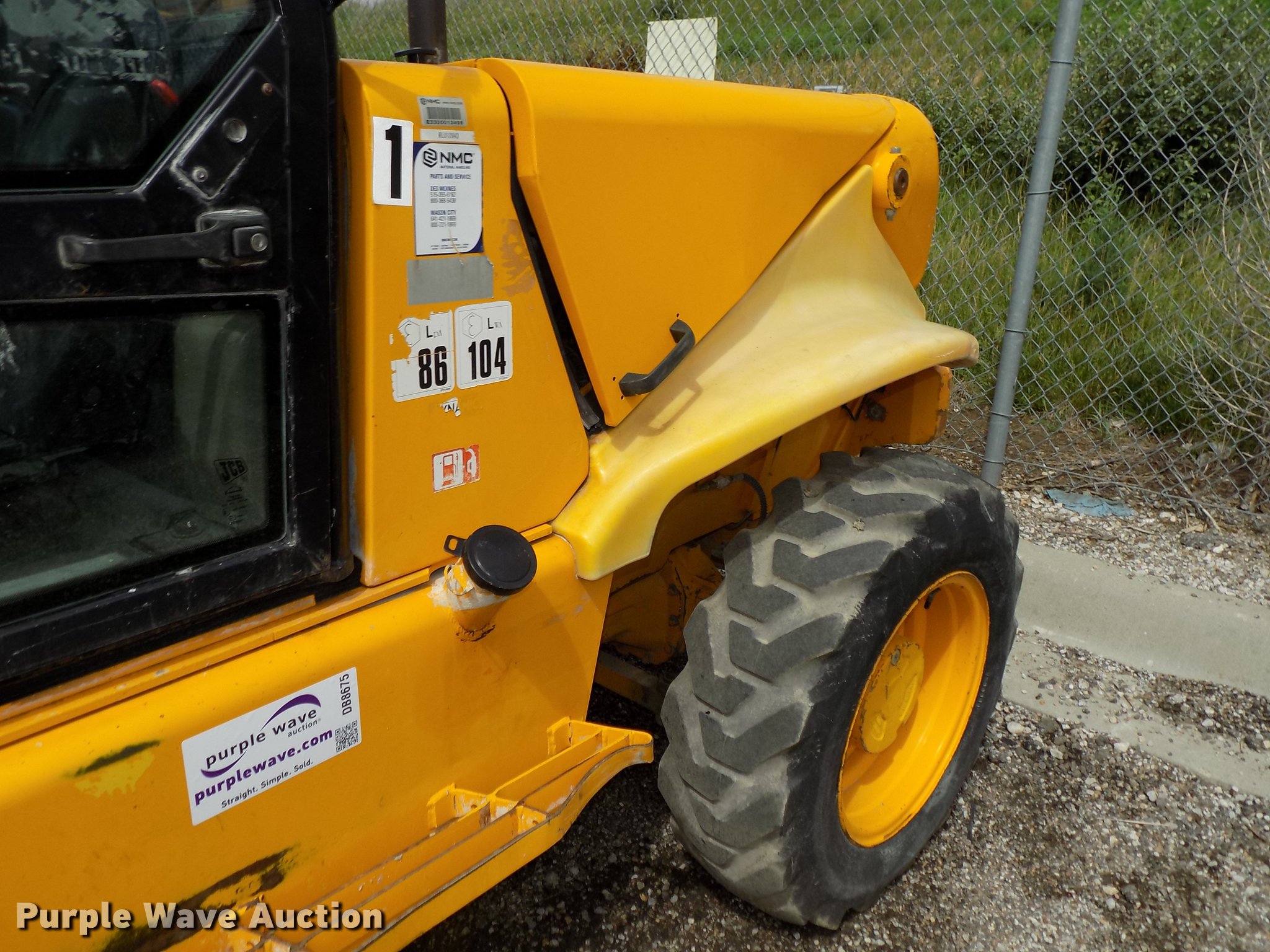 Purple Wave is selling a used Telehandler in Nebraska. This item is a 2001 JCB 520 telehandler with the following: 7,242 hours on meter, Perkins 4.2L four cylinder diesel engine, 76 HP, Serial 174072H, Synchro shuttle shift transmission, 4F-4R gears, Four wheel steer, Enclosed cab, Heat, Wiper, Worklights, 4,400 lbs maximum lift capacity, 16.4' maximum lift height, 9.7' maximum reach, 1,650 lbs maximum lift capacity at maximum reach, 46"L x 4"W forks, Holes in forks, 41"W x 27"H backrest, Auxiliary hydraulics, Additional glass panel for cab door included, Load chart, 10.5/80-18 tires, 10,000 lbs. base operating weight, Serial SLP520501F0881568, Unit# RLU12043
