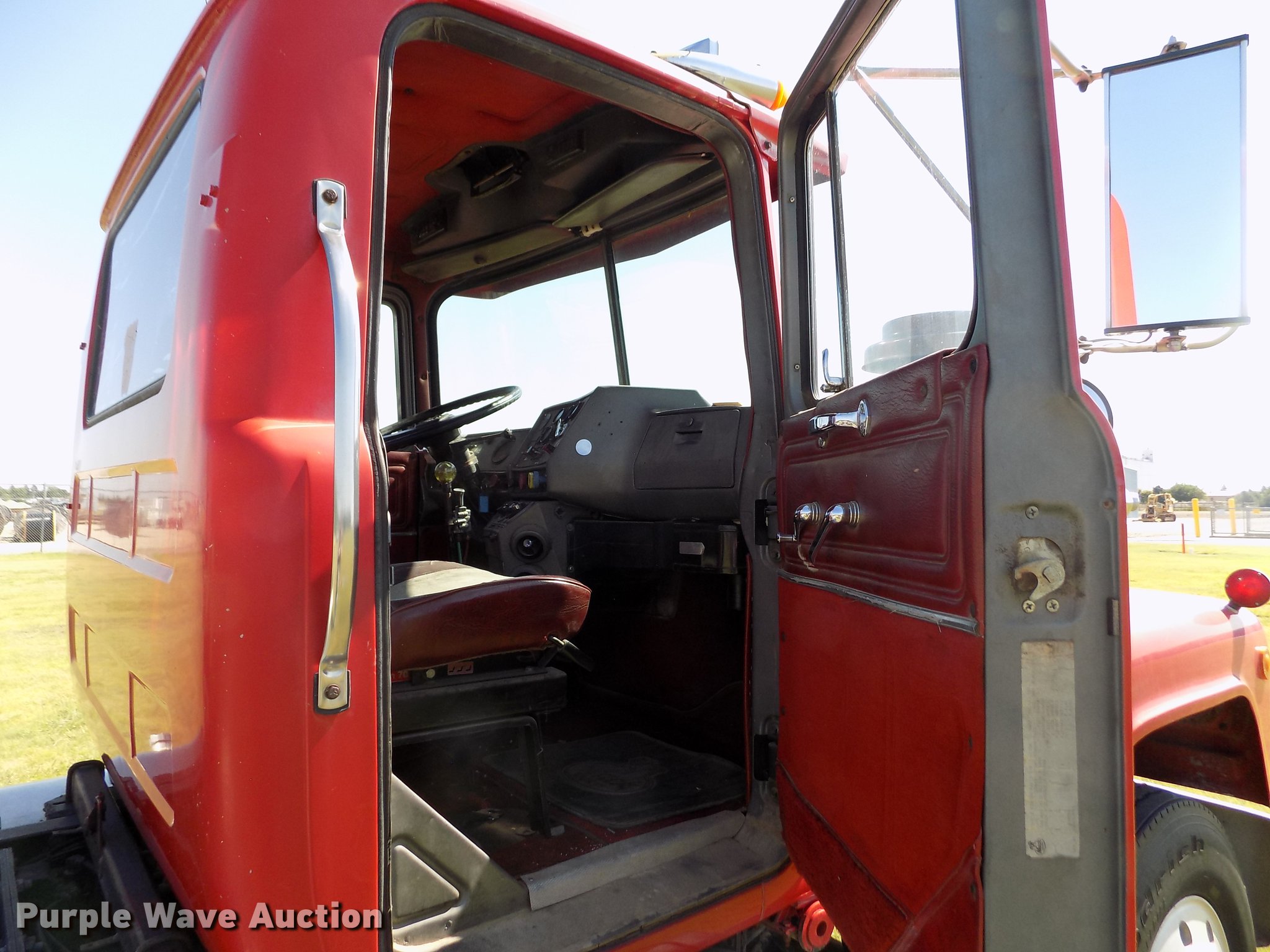 Purple Wave is selling a used Truck Tractor in Kansas. This item is a 1986 Mack Econodyne R688ST semi truck with the following: 851,428 miles on odometer, 3,607 hours on meter, Mack GK1451 6.7L L6 turbo diesel engine, Eaton Fuller Road Ranger nine speed manual transmission, Tandem axle, AC and heat, Tilt, AM/FM/cassette, Air suspension seat, Air ride cab, Block heater, Front tow hooks, Exterior visor, Single exhaust stack, Air operated sliding fifth wheel plate, Dual fuel tanks, Stainless steel quarter fenders, Mud flaps, Spring suspension, Air brakes, Engine brake, 11R24.5 tires, Unit# 78