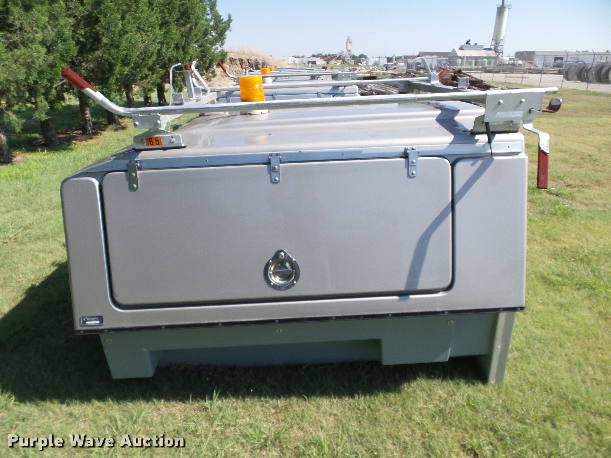 Purple Wave is selling a used Automotive Parts or Acces. in Kansas. This item is a FX fiberglass topper with the following: Weatherguard utility rack, Beacon light, Center tray, Side compartments, Interior lighting, Serial 0612585, Unit# 95