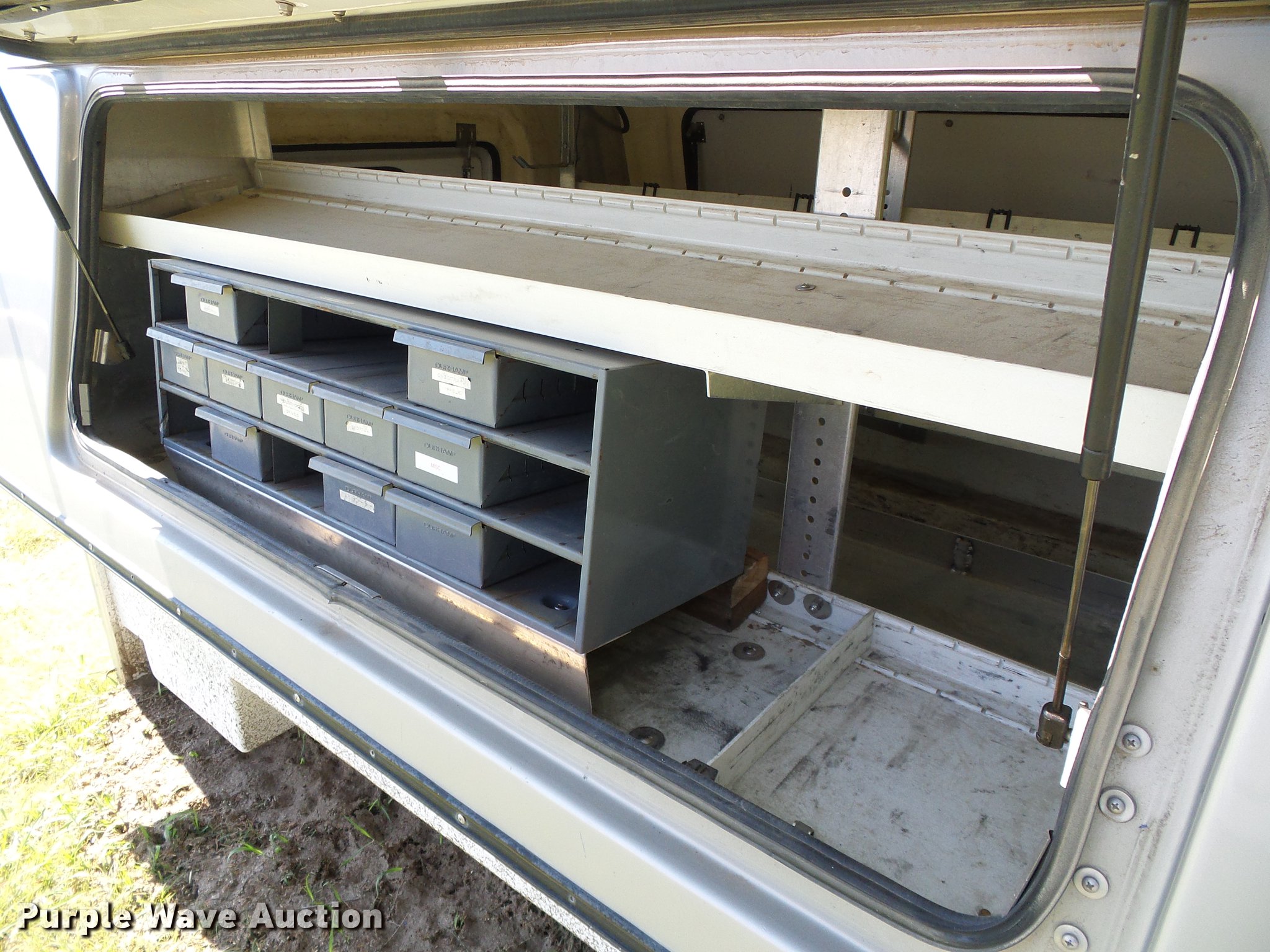 Purple Wave is selling a used Automotive Parts or Acces. in Kansas. This item is a FX fiberglass topper with the following: Crown utility rack, Beacon light, Sliding center tray, Side compartments, Interior lighting, Serial 0717132