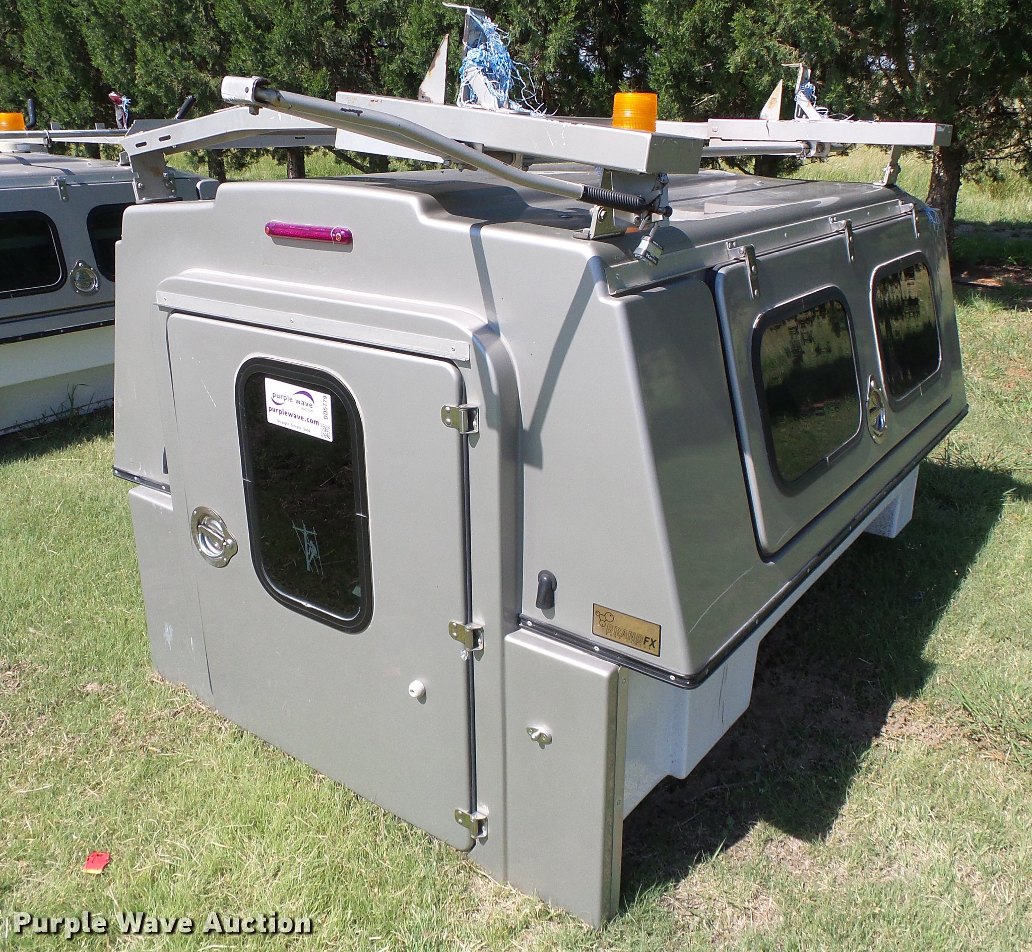 Purple Wave is selling a used Automotive Parts or Acces. in Kansas. This item is a FX fiberglass topper with the following: Crown utility rack, Beacon light, Center sliding tray, Side compartments, Interior lighting, Serial 0717135