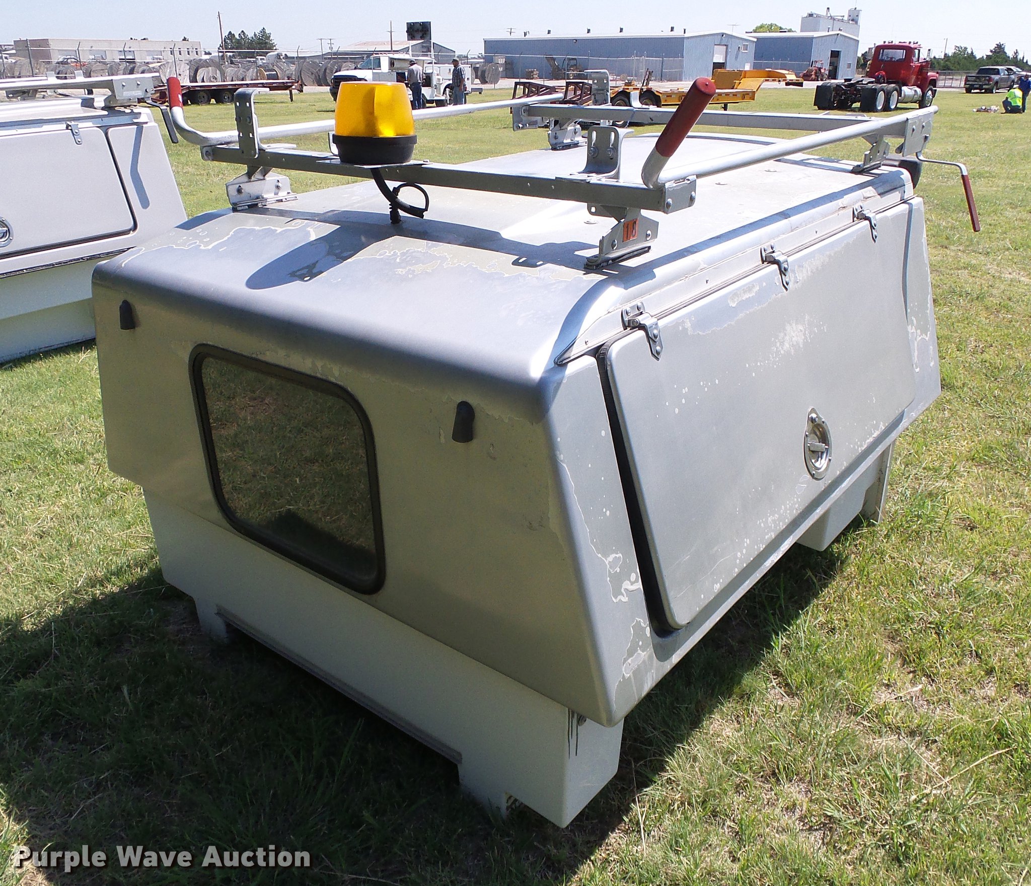 Purple Wave is selling a used Automotive Parts or Acces. in Kansas. This item is a Fibre Body fiberglass topper with the following: Weatherguard utility rack, Center sliding tray, Side compartments, Rear work lights, Interior lighting, Clear coat peeling, Serial 329D2, Unit# 18