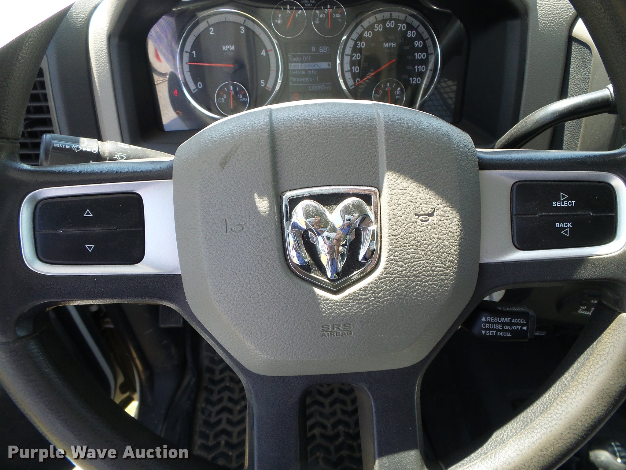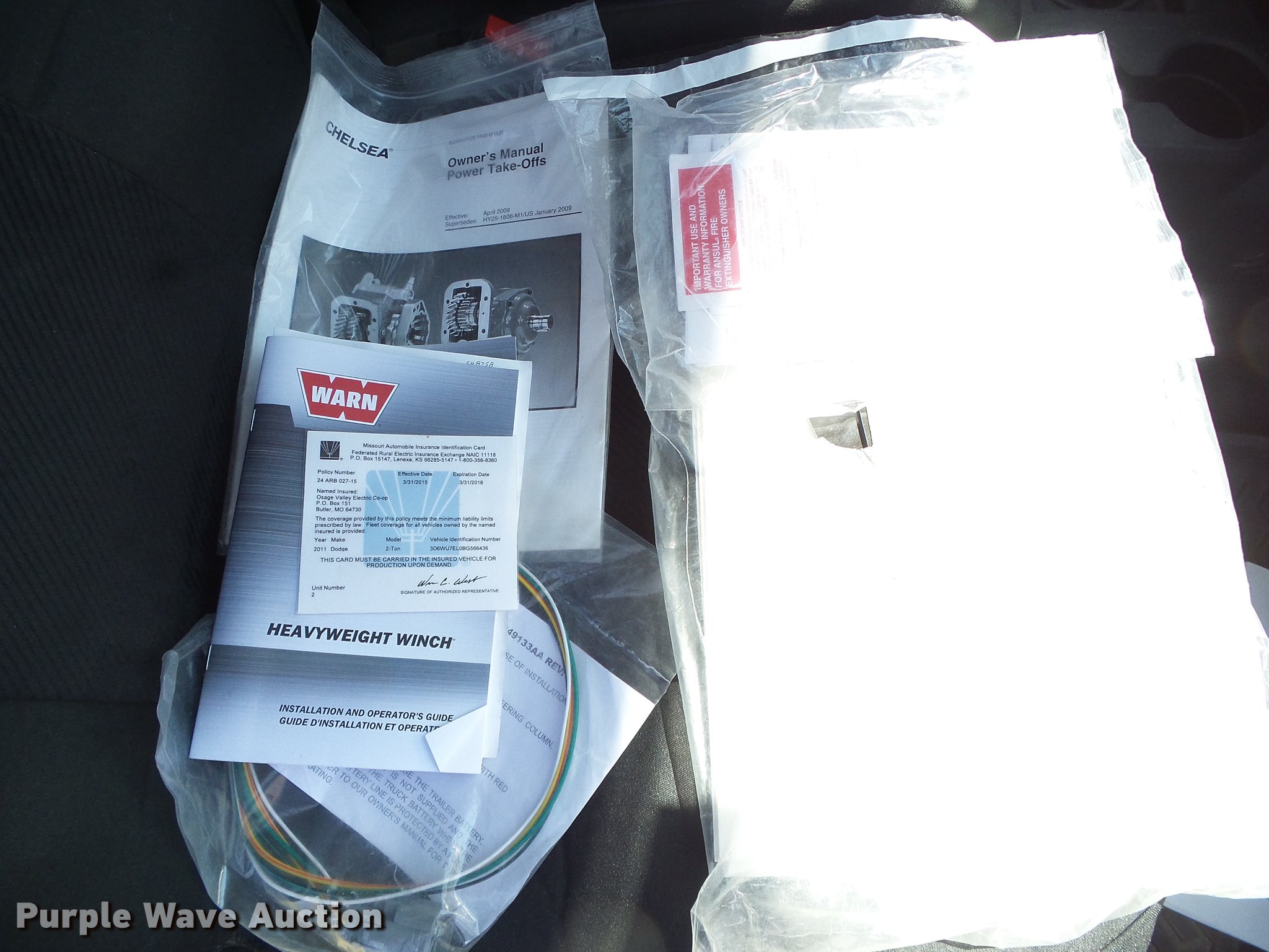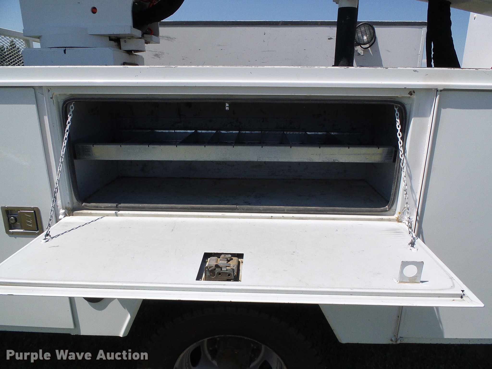 Purple Wave is selling a used Bucket Truck in Kansas. This item is a 2011 Dodge Ram 5500 bucket truck with the following: 130,081 miles on odometer, 6.7L L6 OHV 24V turbo diesel engine, Automatic transmission, Four wheel drive, Single axle, AC and heat, AM/FM, Suspension seat, PTO, Backup alarm, Front tow hooks, Work lights, ETI 5B1320096B36R utility bed, 14'L, Shelving, Bucket liner, Serial 13587, Warn M15000 front mounted winch, 2011 ETI 5TCMH371H boom, 37' boom length, 400 lbs maximum lift capacity, 40' maximum lift height, Man basket, Platform and ground controls, Boom rotation, Articulating, insulated, telescopic boom, Rope material handler, (4) out riggers, Serial 0311CM78121, Single fuel tank, Single exhaust stack, Spring suspension, Hydraulic brakes, 245/70R19.5 tires, GVWR 19,500 lbs, Lower boom section did not pass dielection test, Injection pump engine light on, Possible sensor issue, Rear leaf springs stretched, Unit# 155