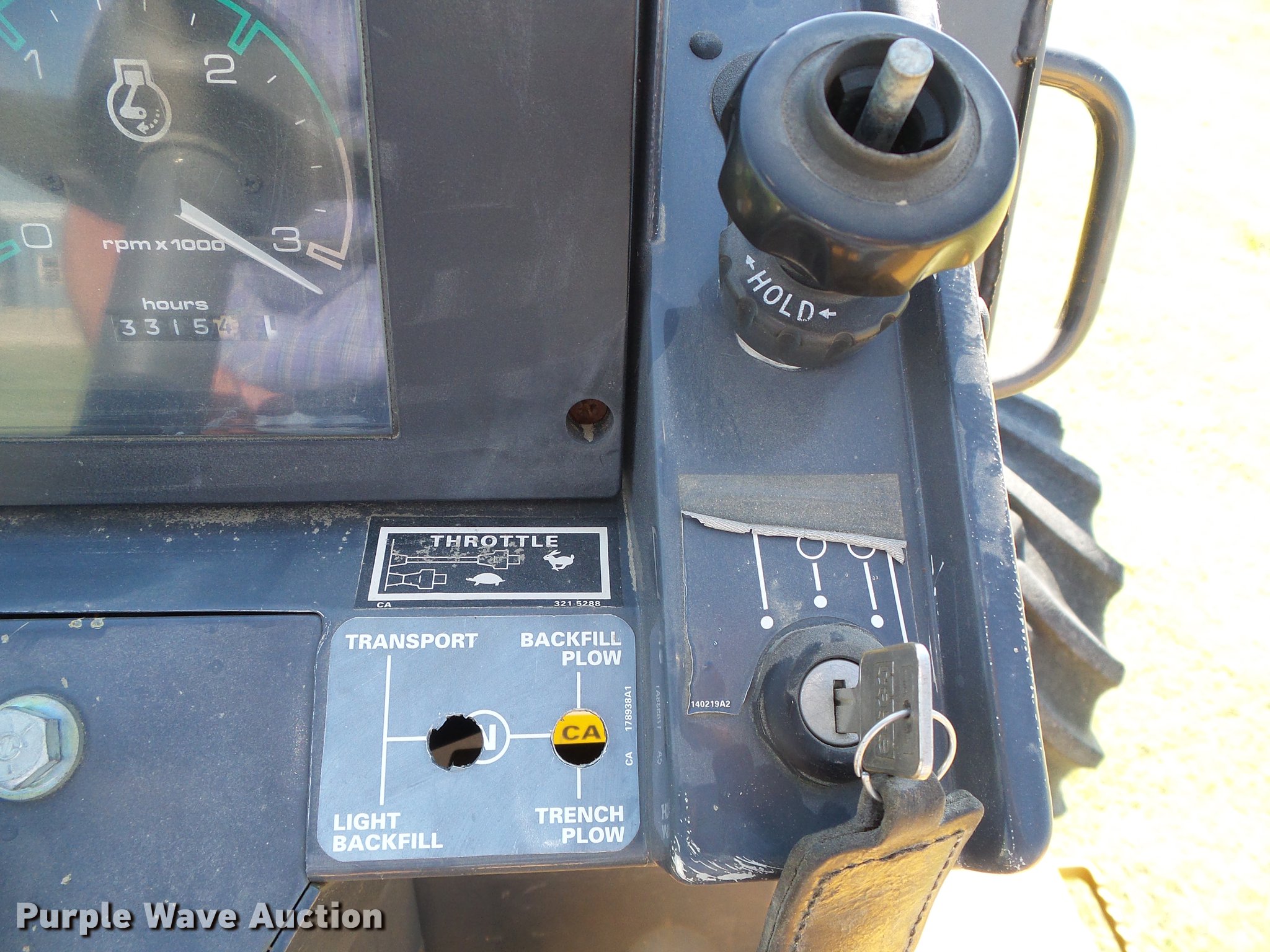 1995 Case 860 trencher. 3,315 hours on meter, Case 4T390 four cylinder turbo diesel engine Serial 45155948, Four speed manual transmission, Four wheel drive High-Low speed switch, OROPS Suspension seat, Vibratory plow model 108917A1 Serial JAF0165130, Trencher model 197059A1 48" boom length, 5" cutting width, 19" end idler dieameter, Crumber bride 6" crumber shoe, Manual crumber arch, Serial JAF0178163, Backhoe model 108826A1 12"W three tooth bucket, Outriggers, Serial JAF0165959, 81"W six-way backfill blade, 38X18-20 tires, Rear differential ring gear broken, Chain loose, Serial JAF0165041, Unit# 76. Pioneer Communications. 465 S Rd I. Ulysses, KS 67880