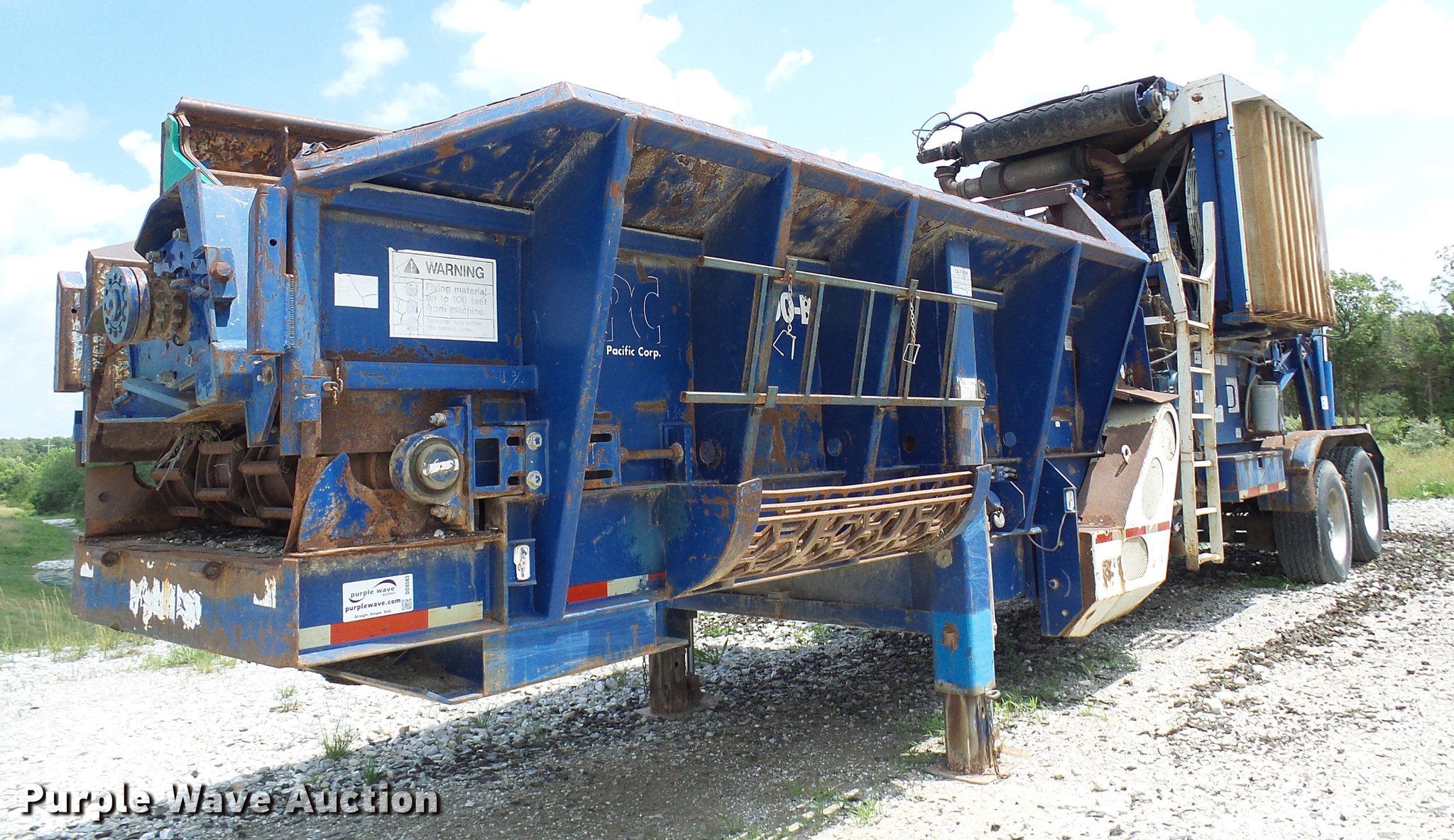 Purple Wave is selling a used Wood Grinder in Missouri. This item is a 2002 Peterson Pacific HC-2400-B horizontal grinder with the following: 6,322 hours on meter, Caterpillar C15 six cylinder turbo diesel engine, Air brakes, 385/65R22.5 tires, Block and bearing broken off at front of grinder, Serial 17B-199-922
