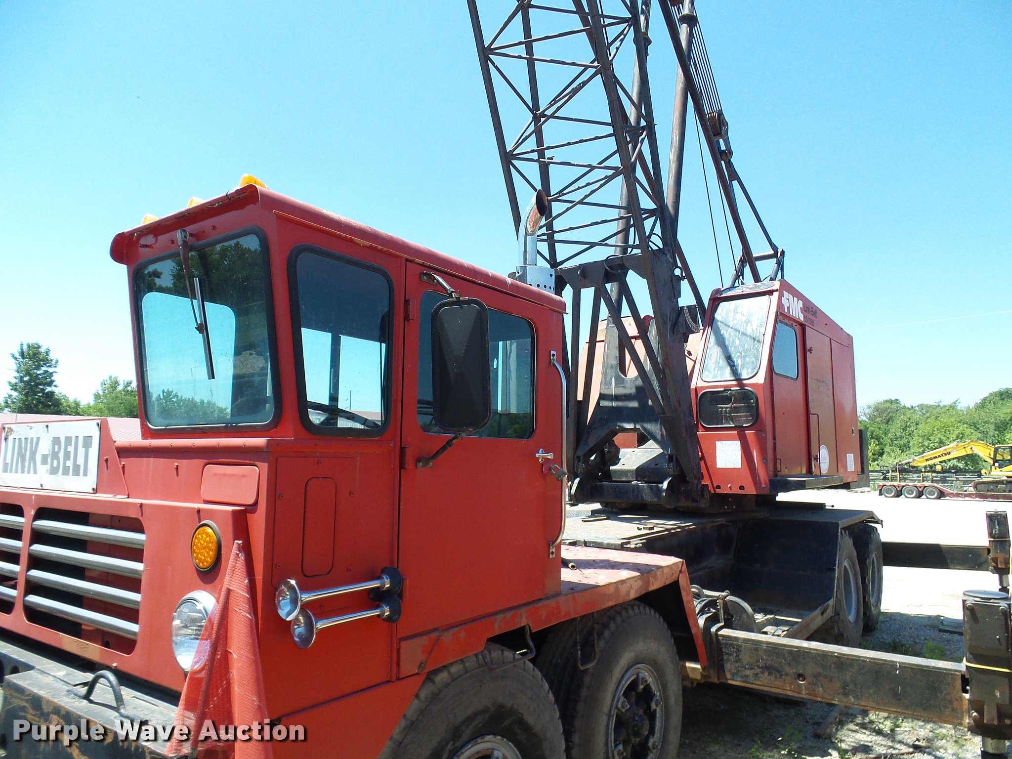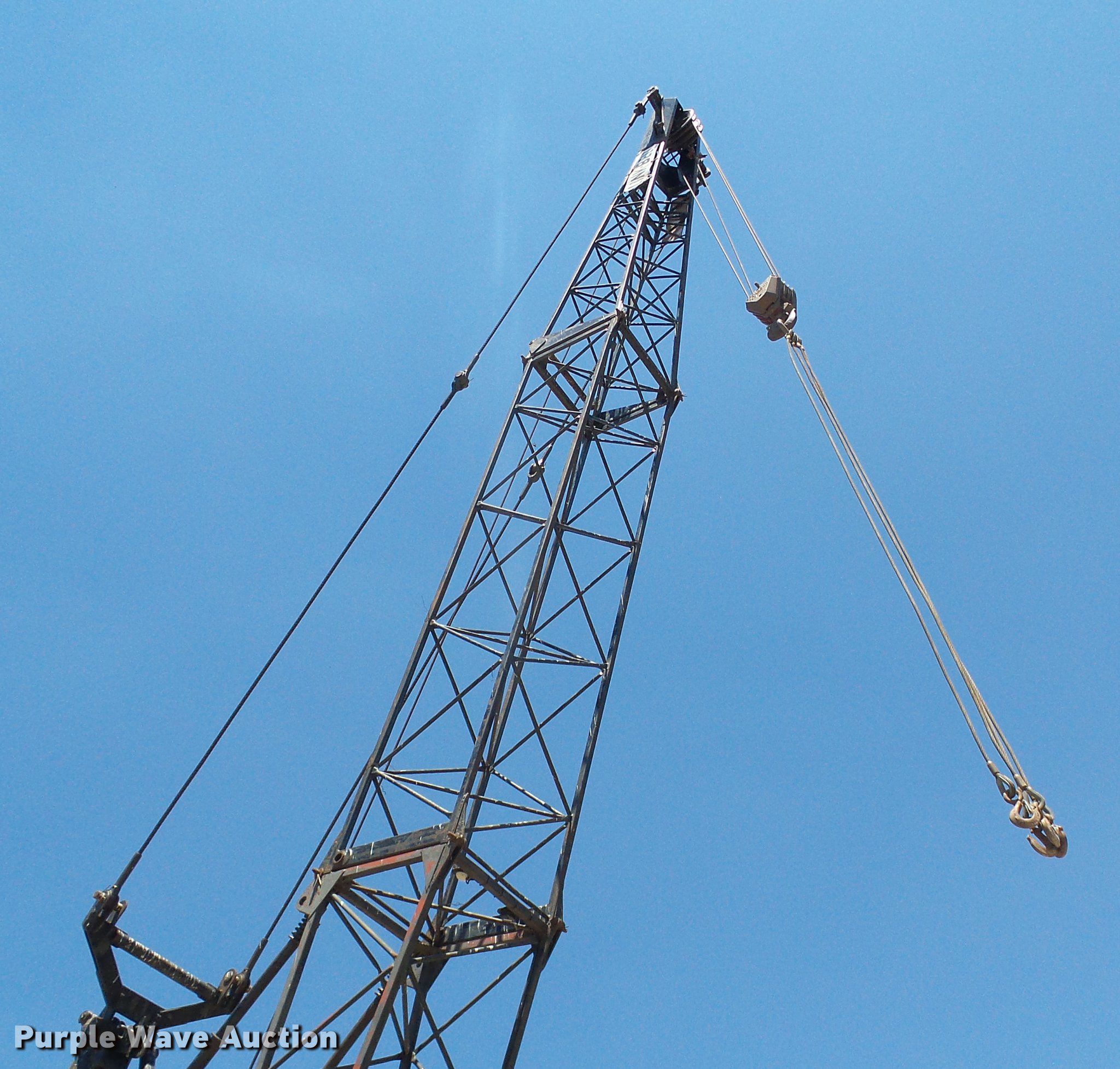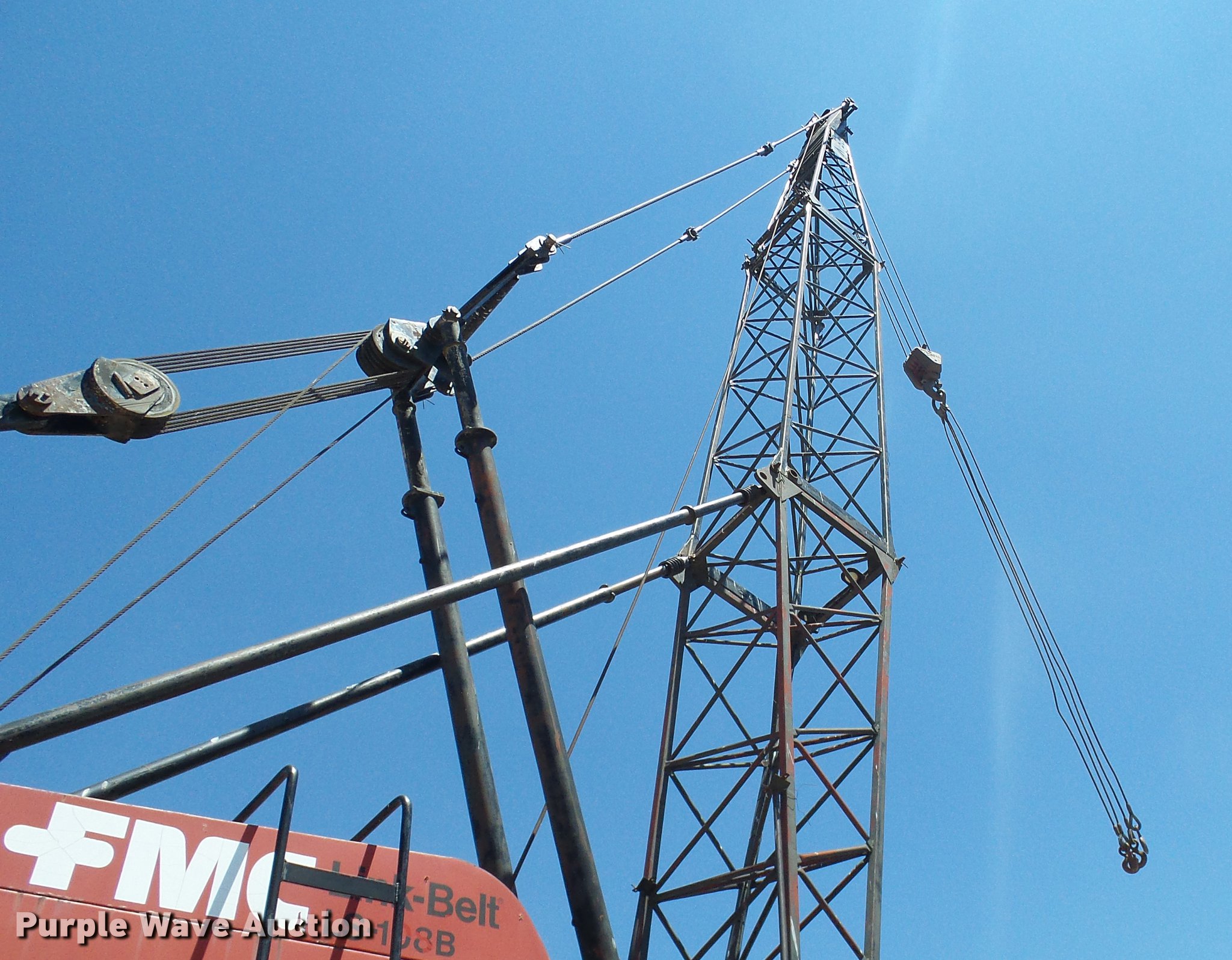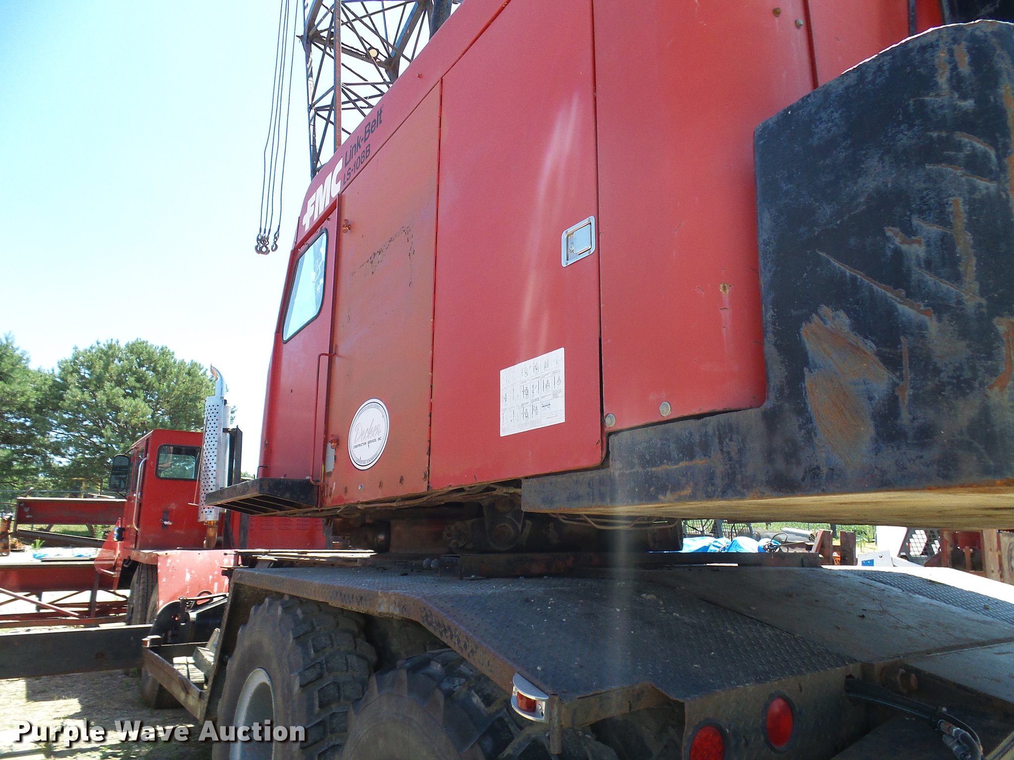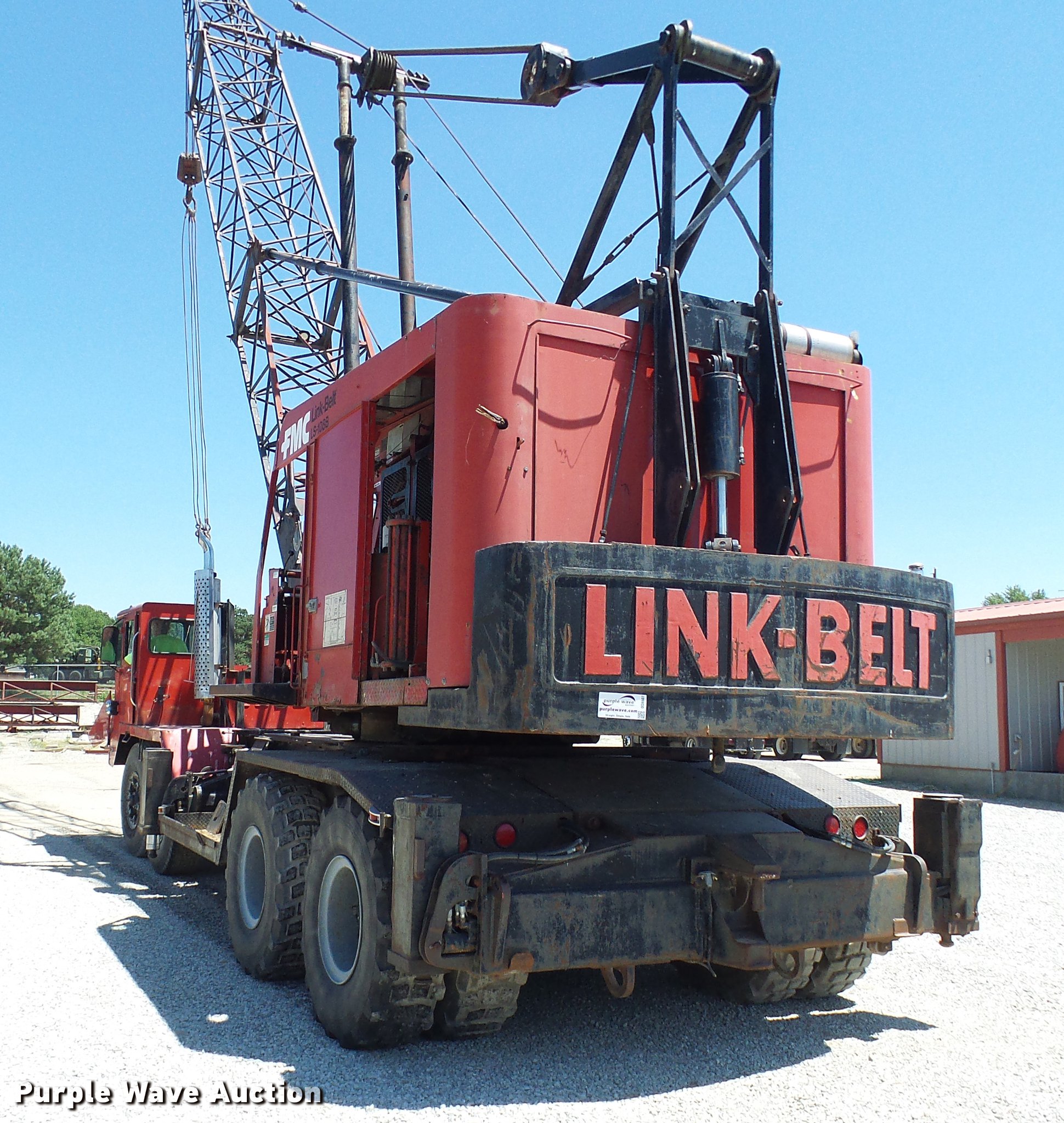 Purple Wave is selling a used Rough or All Terrain Crane in Missouri. This item is a 1966 Link Belt LS-108B lattice boom crane with the following: 5,185 miles on odometer, Detroit Diesel six cylinder turbo diesel upper engine, 1,014 hours on meter, Detroit Diesel six cylinder turbo diesel lower engine, 705 hours on meter, Four speed manual transmission, Tandem axle, (8) drive wheels, (2) steering wheels, Spring suspension seat, Work lights, Stick crane controls, 150' boom length, (8) sections, (4) 20'L sections, 10' section,, 90,000 lbs maximum lift capacity, In-cab boom controls, Crane block, Crane ball and hook, (4) Stabilizers, Spring suspension, Air brakes, 14R20 tires, Serial 9LGH3139