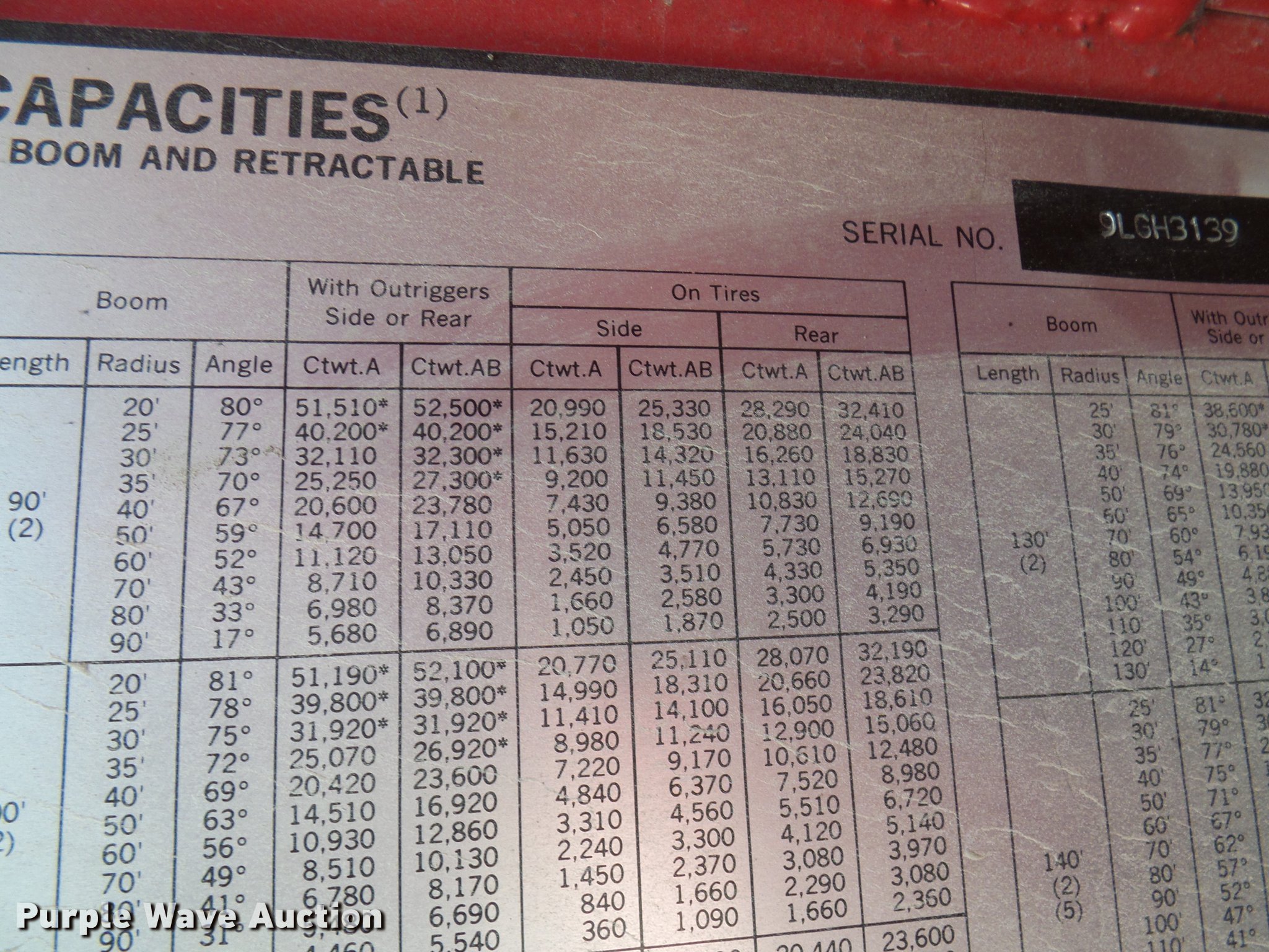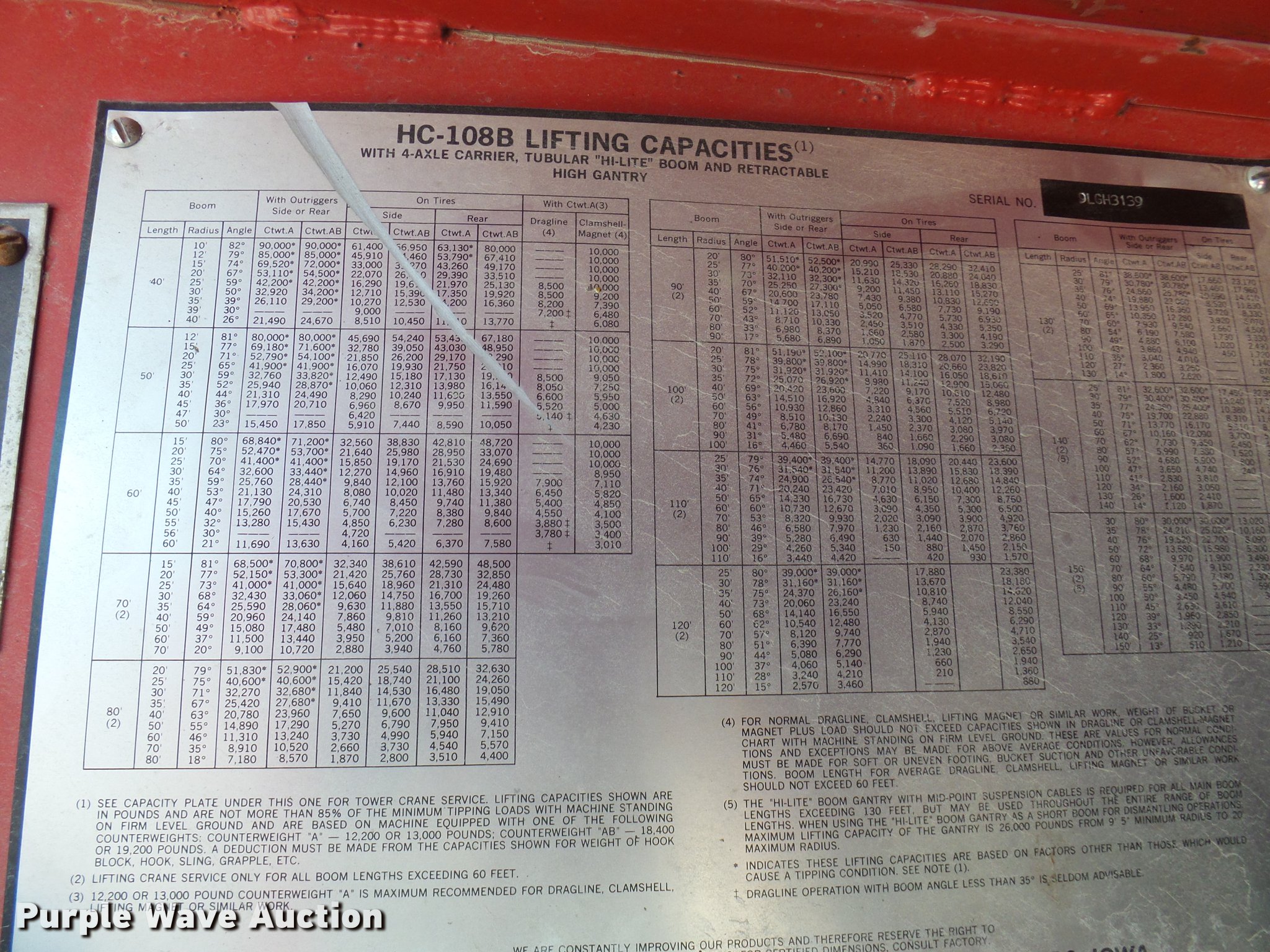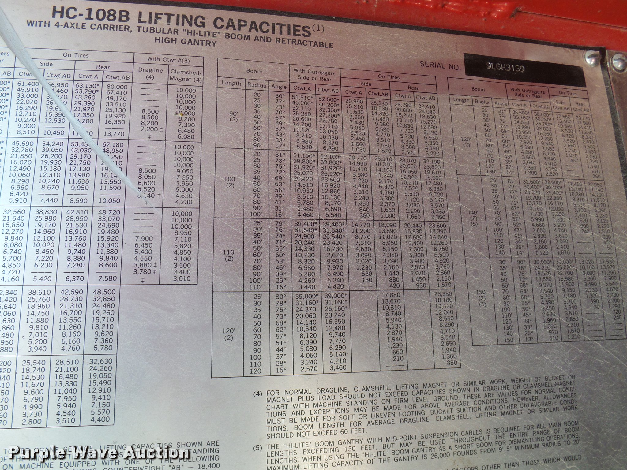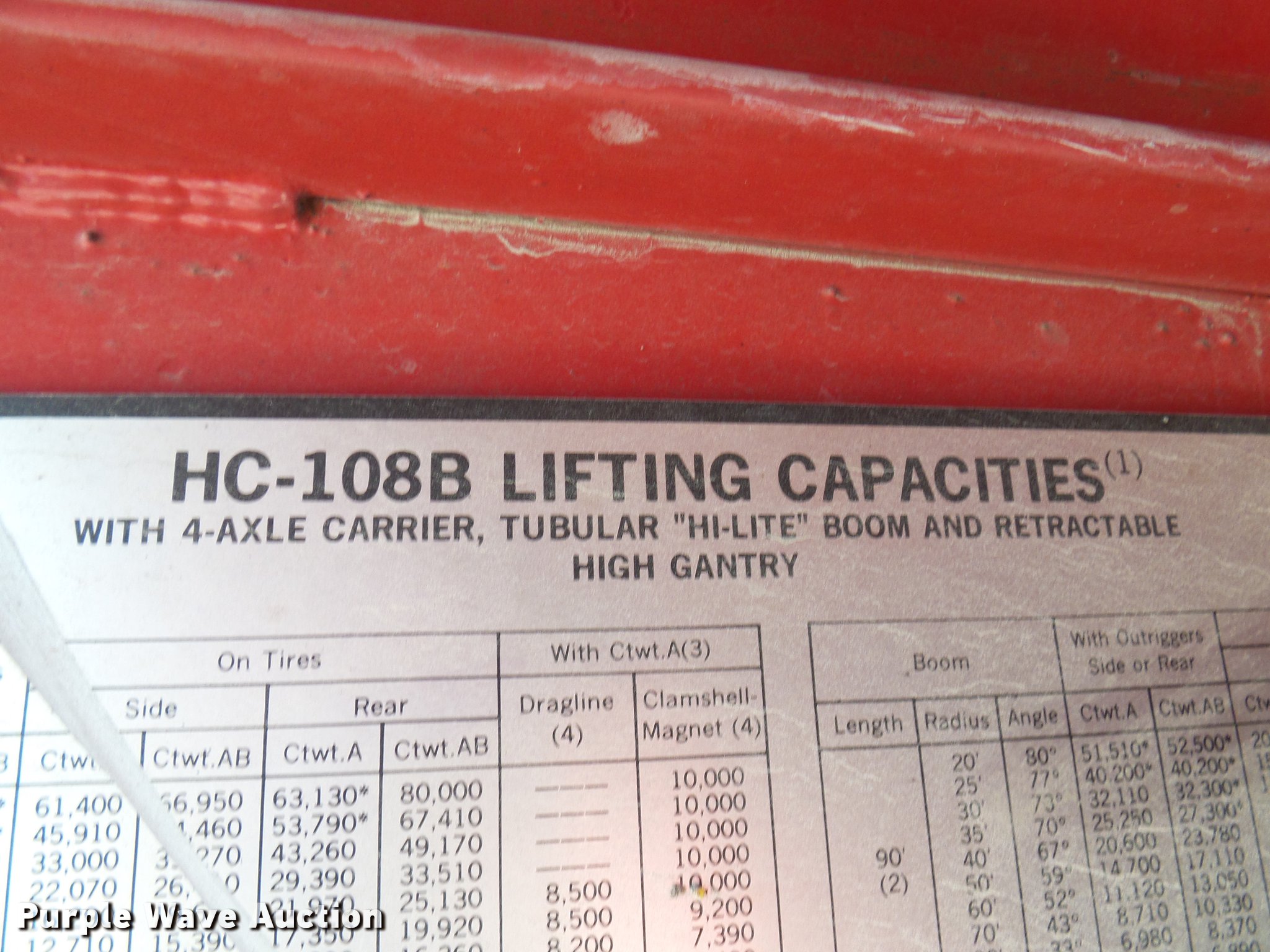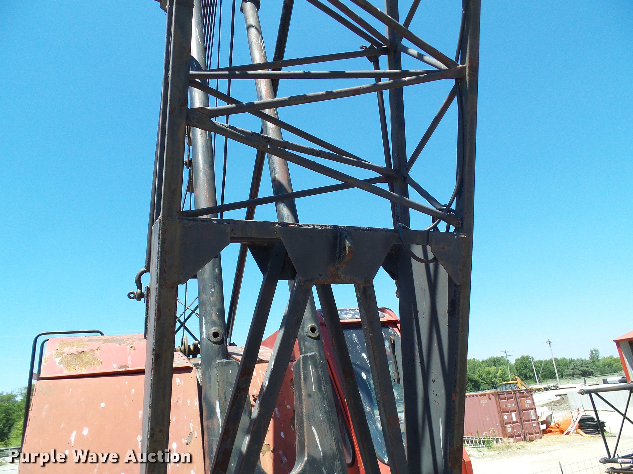 Purple Wave is selling a used Rough or All Terrain Crane in Missouri. This item is a 1966 Link Belt LS-108B lattice boom crane with the following: 5,185 miles on odometer, Detroit Diesel six cylinder turbo diesel upper engine, 1,014 hours on meter, Detroit Diesel six cylinder turbo diesel lower engine, 705 hours on meter, Four speed manual transmission, Tandem axle, (8) drive wheels, (2) steering wheels, Spring suspension seat, Work lights, Stick crane controls, 150' boom length, (8) sections, (4) 20'L sections, 10' section,, 90,000 lbs maximum lift capacity, In-cab boom controls, Crane block, Crane ball and hook, (4) Stabilizers, Spring suspension, Air brakes, 14R20 tires, Serial 9LGH3139