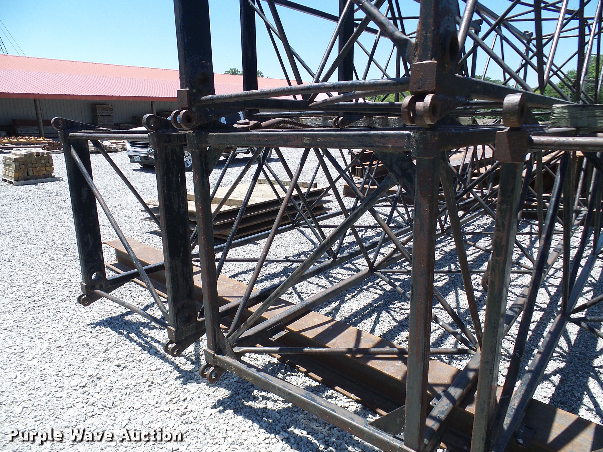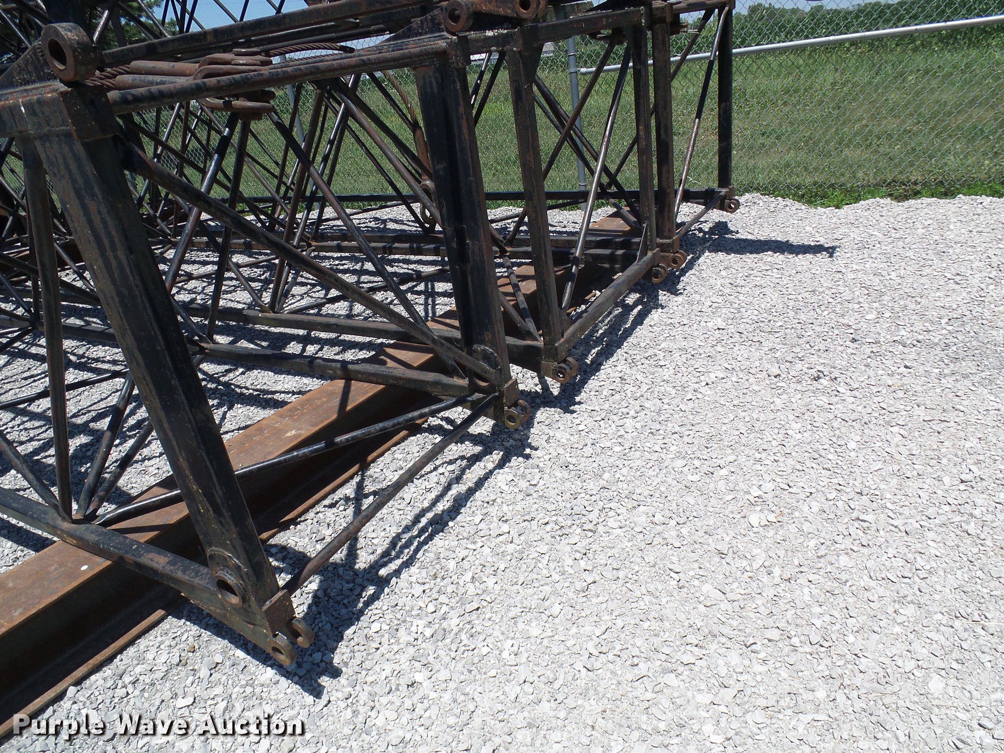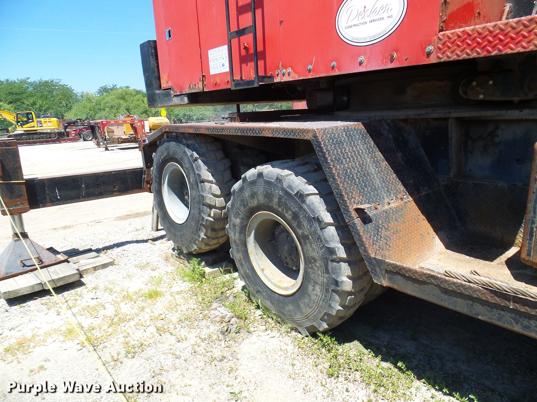 1966 Link Belt LS-108B lattice boom crane. 5,185 miles on odometer, Detroit Diesel six cylinder turbo diesel upper engine 1,014 hours on meter, Detroit Diesel six cylinder turbo diesel lower engine 705 hours on meter, Four speed manual transmission, Tandem axle, (8) drive wheels, (2) steering wheels, Spring suspension seat, Work lights, Stick crane controls, 150' boom length (8) sections (4) 20'L sections, 10' section, 90,000 lbs maximum lift capacity, In-cab boom controls, Crane block, Crane ball and hook, (4) Stabilizers, Spring suspension, Air brakes, 14R20 tires, Serial 9LGH3139. Decker Construction. 710 North St. Lathrop, MO 64465