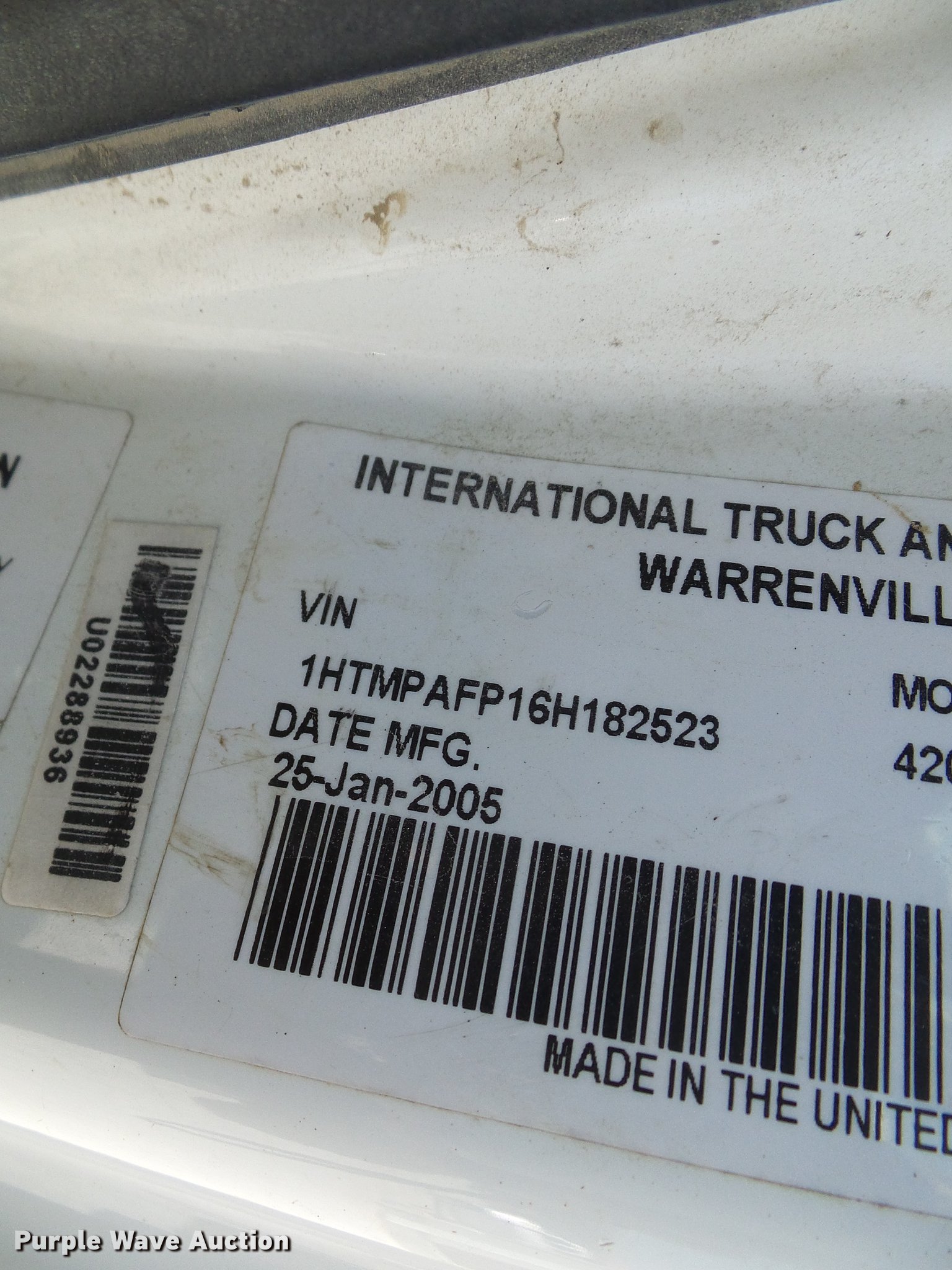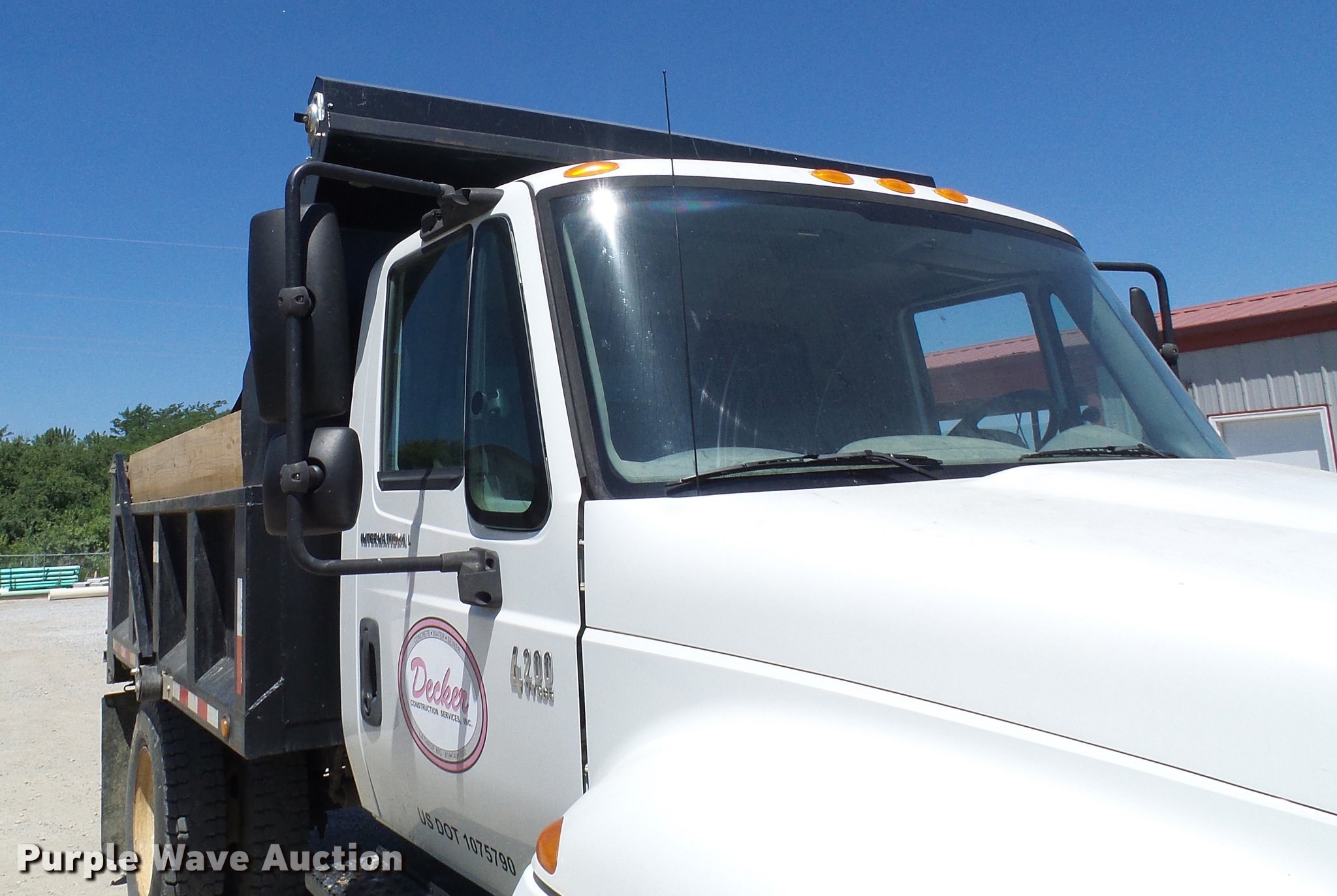 Purple Wave is selling a used Construction Dump Truck in Missouri. This item is a 2006 International 4200 dump truck with the following: 68,228 miles on odometer, 5,530 hours on meter, International VT365 6.0L V8 turbo diesel engine, Eaton Fuller six speed manual transmission, Single axle, AC and heat, Cruise, AM/FM/cassette, Suspension seat, PTO, Ledwell steel dump bed, 10'L x 8'W, 24" side height, 10" side board height, Single ram hoist, Manual operated end gate, Roll tarp, Single fuel tank, Pintle hitch, Receiver hitch, Spring suspension, Hydraulic brakes, 11R22.5 tires, GVWR 31,000 lbs
