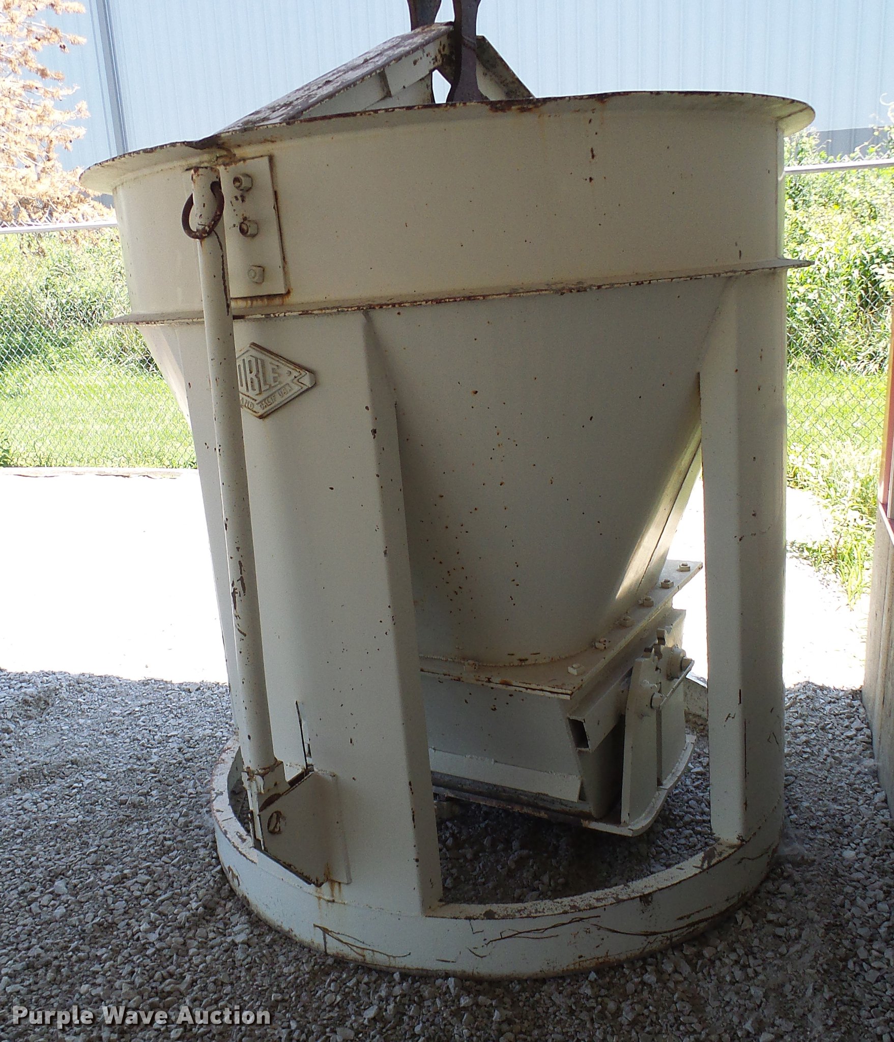 Purple Wave is selling a used Concrete Dispenser in Missouri. This item is a Noble concrete bucket with the following: 1.5 cu.yd. capacity, Chute
