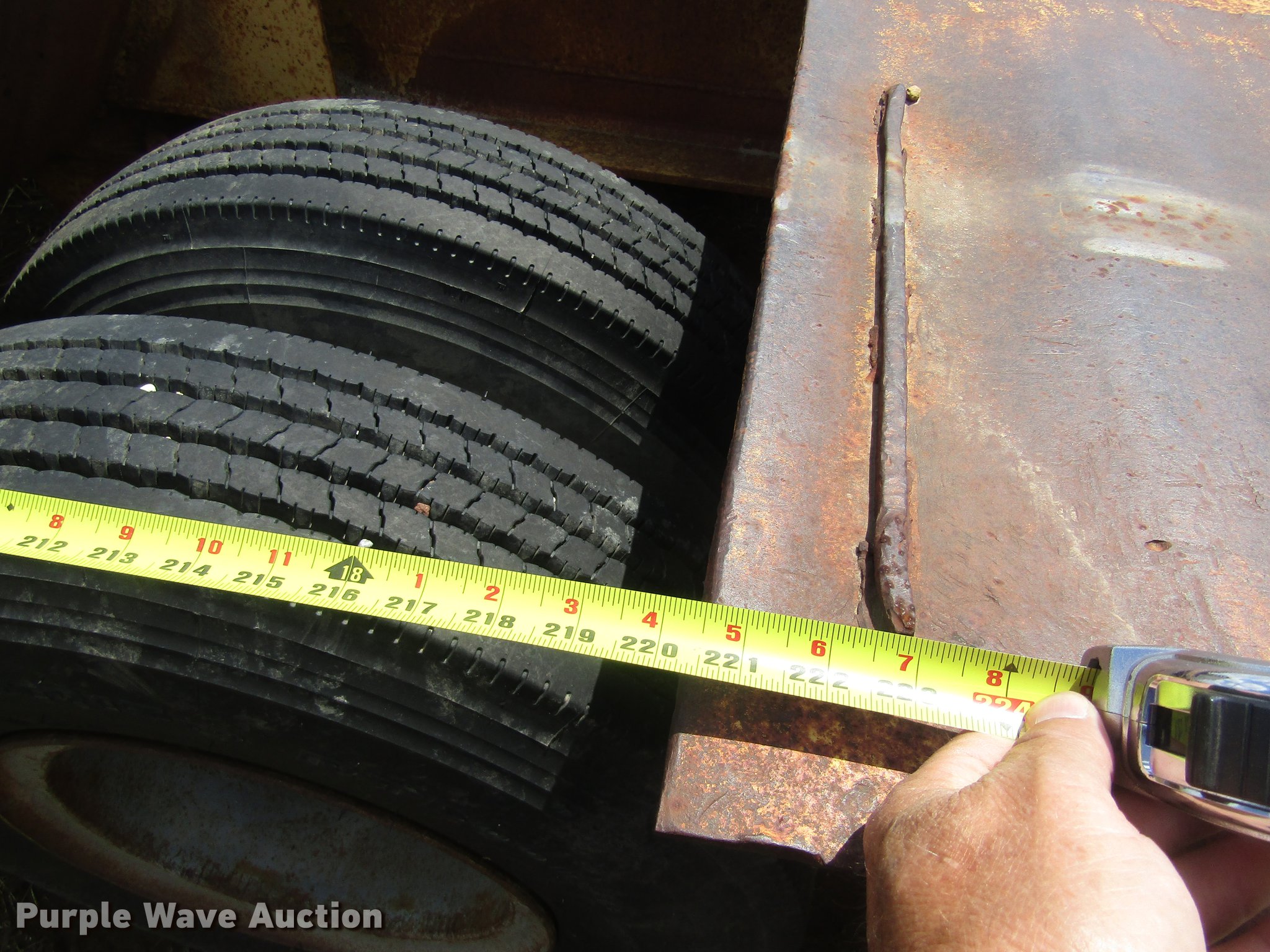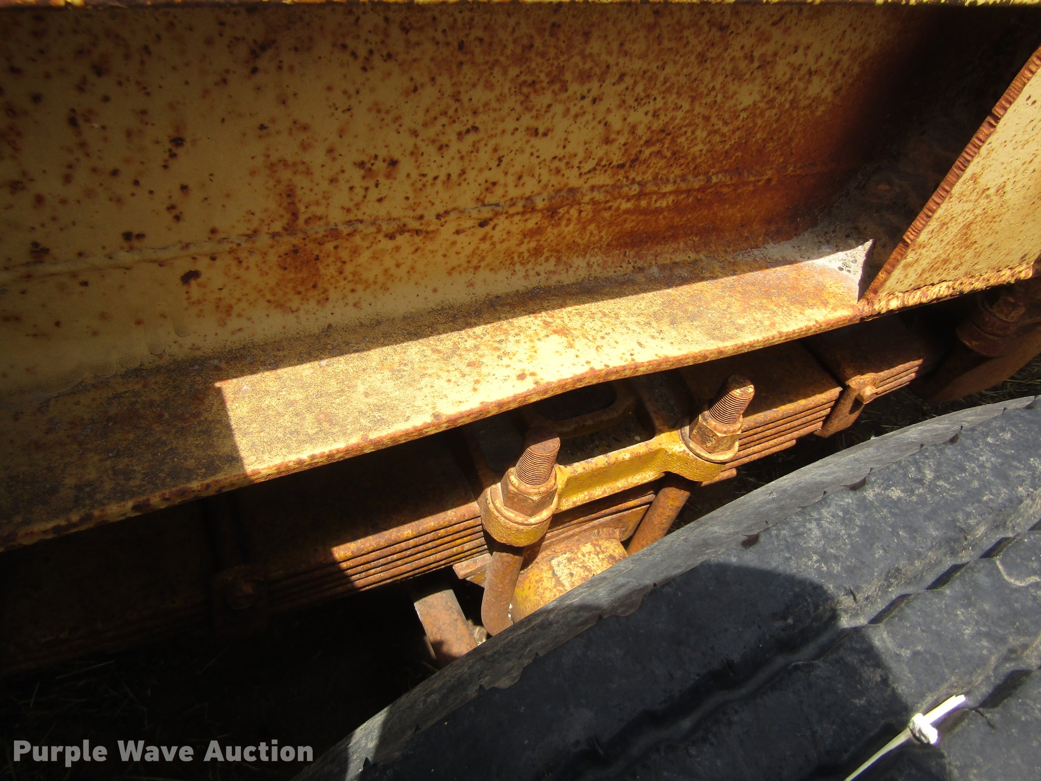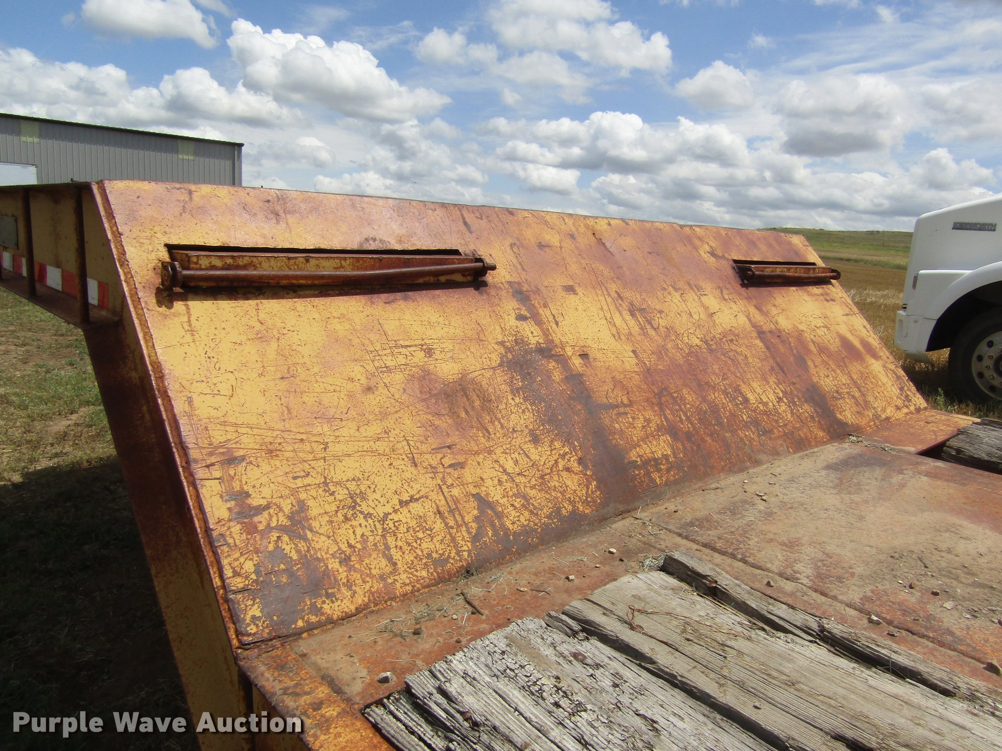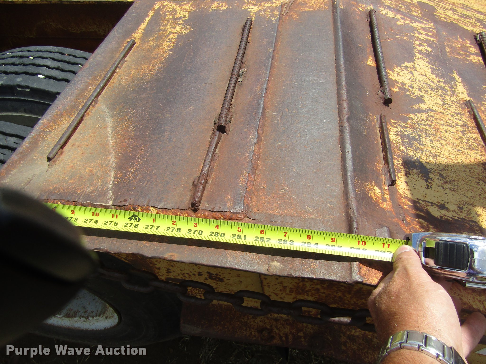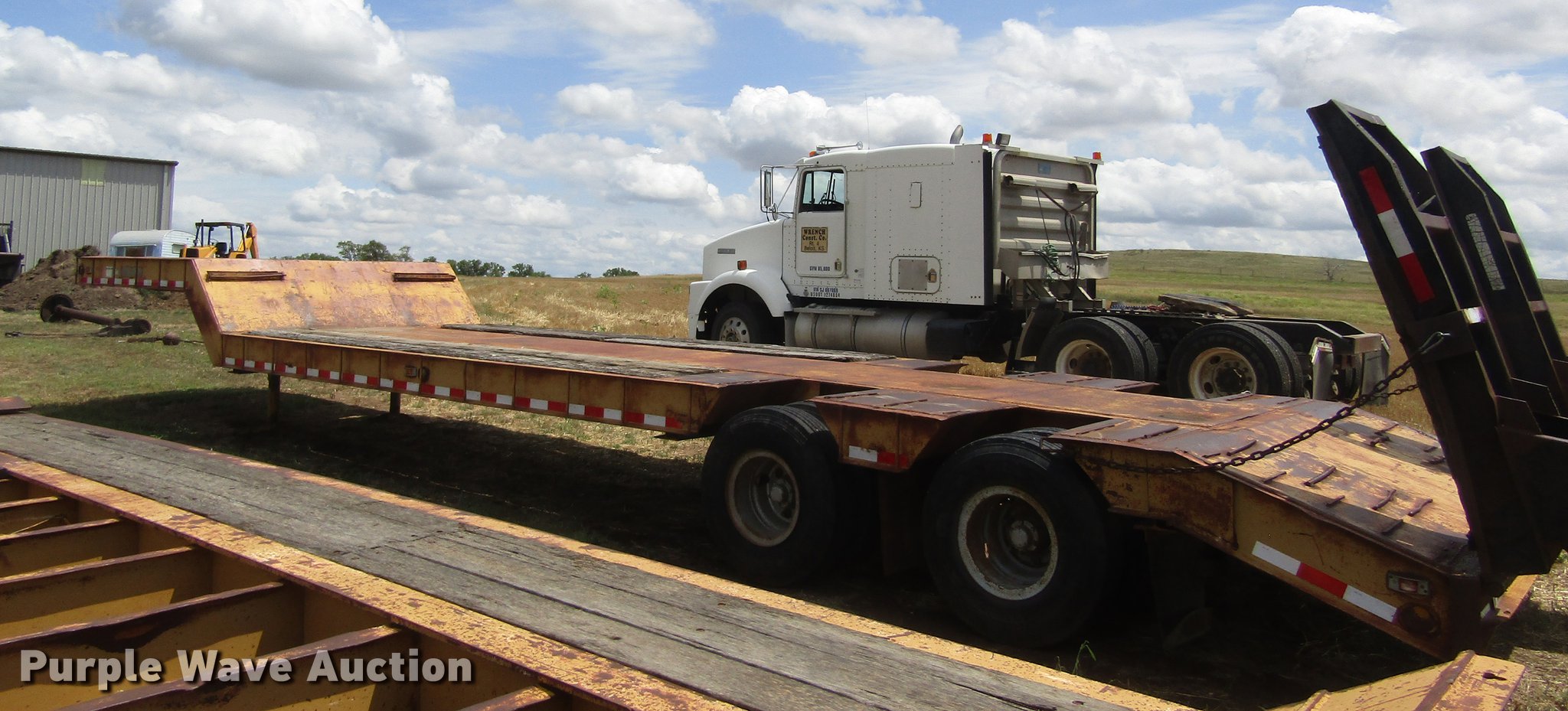 Purple Wave is selling a used Equip. Trailer in Kansas. This item is a 1973 Carrier King 4000 drop deck equipment trailer with the following: 37' overall length, 23'10"L x 95.5"W steel and wood main deck, 96"L upper deck, Dovetail, 5'L ramps, 21" x 24" upper ramps, 200" from front of trailer to tire opening, 220" from front of trailer to rear tire opening, 25 ton capacity, Fifth wheel plate, Dual leg landing gear, Spring suspension, Air brakes, Tandem axle, Steel wheels, 8.25R15TR tires