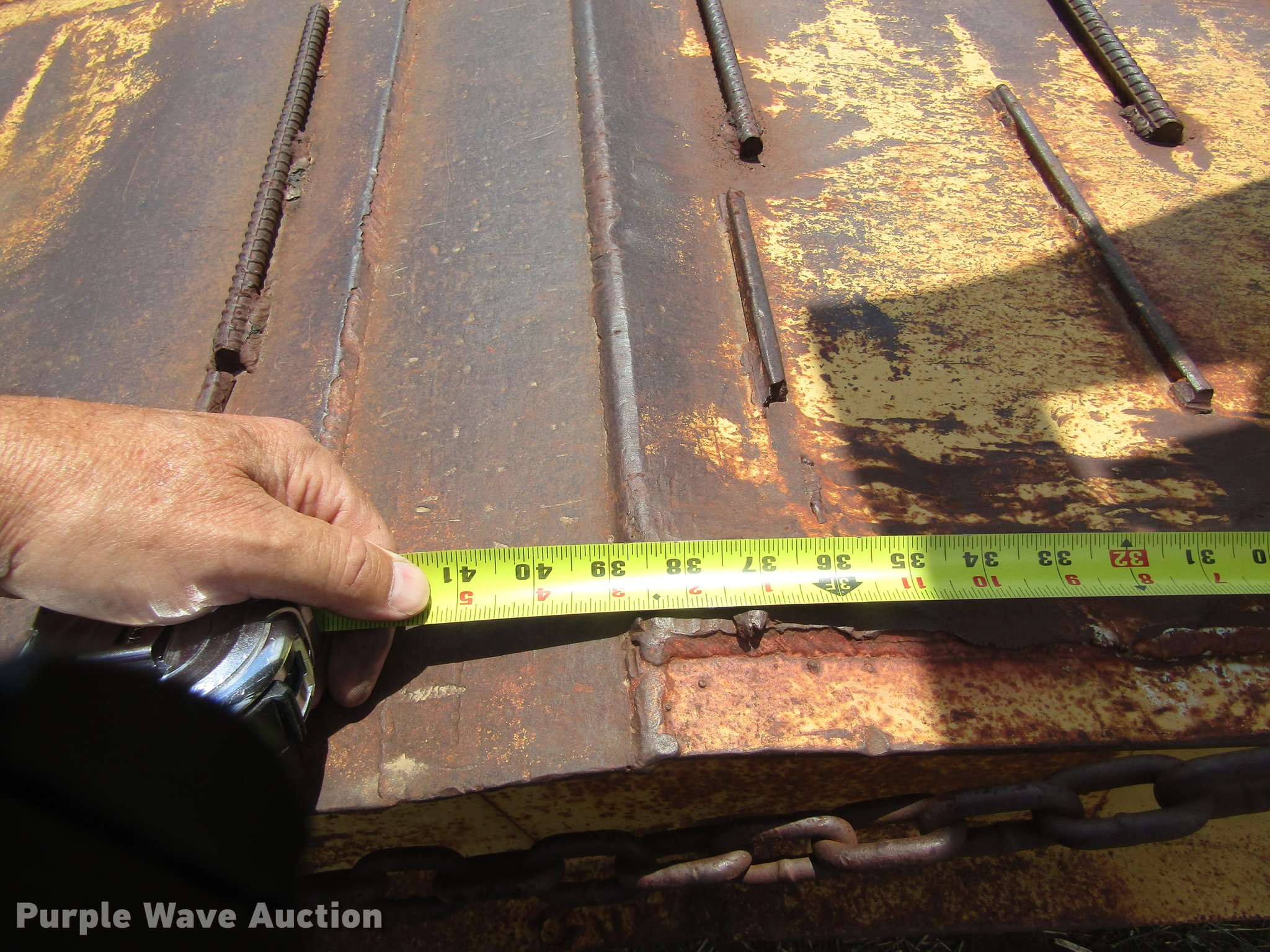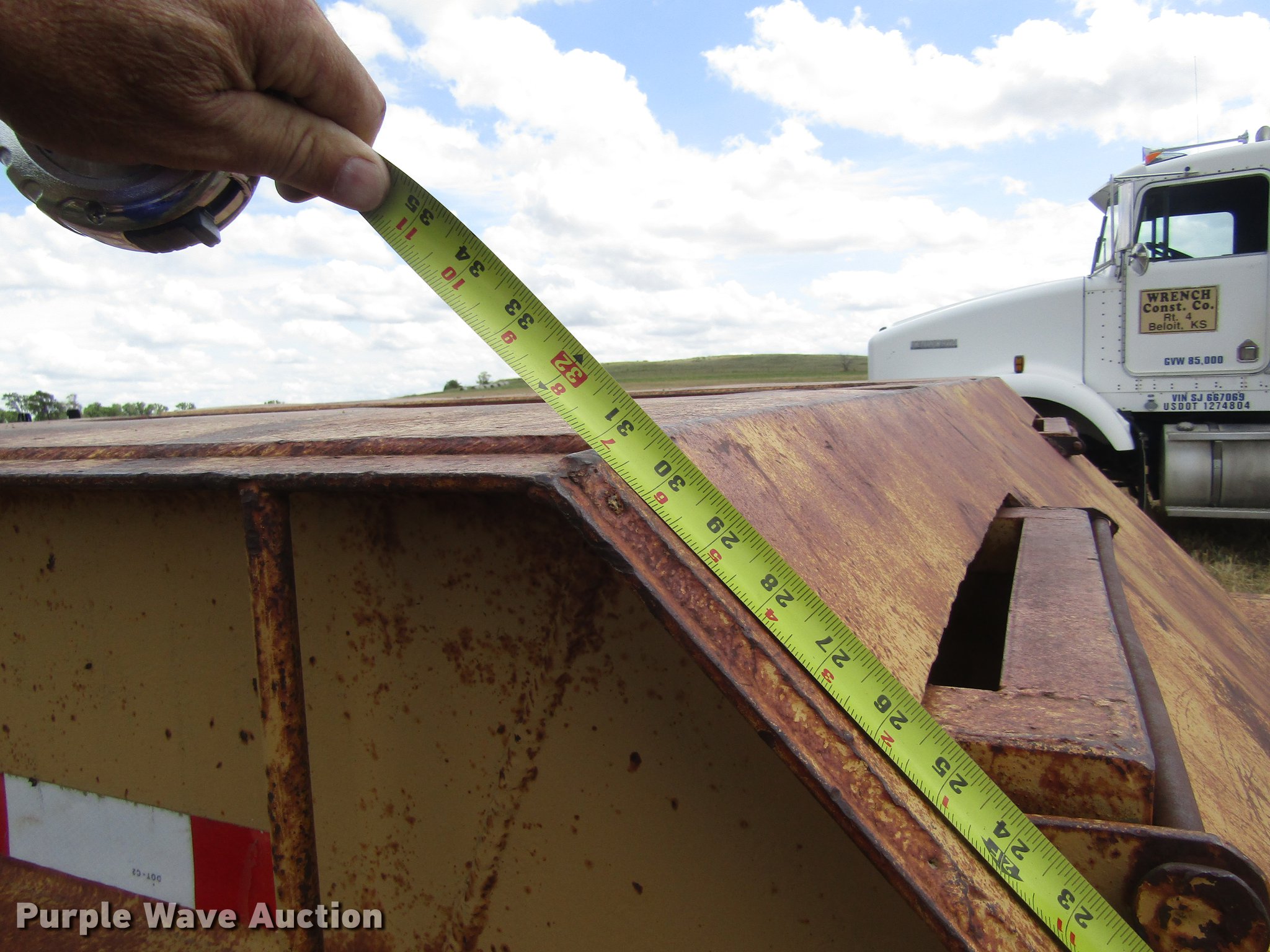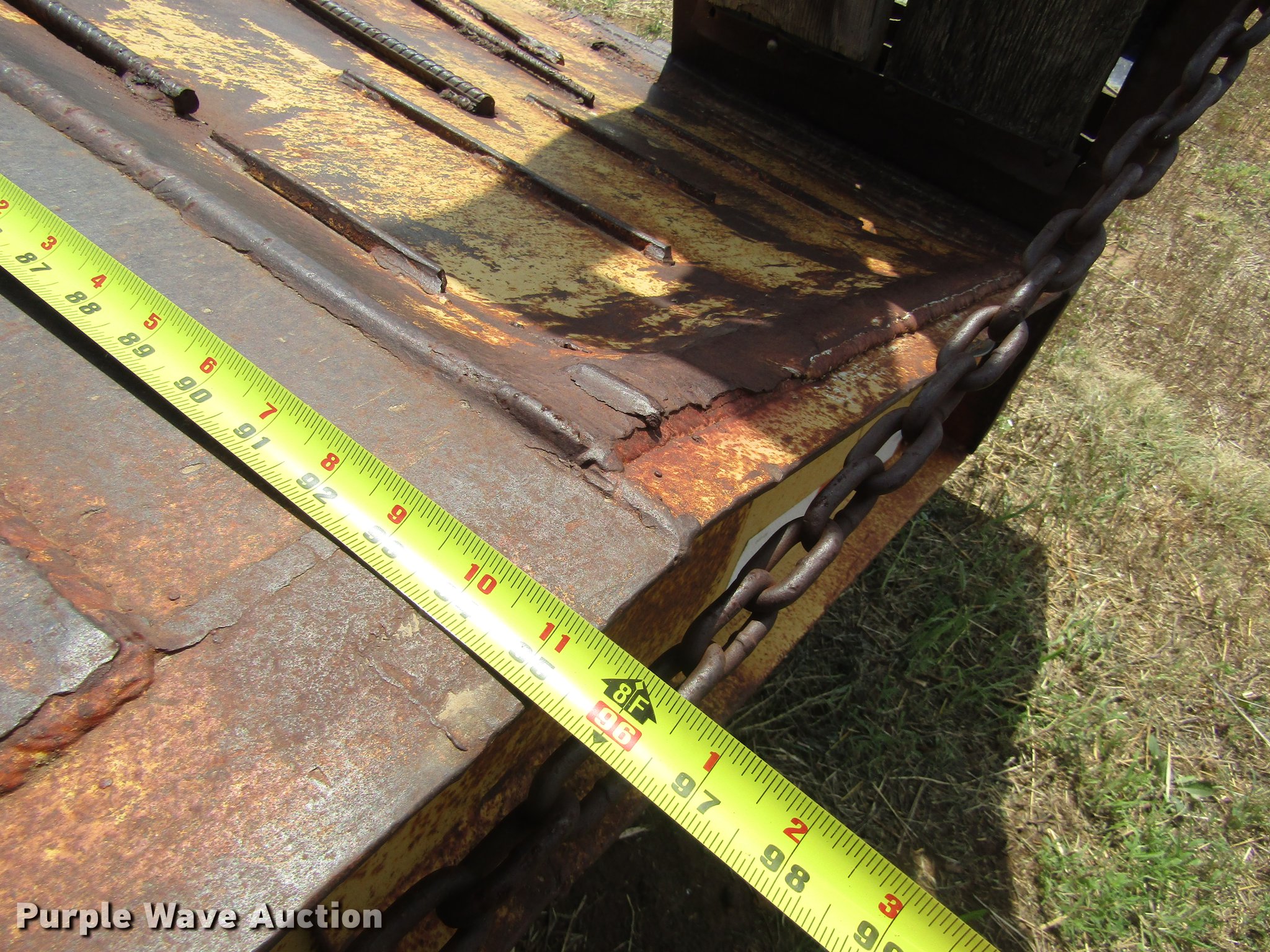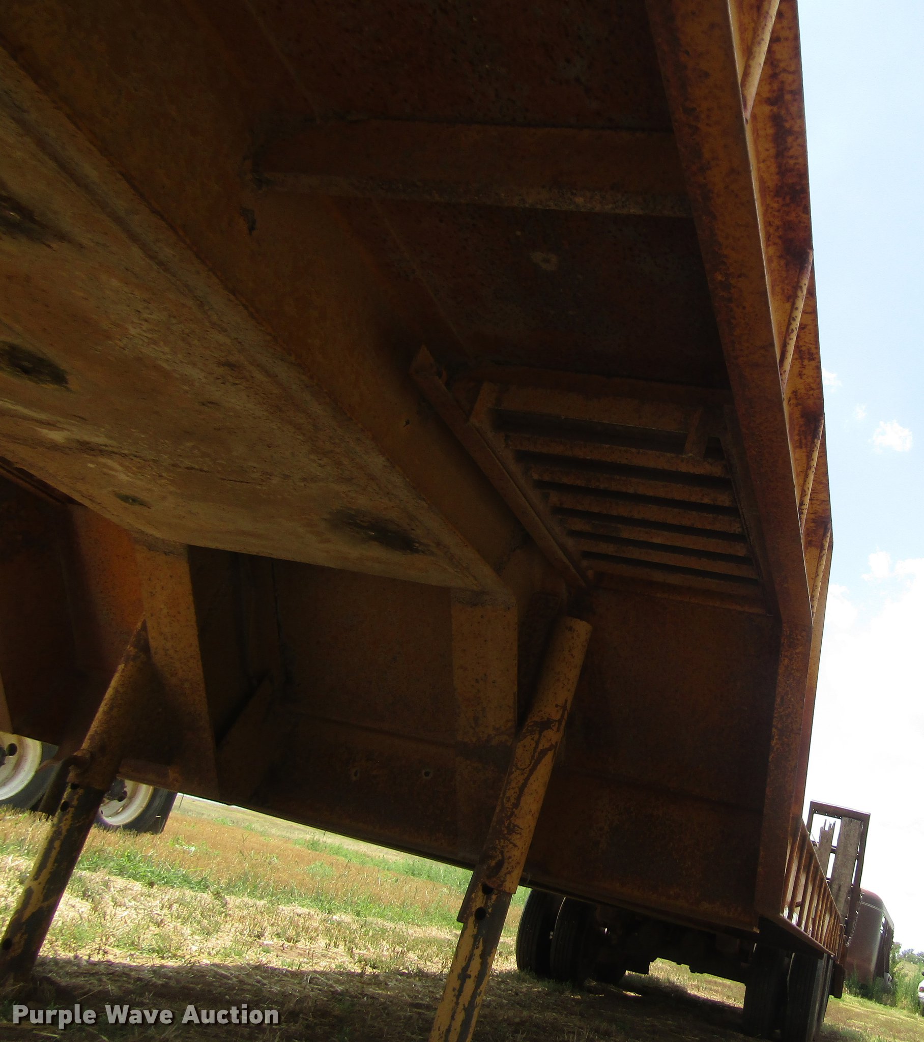 Purple Wave is selling a used Equip. Trailer in Kansas. This item is a 1973 Carrier King 4000 drop deck equipment trailer with the following: 37' overall length, 23'10"L x 95.5"W steel and wood main deck, 96"L upper deck, Dovetail, 5'L ramps, 21" x 24" upper ramps, 200" from front of trailer to tire opening, 220" from front of trailer to rear tire opening, 25 ton capacity, Fifth wheel plate, Dual leg landing gear, Spring suspension, Air brakes, Tandem axle, Steel wheels, 8.25R15TR tires