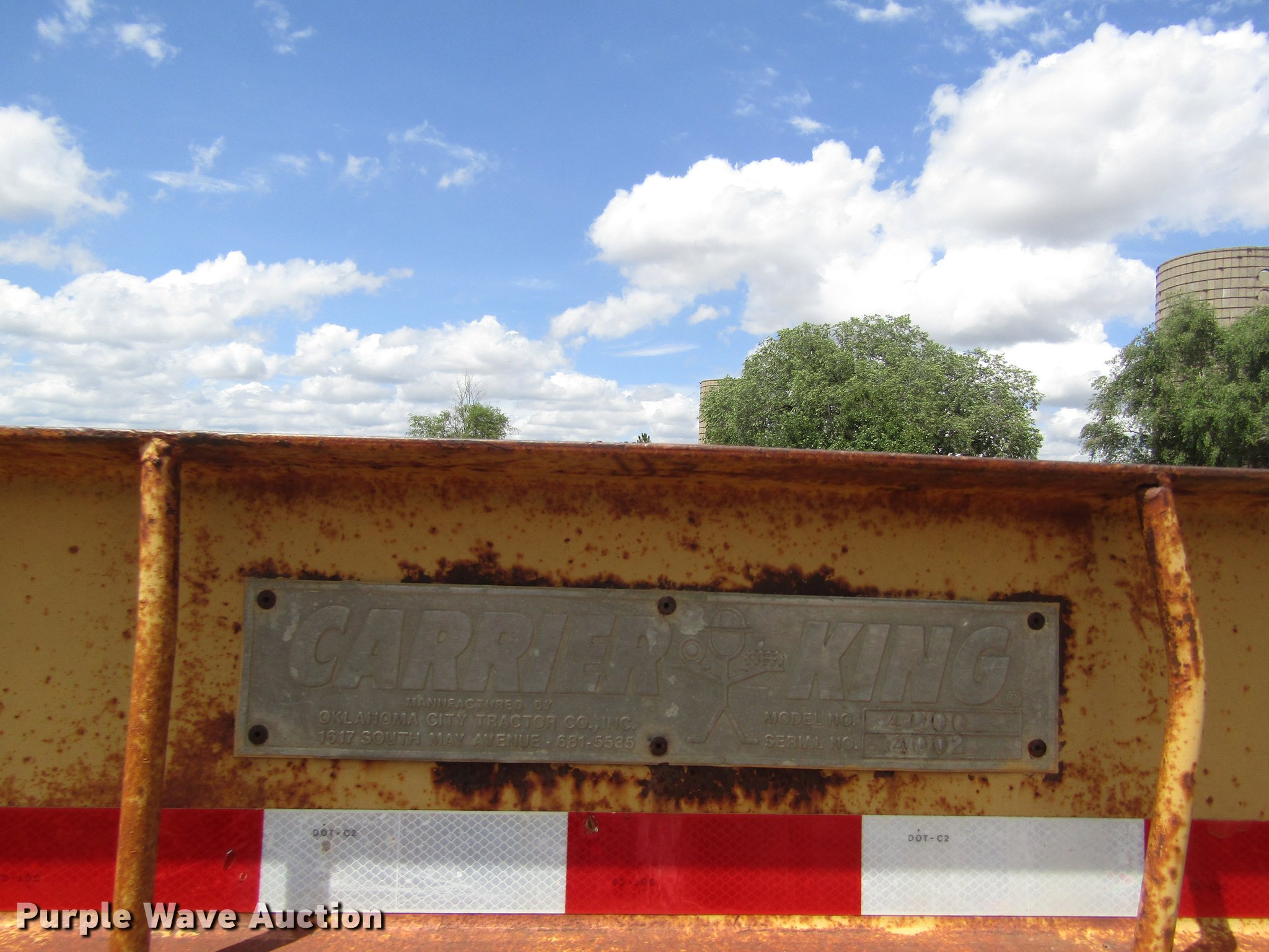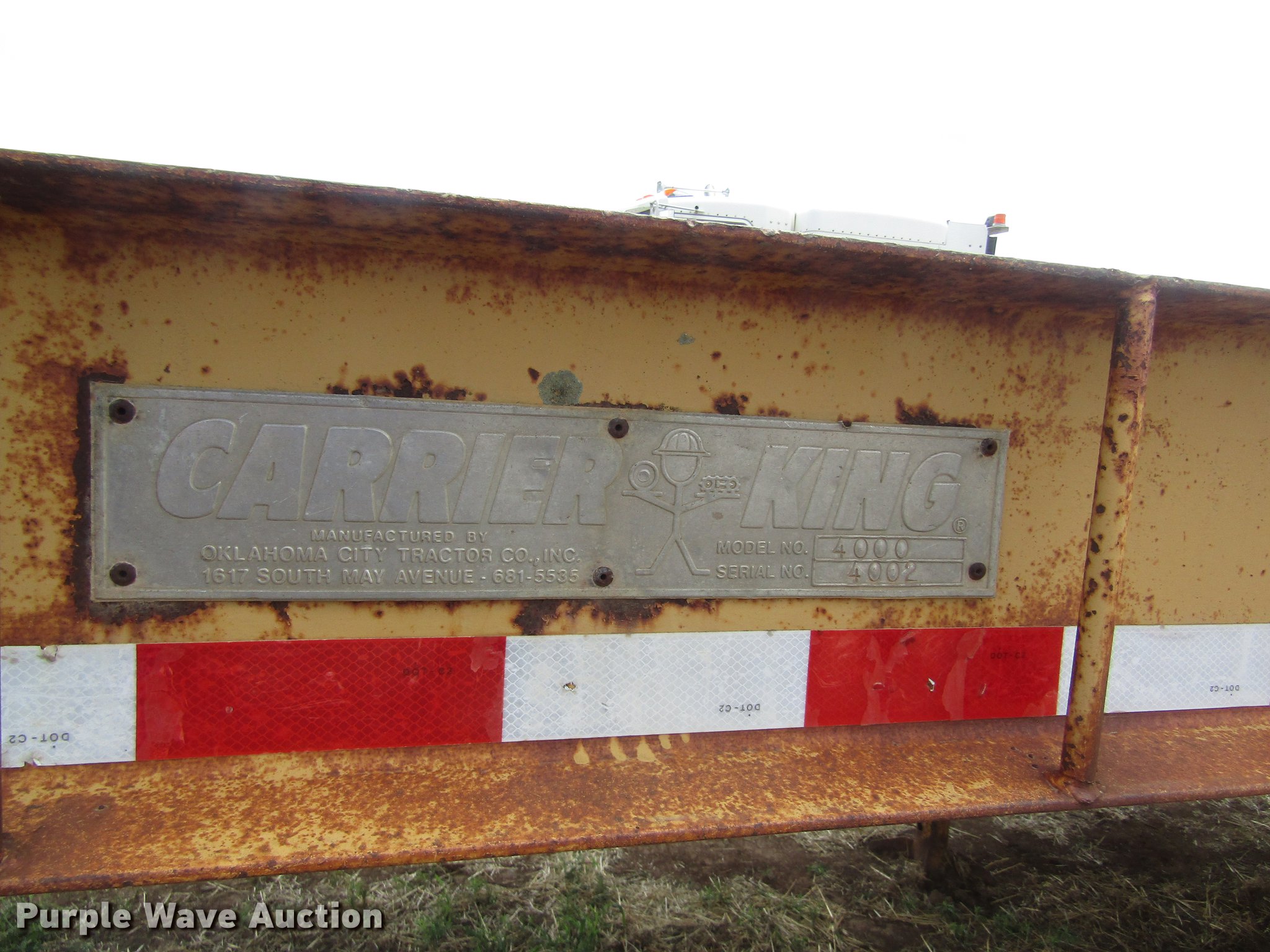 Take a look at this used 1973 Carrier King 4000 drop deck equipment trailer being sold on August 16th, 2018 in the SOLD! August 16 Construction Equipment Auction made by Carrier King. Take a look at all of the item information below or take a look at similar auctions for Trailers.