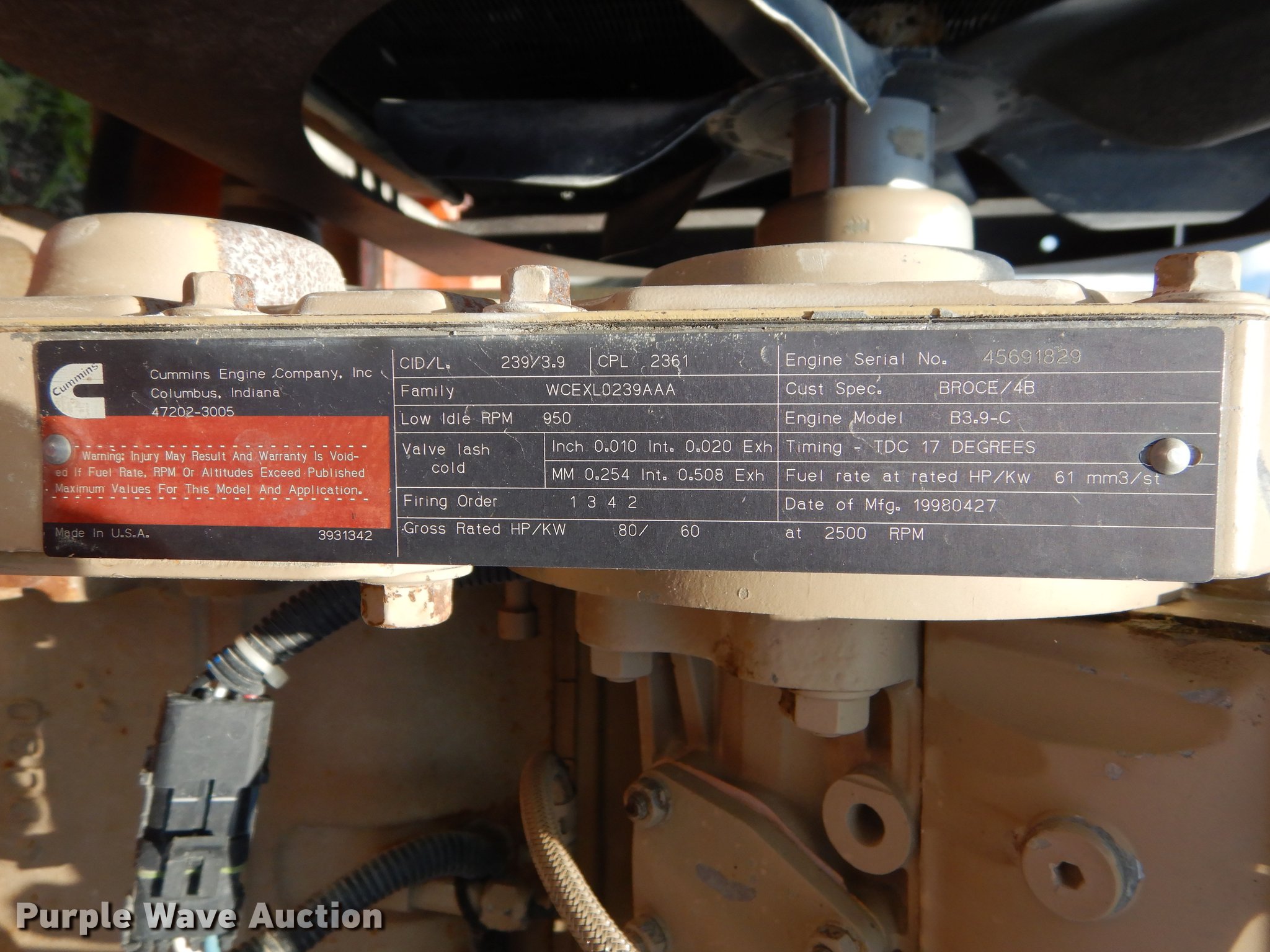 1998 Broce RC350 broom. 4,754 hours on meter, Cummins 3.9L four cylinder diesel engine 80 HP, Serial 45691829, Canopy, Beacon light, 7'W broom, Front work lights, Dextero 225/75R15 tires, Serial 89456. Saint Joseph, MO 64506