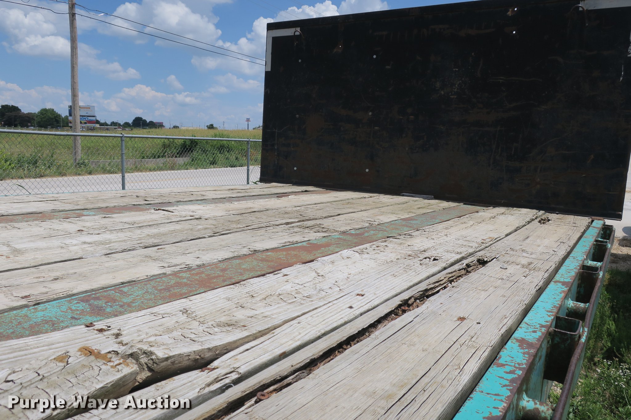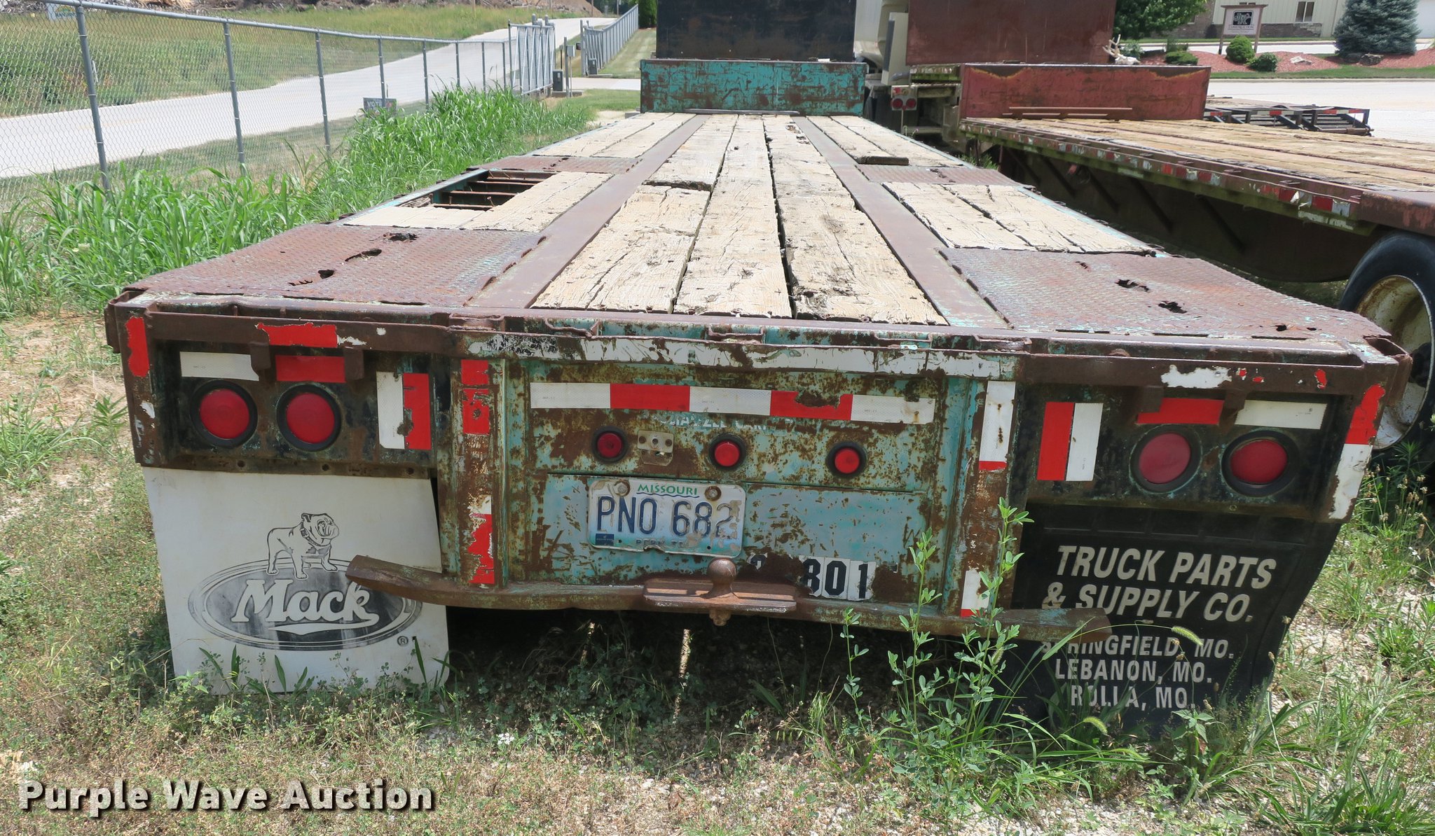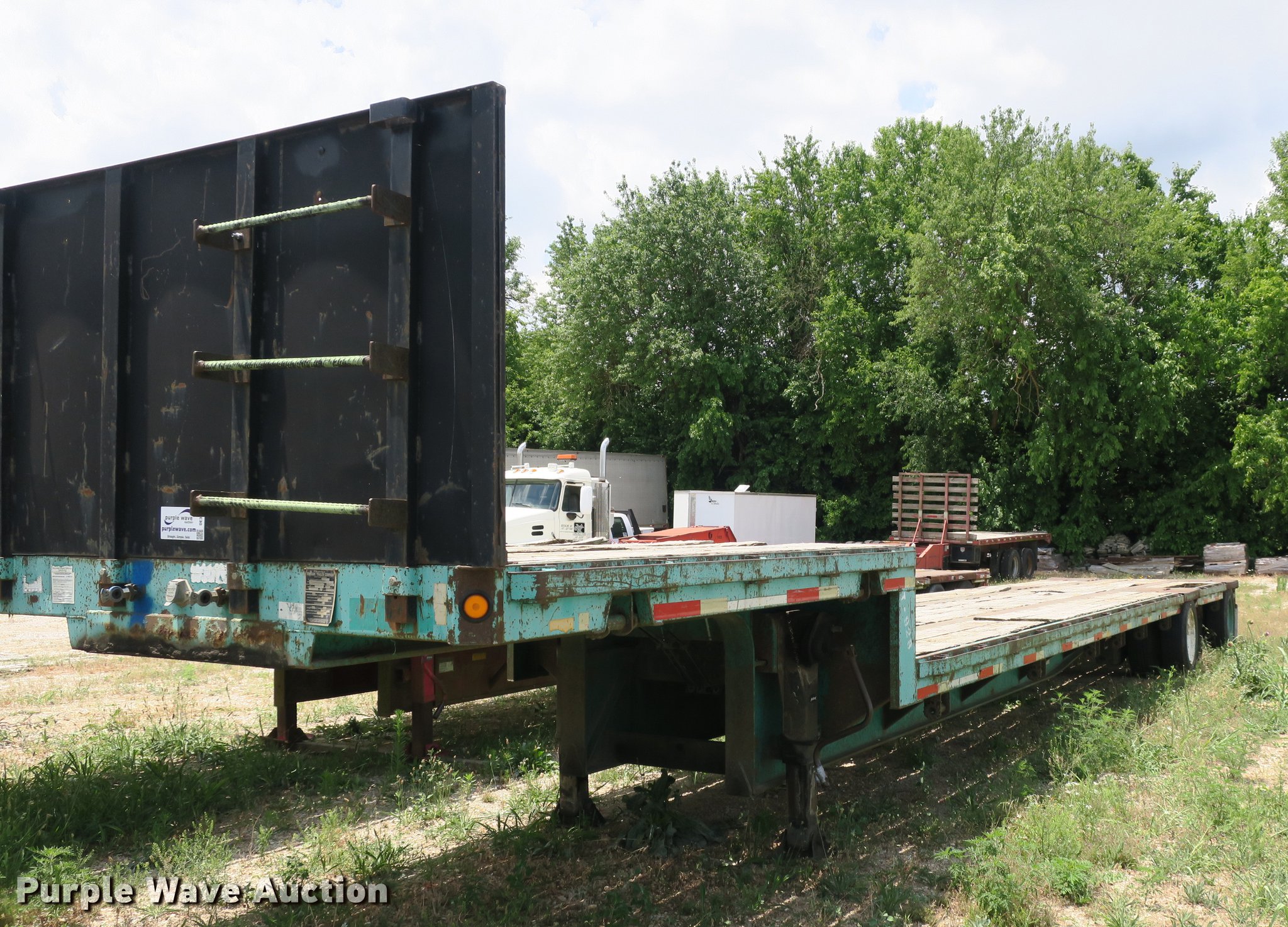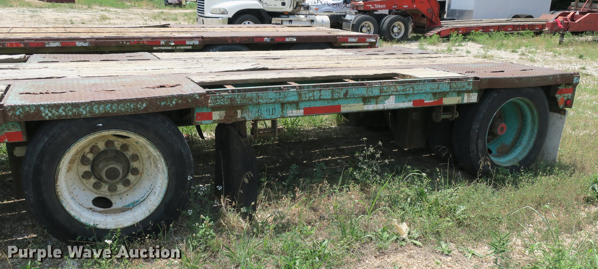 Purple Wave is selling a used Flat or Drop Deck Trailer in Missouri. This item is a 1991 Fontaine DFT-4-8048WSA drop deck trailer with the following: 48' overall length, 37'L x 94"W wood main deck, 9'9" top deck, 39" floor height, Stake side pockets, fifth wheel plate, Dual leg landing gear, Spring suspension, Air brakes, Tandem spread axle, Steel wheels, 255/70R22.5 tires, GVWR 70,752 lbs