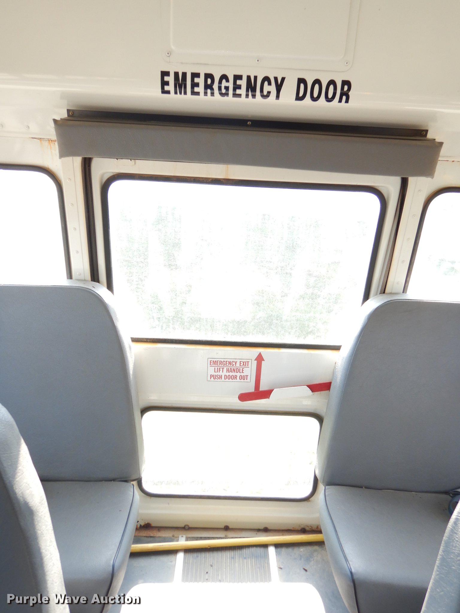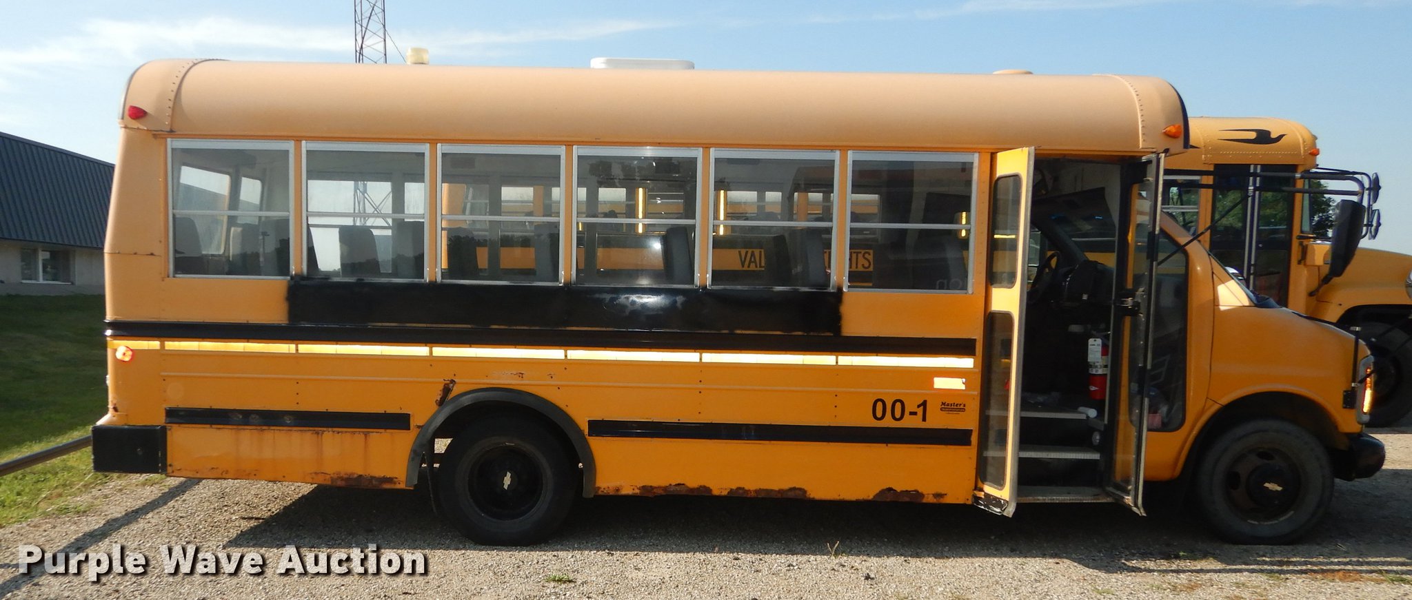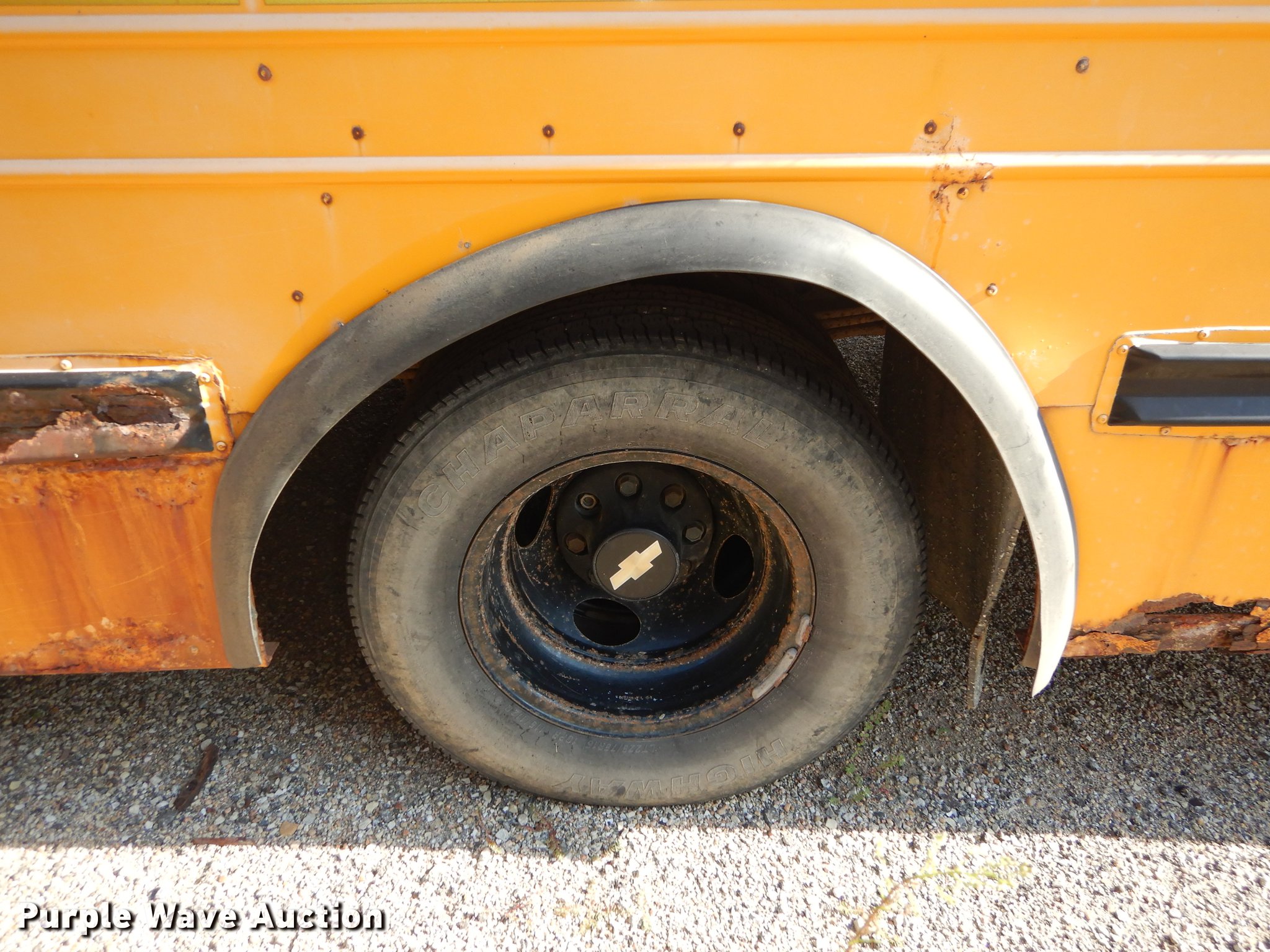Purple Wave is selling a used Bus in Kansas. This item is a 2000 Chevrolet Express G3500 school bus with the following: 183,791 last recorded mileage, 5.7L V8 OHV 16V gas engine, Automatic transmission, Single axle, Heat, AM/FM, Vinyl interior, 24 passenger capacity, (10) seat belts, Ceiling and rear emergency exits, Lighted stop sign, Spring suspension, Hydraulic brakes, 164" wheelbase, 225/75R16 tires, GVWR 12,000 lbs, Unit# 00-1