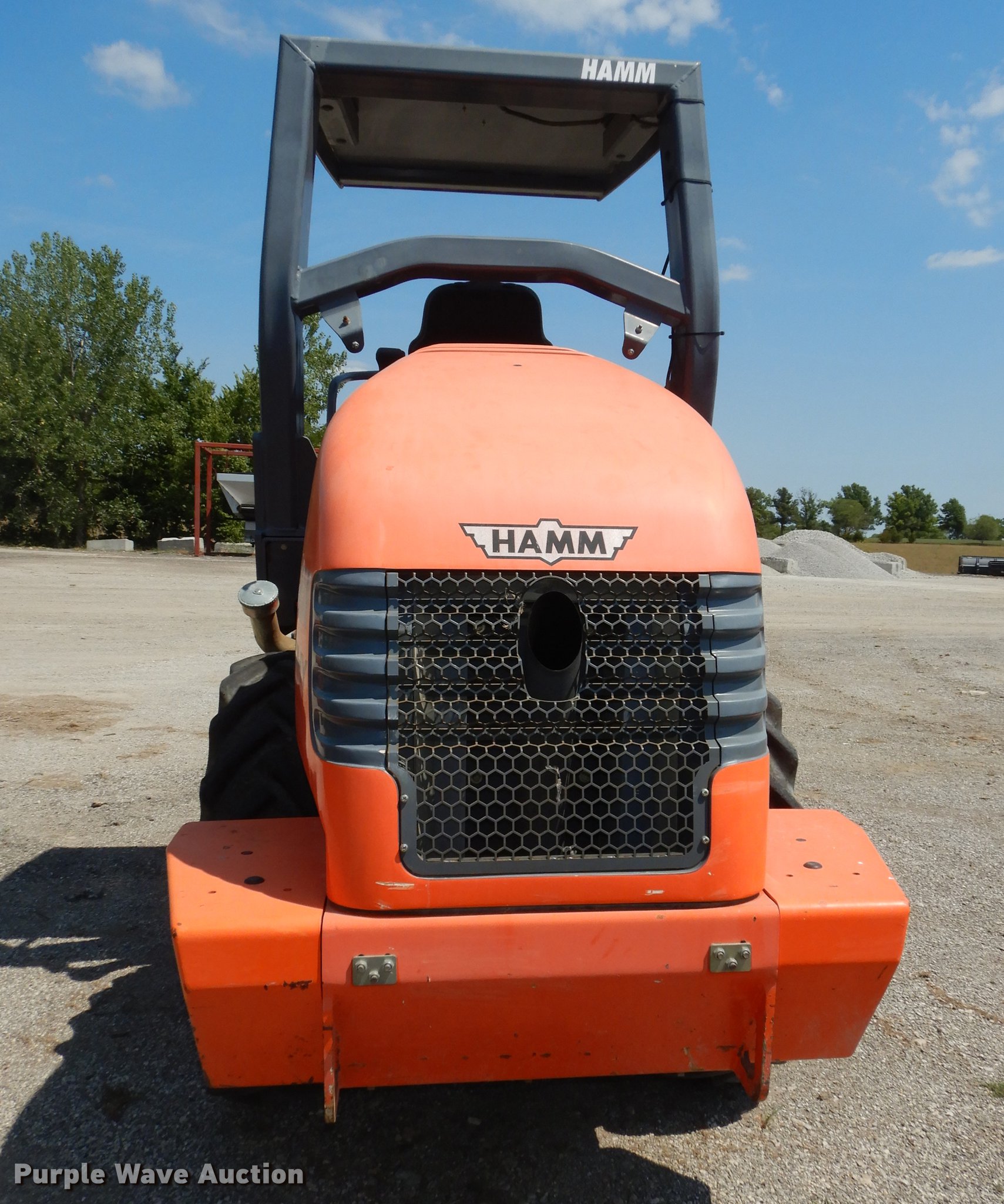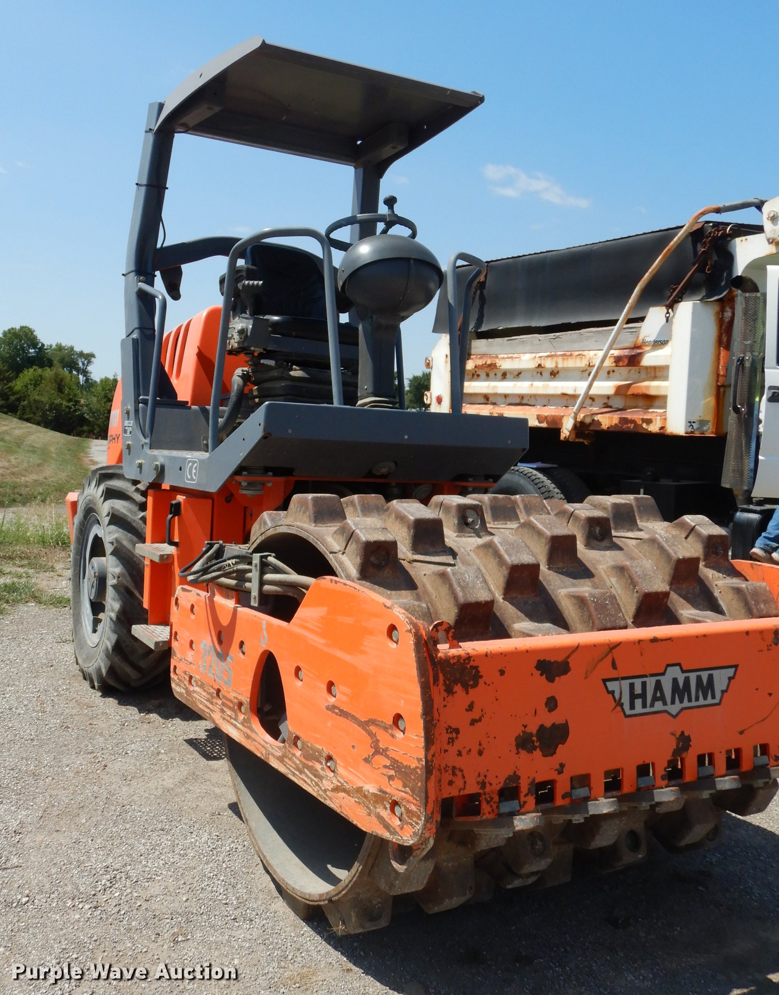 Purple Wave is selling a used Single Drum Roller Compactor in Kansas. This item is a 2006 Hamm 3205 roller with the following: 779 hours on meter, Deutz F4M2011 3.109L four cylinder diesel engine, 60 HP, 45 kW, Serial 10104863, Hydrostatic transmission, OROPS, Tilt steering wheel, Suspension seat, Backup alarm, Single vibratory system, 54"W padfoot drum, Front drum scrapers, Galaxy 12.4-24 rear tires, 14,600 lbs. base operating weight, Serial H1580202, Unit# 125