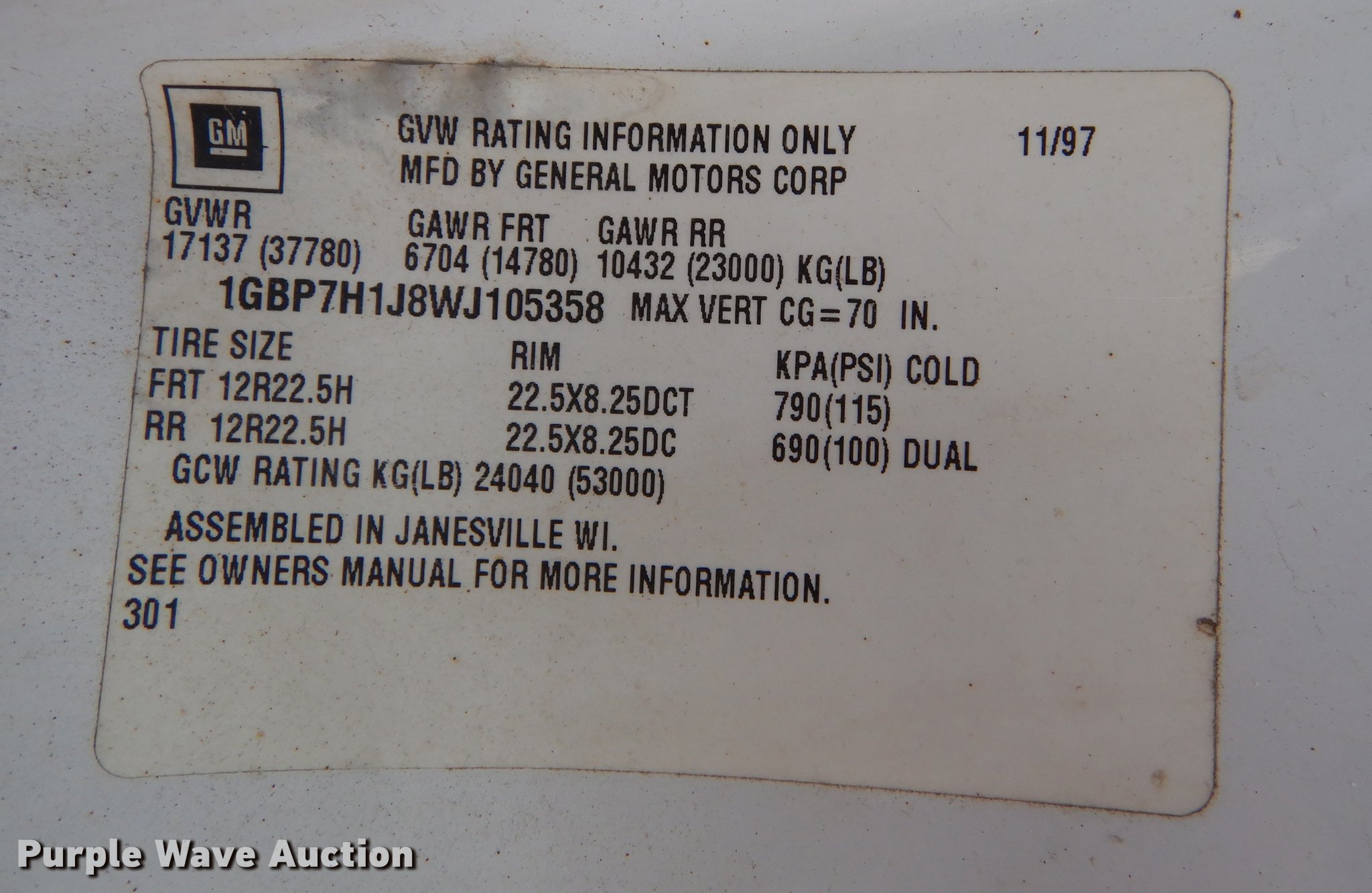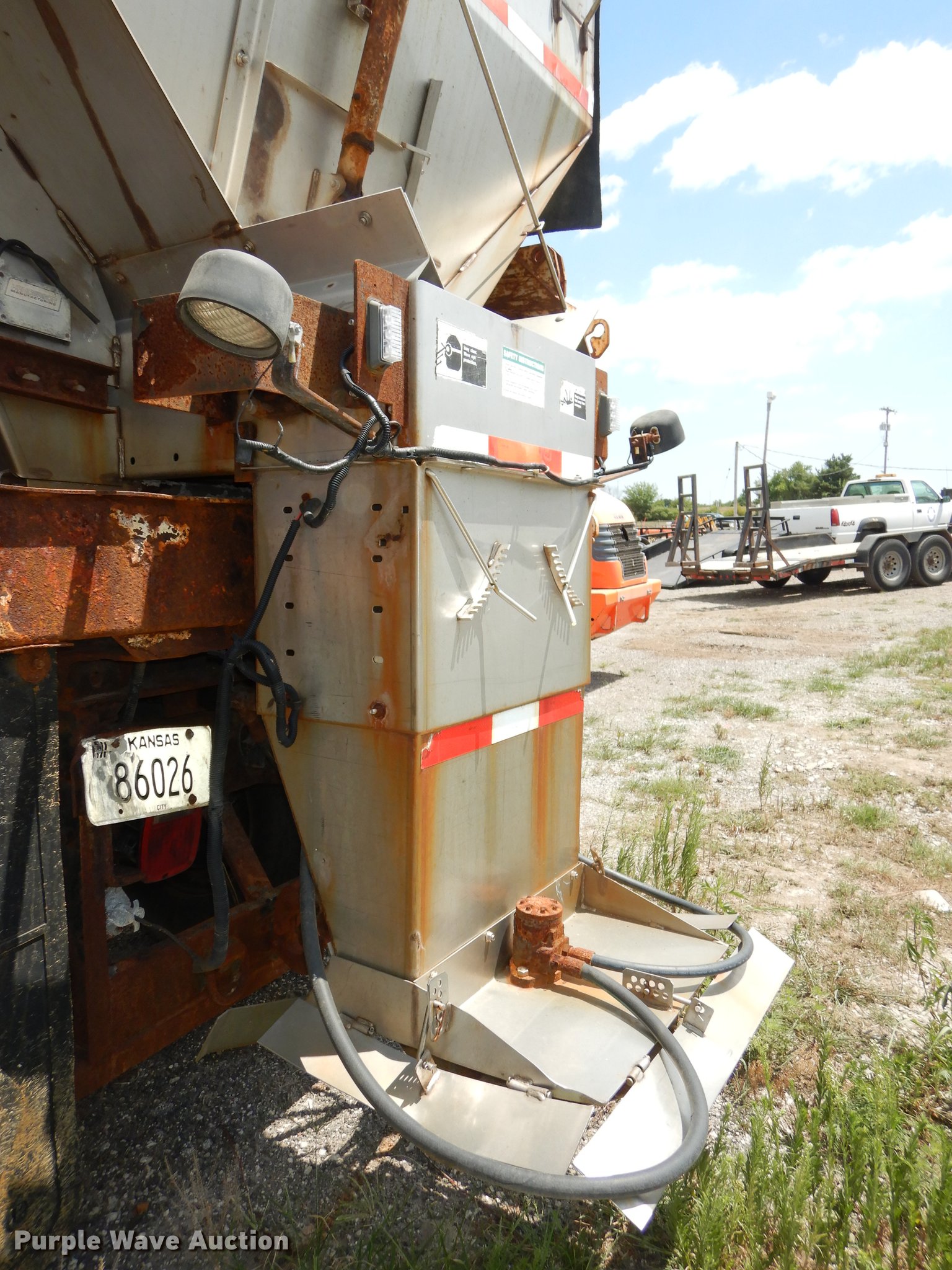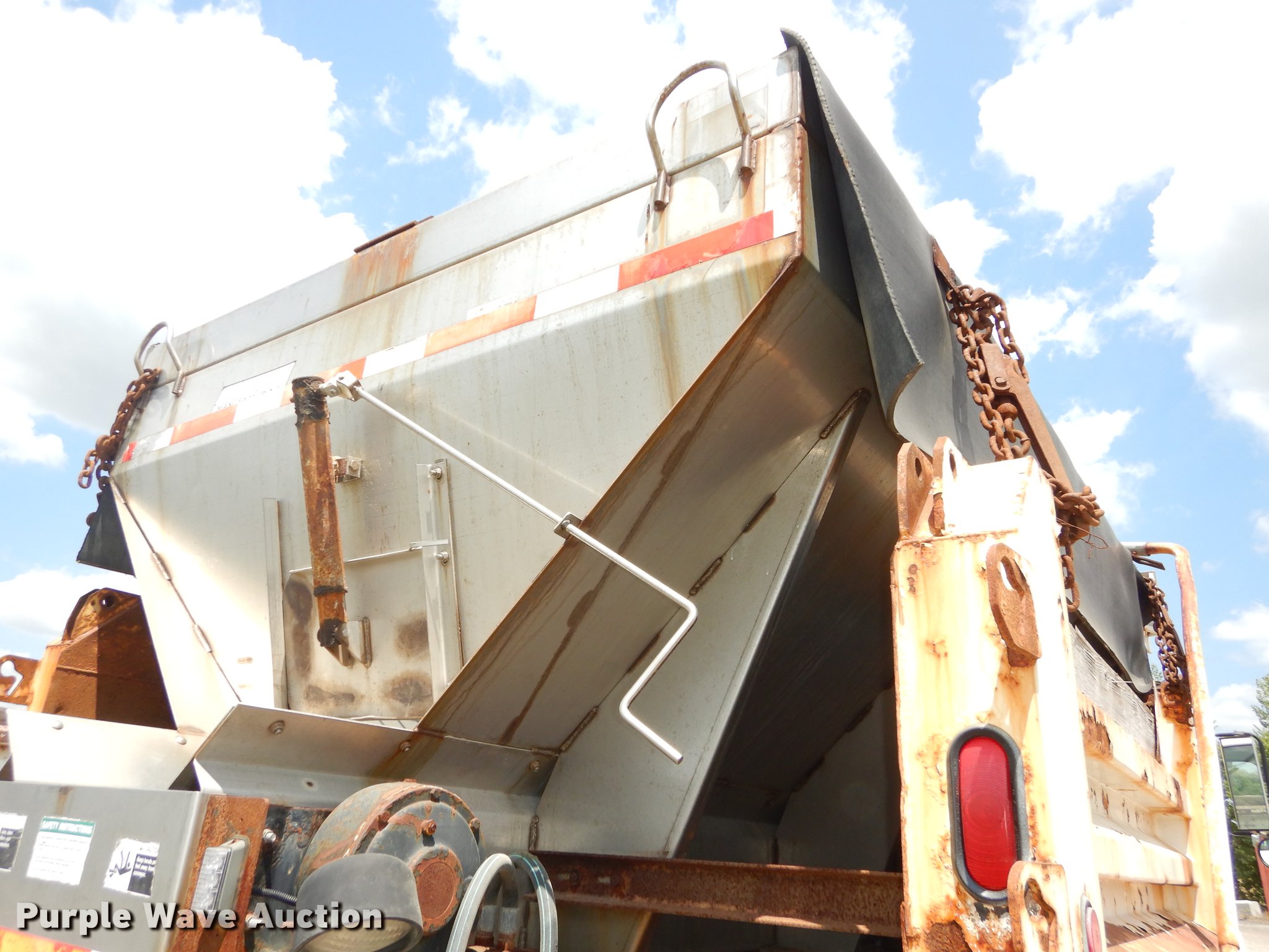 Purple Wave is selling a used Construction Dump Truck in Kansas. This item is a 1998 Chevrolet C8500 dump truck with the following: 62,080 miles on odometer, 6,822 hours on meter, Caterpillar 3116 6.6L six cylinder turbo diesel engine, Allison automatic transmission, Single axle, AC and heat, AM/FM, Air suspension seat, Leather interior, Block heater, Work lights, Chelsea PTO, Henderson 10X24XUBXMK2 steel dump bed, 10'L x 90"W, 24" side height, 8" side board height, Roll tarp, Single ram hoist, Unattached end gate included, Henke 10'W plow, Henderson stainless steel spreader, Dual fuel tanks, Pintle hitch, Trailer wiring, Spring suspension, Air brakes, 157" wheelbase, 12R22.5 tires, GVWR 37,780 lbs, FAWR 14,780 lbs, RAWR 23,000 lbs, Unit# 113