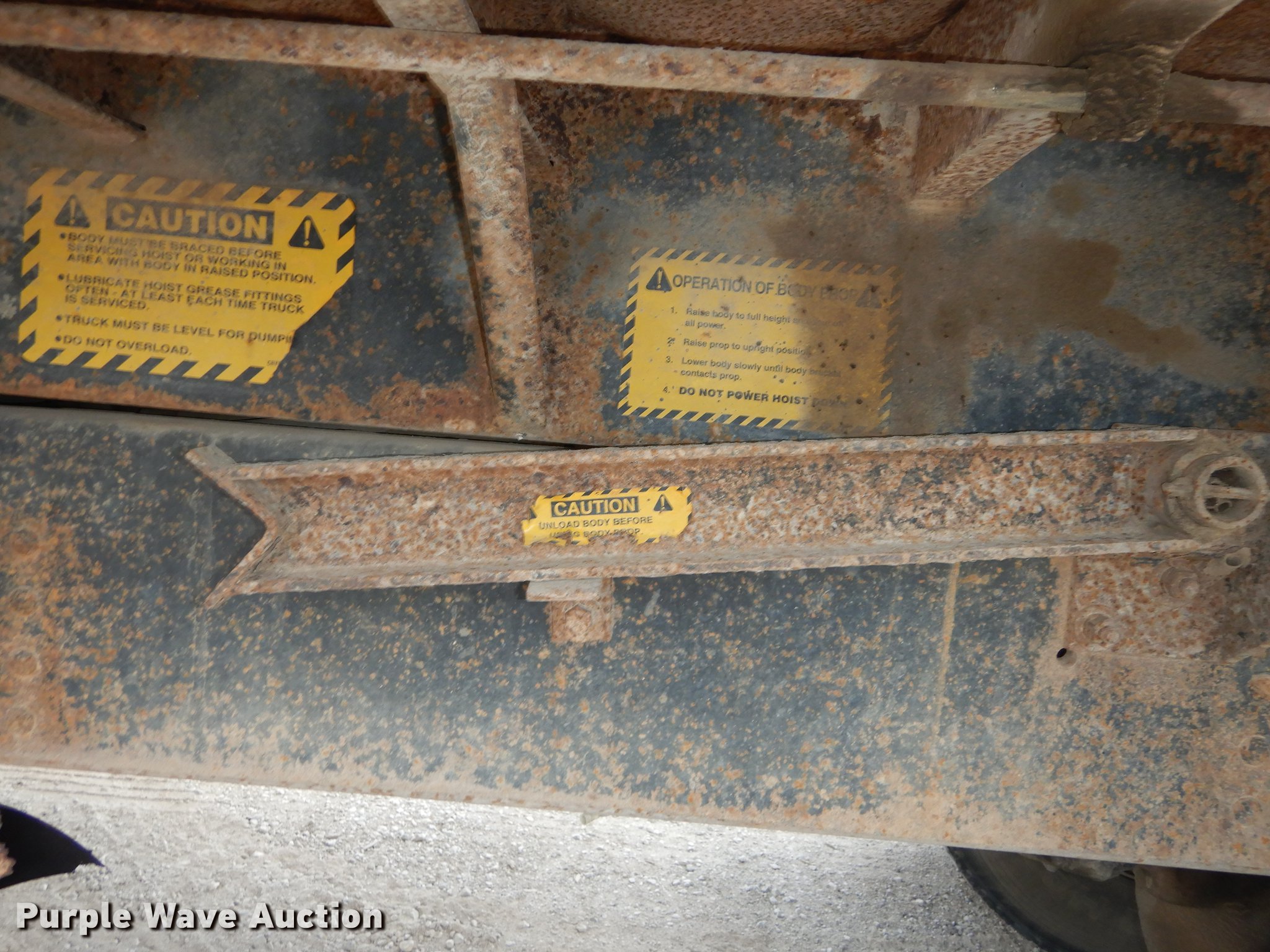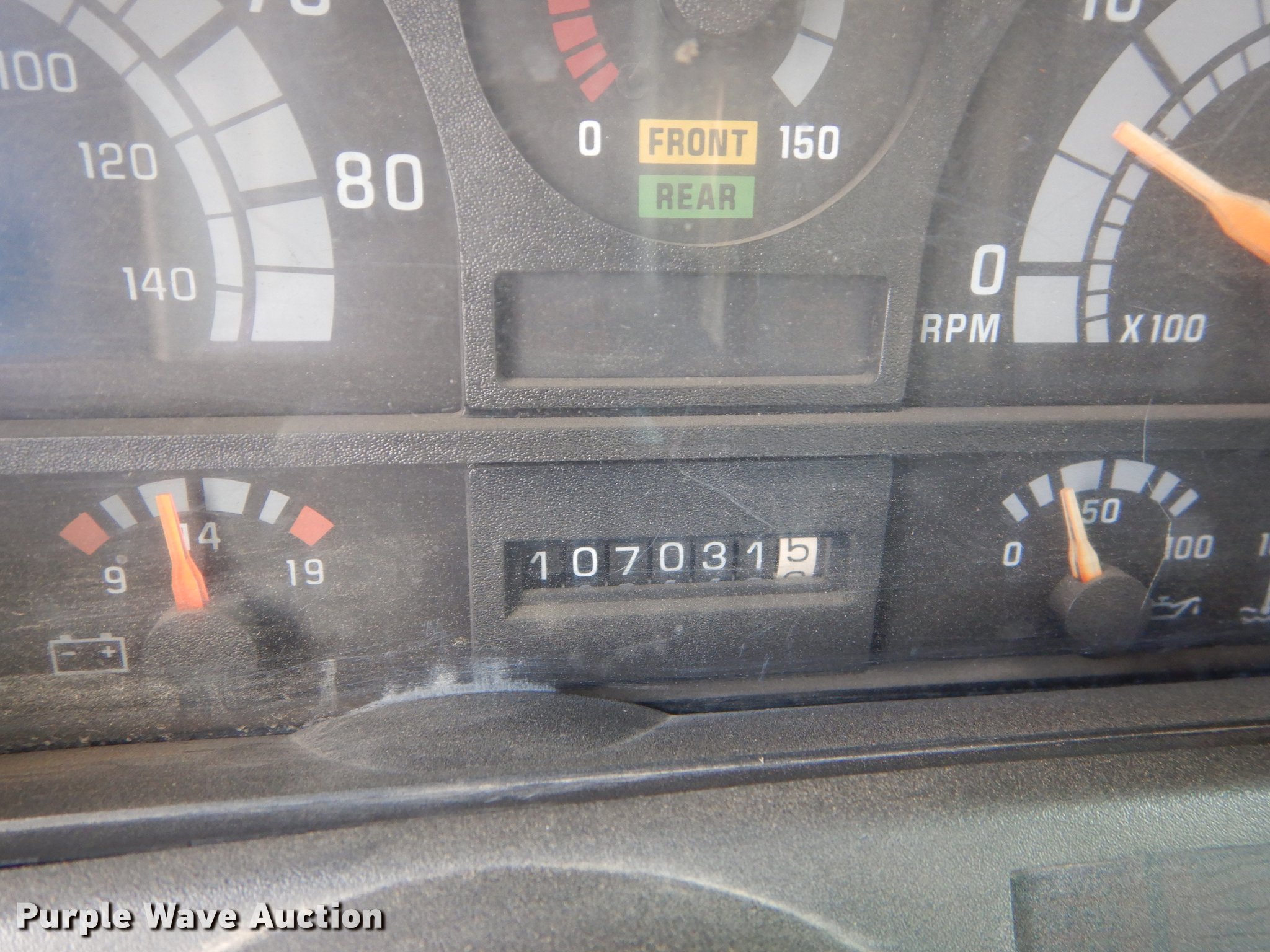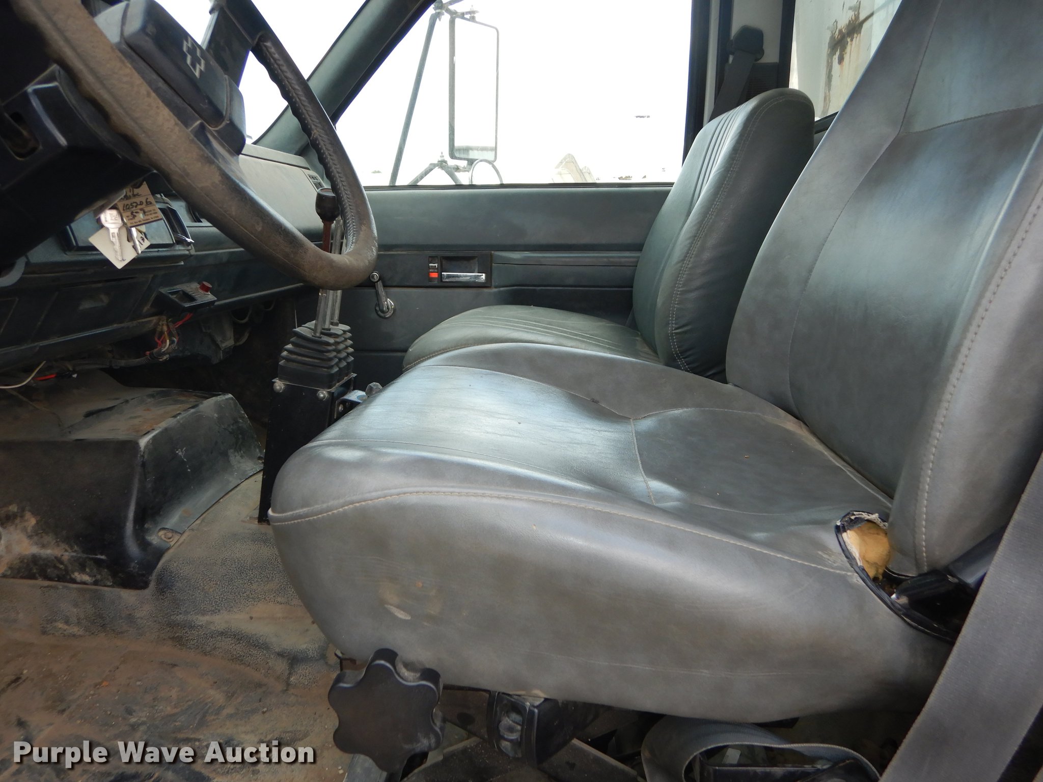 Purple Wave is selling a used Construction Dump Truck in Kansas. This item is a 1998 Chevrolet C8500 dump truck with the following: 107,031 miles on odometer, Caterpillar 3116 6.6L six cylinder diesel engine, Allison automatic transmission, Tandem axle, AC and heat, AM/FM, Air suspension seat, Leather interior, Front tow hooks, Chelsea PTO, 15'L x 8'W steel dump bed, 3' side height, Roll tarp, Single ram hoist, Manual end gate, Dual fuel tanks, Spring over walking beam suspension, Air brakes, 200" wheelbase, 315/80R22.5 front tires, 11R22.5 rear tires, GVWR 56,000 lbs, FAWR 16,000 lbs, IAWR 20,000 lbs, RAWR 10,000 lbs, Unit# 114