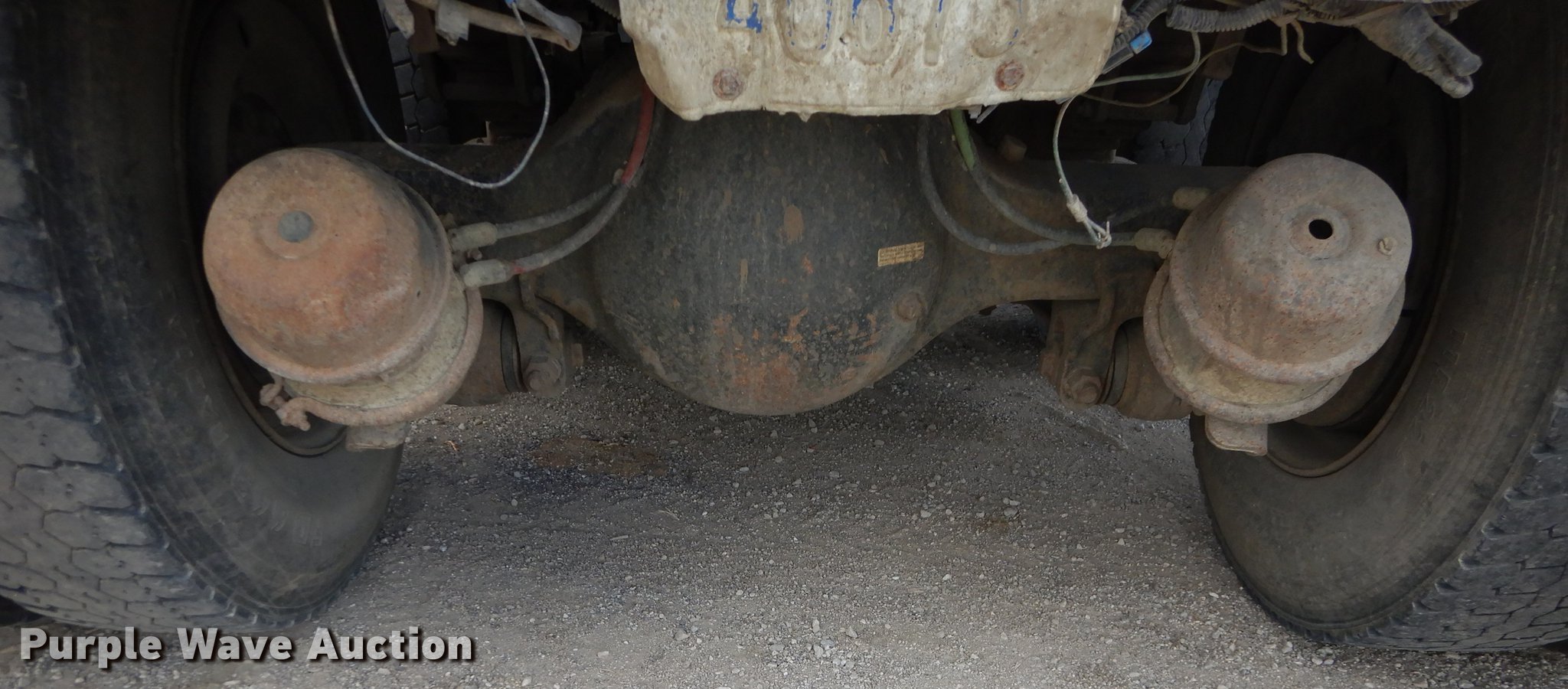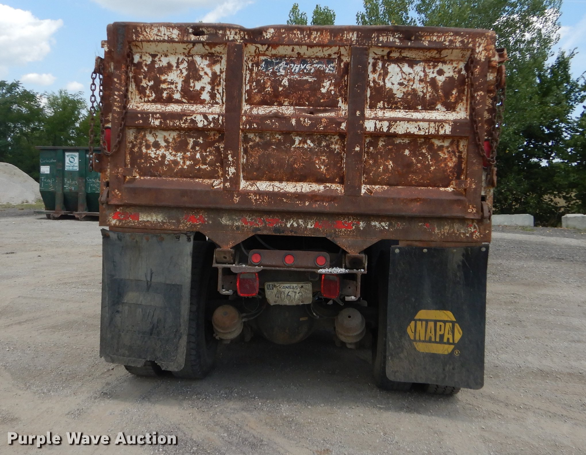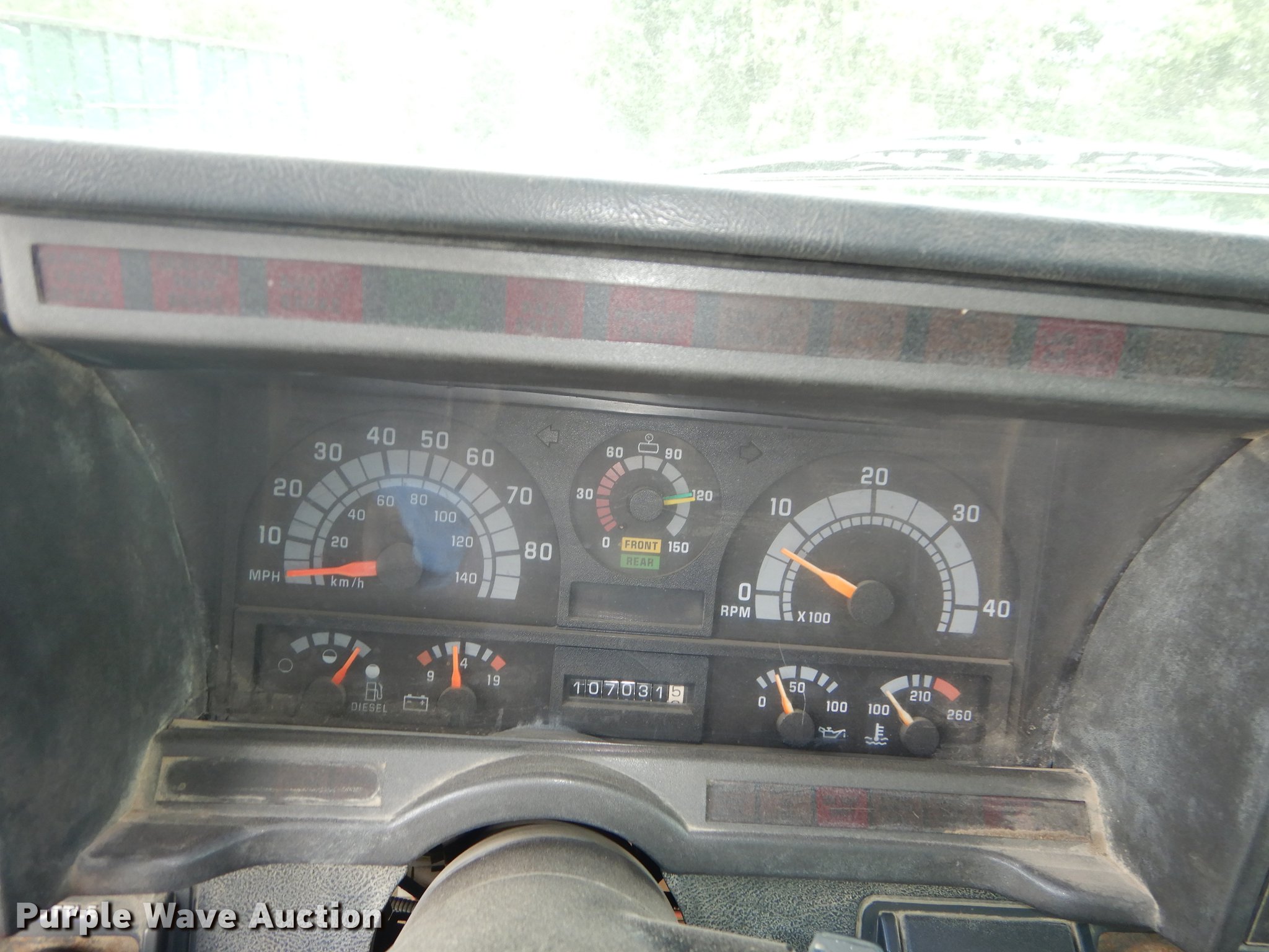 Purple Wave is selling a used Construction Dump Truck in Kansas. This item is a 1998 Chevrolet C8500 dump truck with the following: 107,031 miles on odometer, Caterpillar 3116 6.6L six cylinder diesel engine, Allison automatic transmission, Tandem axle, AC and heat, AM/FM, Air suspension seat, Leather interior, Front tow hooks, Chelsea PTO, 15'L x 8'W steel dump bed, 3' side height, Roll tarp, Single ram hoist, Manual end gate, Dual fuel tanks, Spring over walking beam suspension, Air brakes, 200" wheelbase, 315/80R22.5 front tires, 11R22.5 rear tires, GVWR 56,000 lbs, FAWR 16,000 lbs, IAWR 20,000 lbs, RAWR 10,000 lbs, Unit# 114