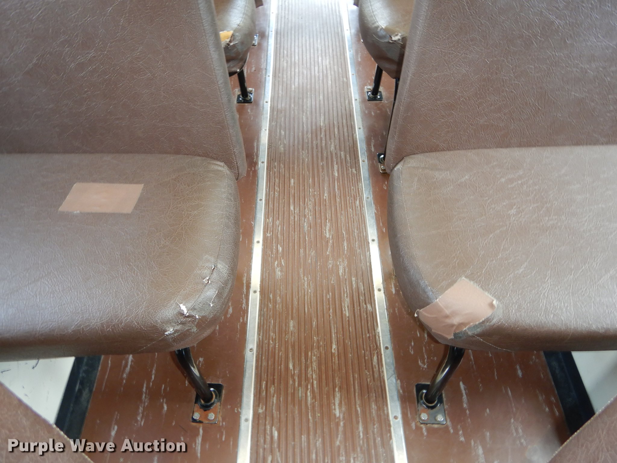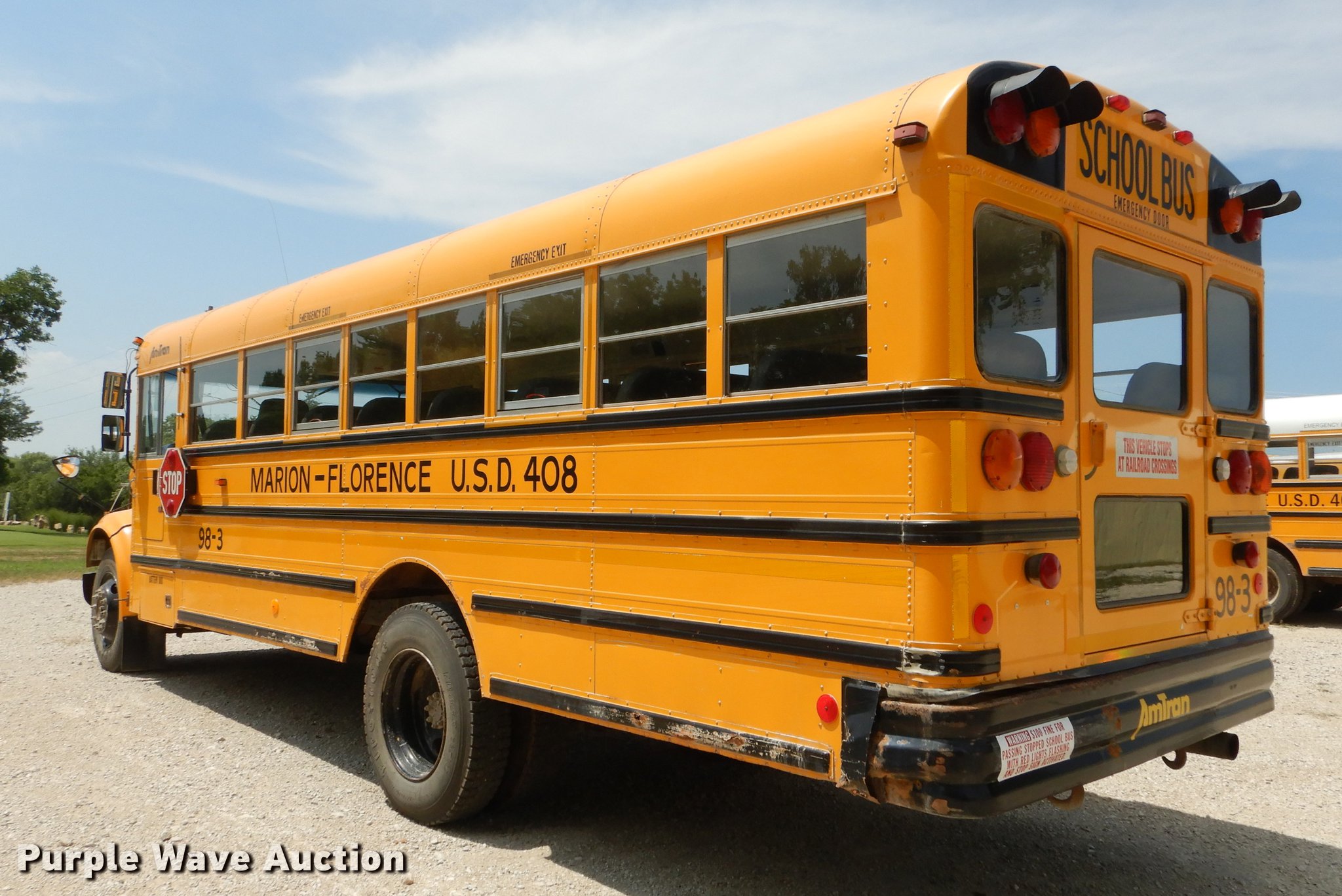 Purple Wave is selling a used Bus in Kansas. This item is a 1999 International 3800 Am Tran school bus with the following: 204,864 miles on odometer, 7,455 hours on meter, International DT466E 7.6L L6 turbo diesel engine, Automatic transmission, Single axle, Heat, Cruise, AM/FM, Heated mirrors, Vinyl interior, 47 passenger capacity, Ceiling, rear, and side emergency exits, Beacon light, Lighted stop sign, Backup alarm, Block heater, Front and rear tow hooks, Spring suspension, Hydraulic brakes, 194" wheelbase, Firestone 10R22.5 tires, Broken flex plate, Chipped windshield, Unit# 98-3