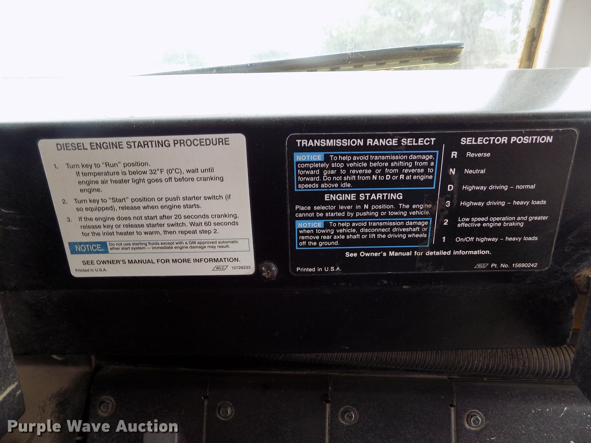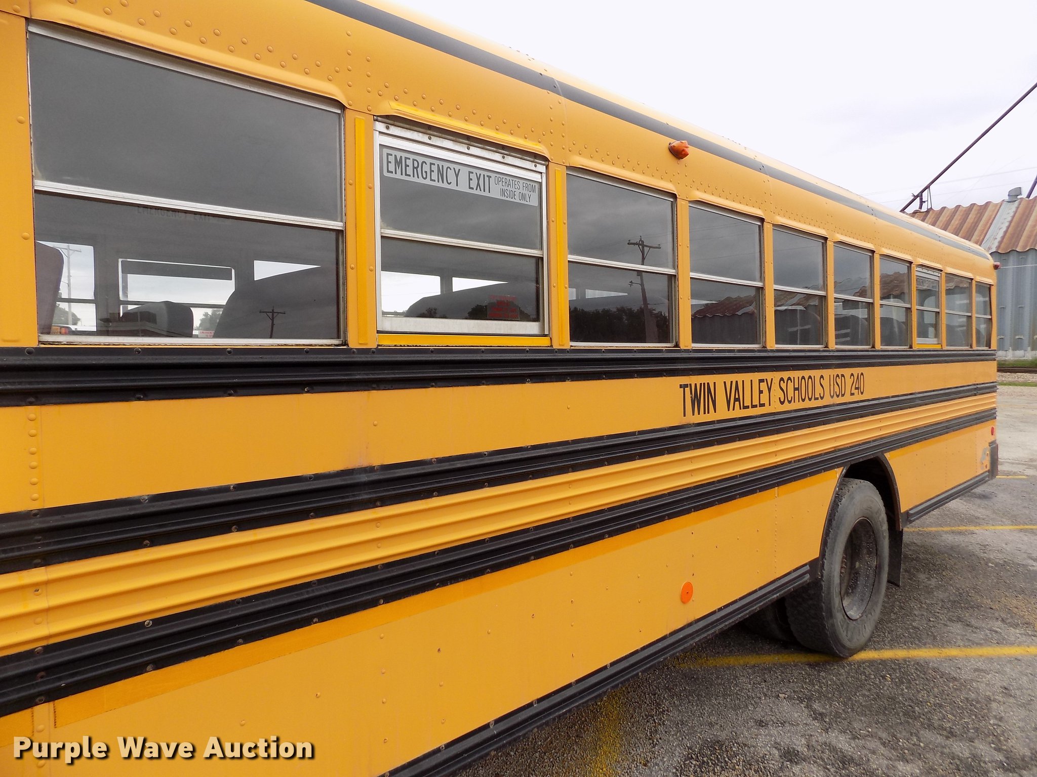 Purple Wave is selling a used Bus in Kansas. This item is a 2000 Chevrolet B7 Bluebird school bus with the following: 246,912 miles on odometer, Caterpillar 3126 7.2L L6 turbo diesel engine, 190 HP, Serial 8YL00816, Automatic transmission, Single axle, Heat, Suspension seat, 65 passenger capacity, Ceiling, front, rear, and side emergency exits, Stop sign, Rear tow hooks, Hydraulic brakes, 11R22.5 tires, GVWR 27,960 lbs