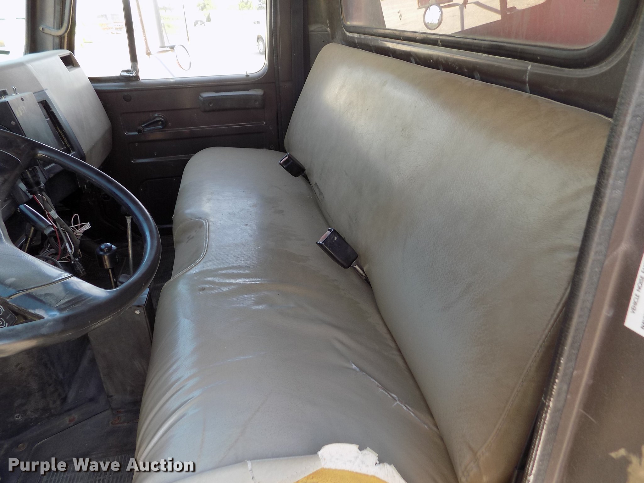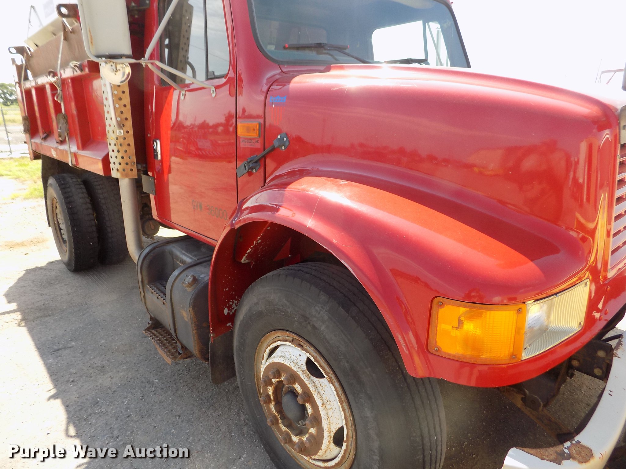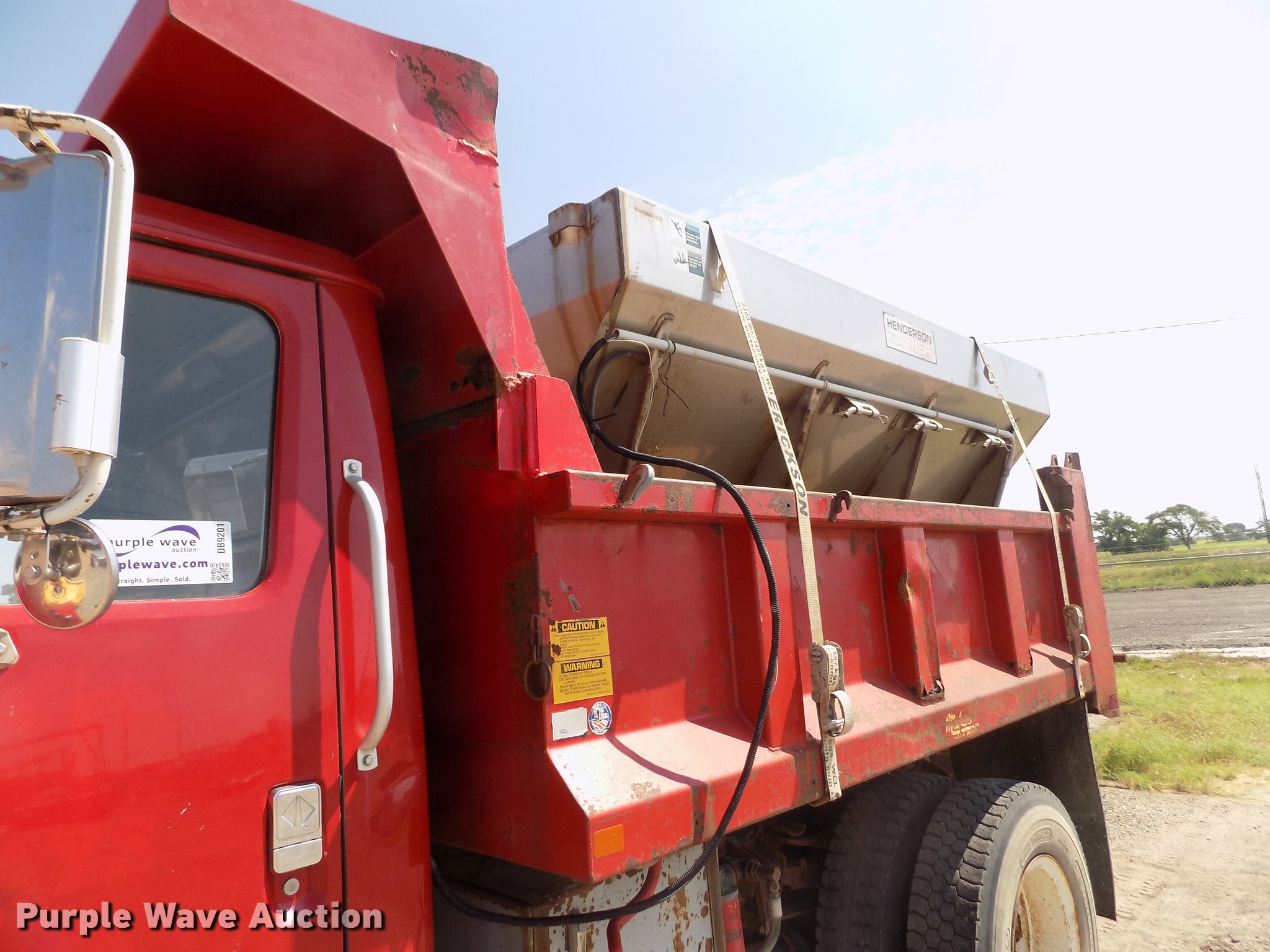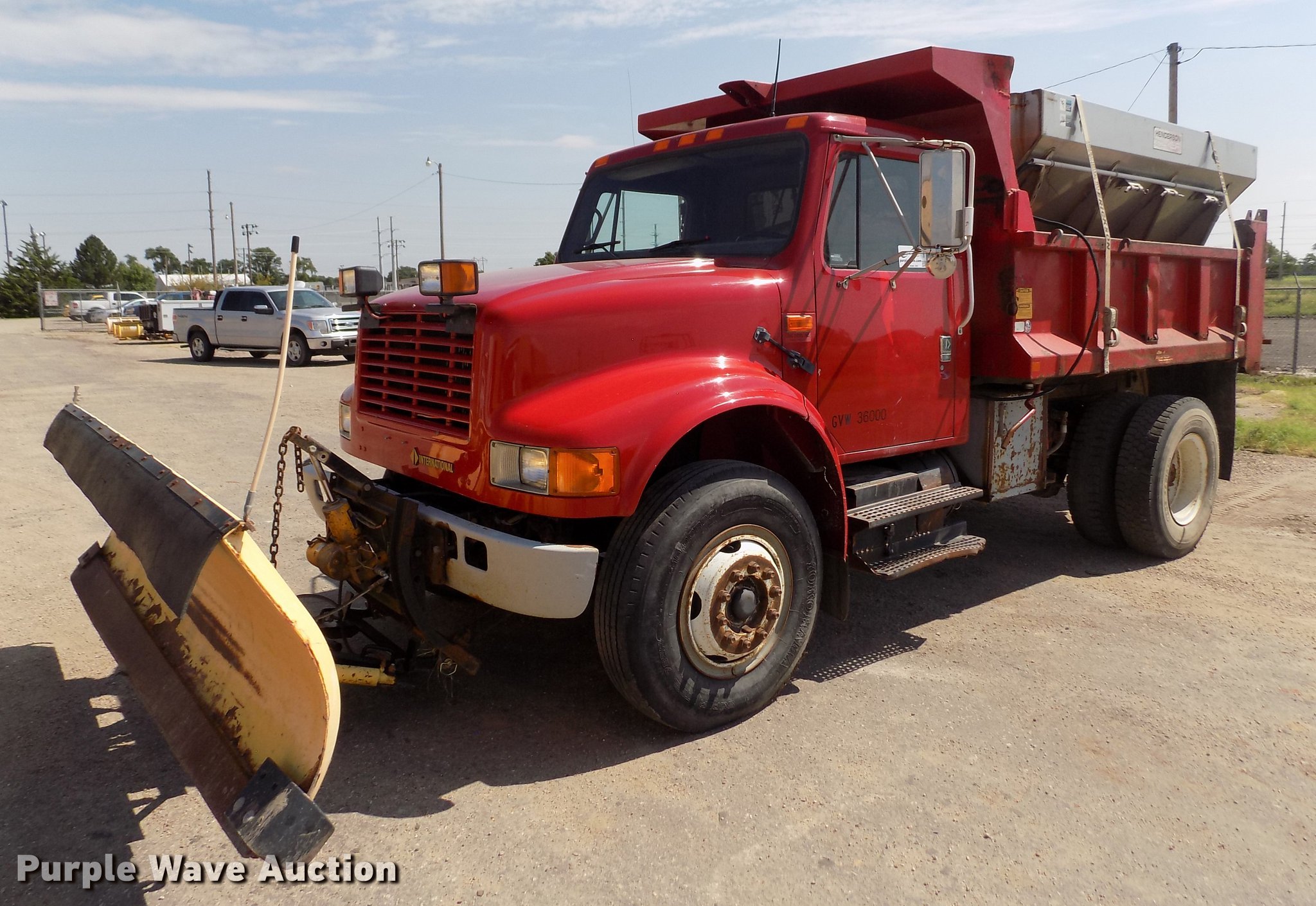 Purple Wave is selling a used Construction Dump Truck in Kansas. This item is a 1992 International 4700 dump truck with the following: 117,101 miles on odometer, International DTA360 5.9L L6 turbo diesel engine, Allison MT650 automatic transmission, Single axle, Heat, AM/FM, Spreader controls, Plow remote control, Chelsea PTO, Mabar steel dump bed, 10'L x 96"W, 34" side height, Manual end gate, Unattached, in bed,, Meyers 10'W plow, Henderson spreader, Five yd. capacity, Single fuel tank, Pintle hitch, Trailer wiring, Spring suspension, Air brakes, 152" wheelbase, 10.00R20 tires, GVWR 36,000 lbs