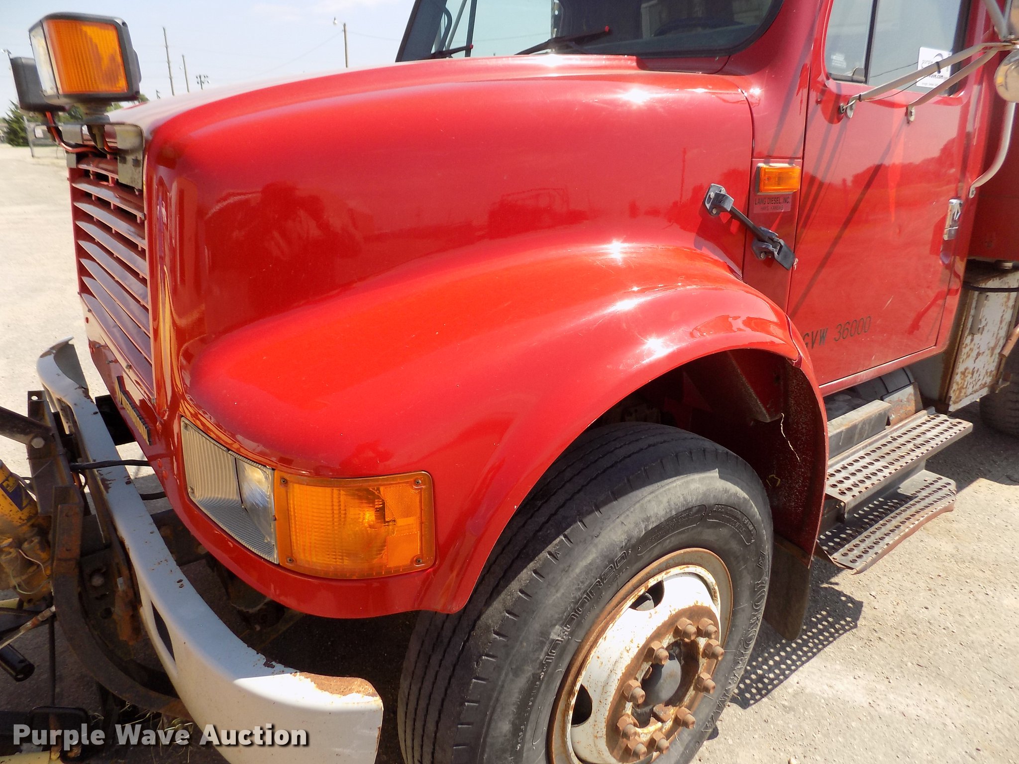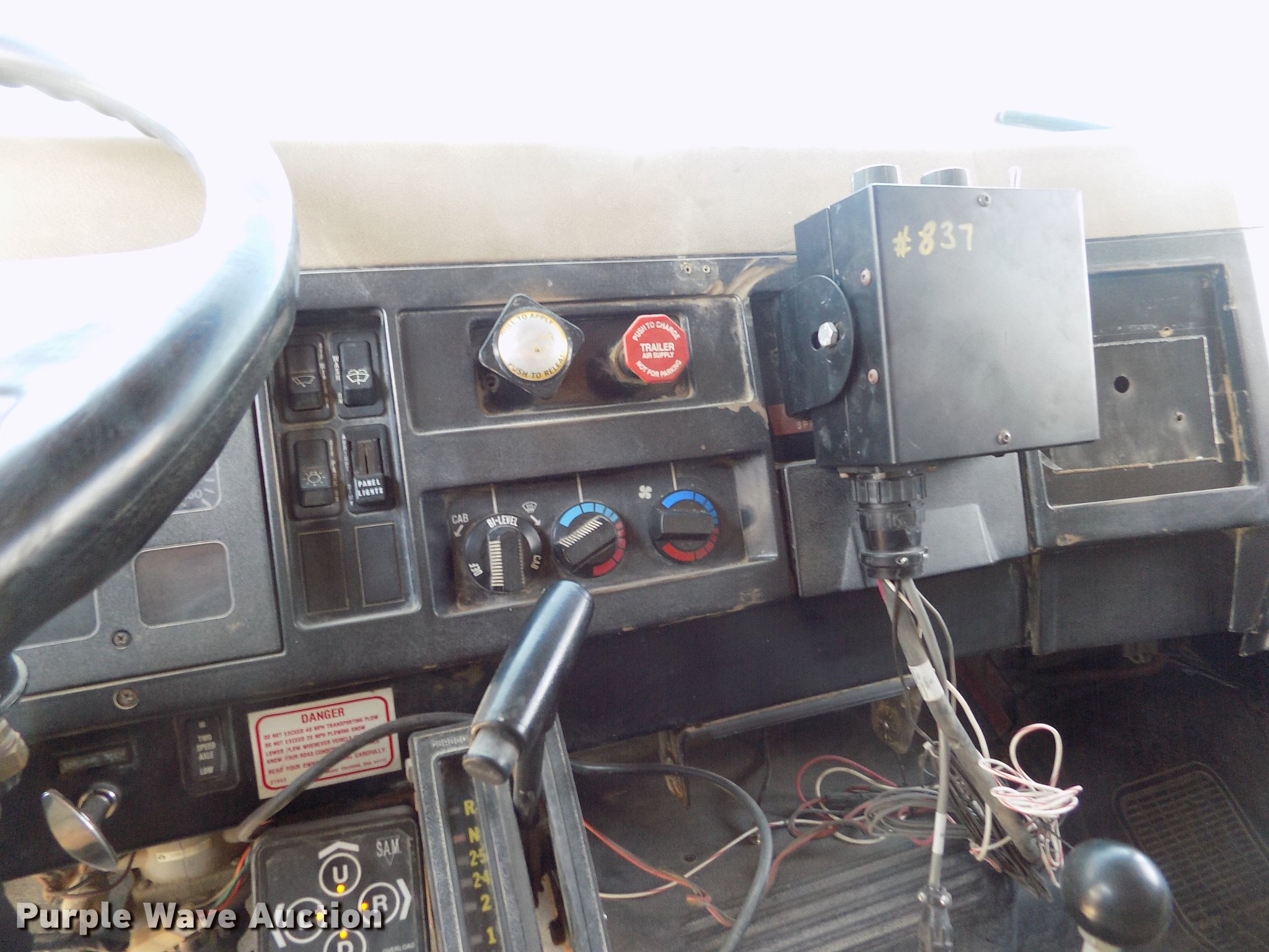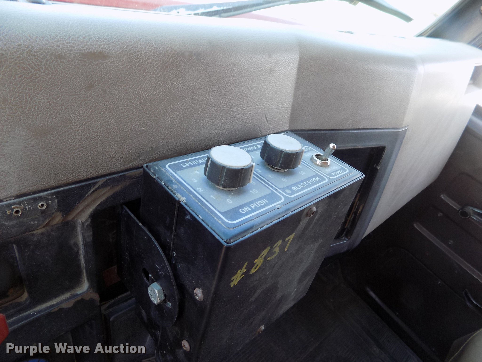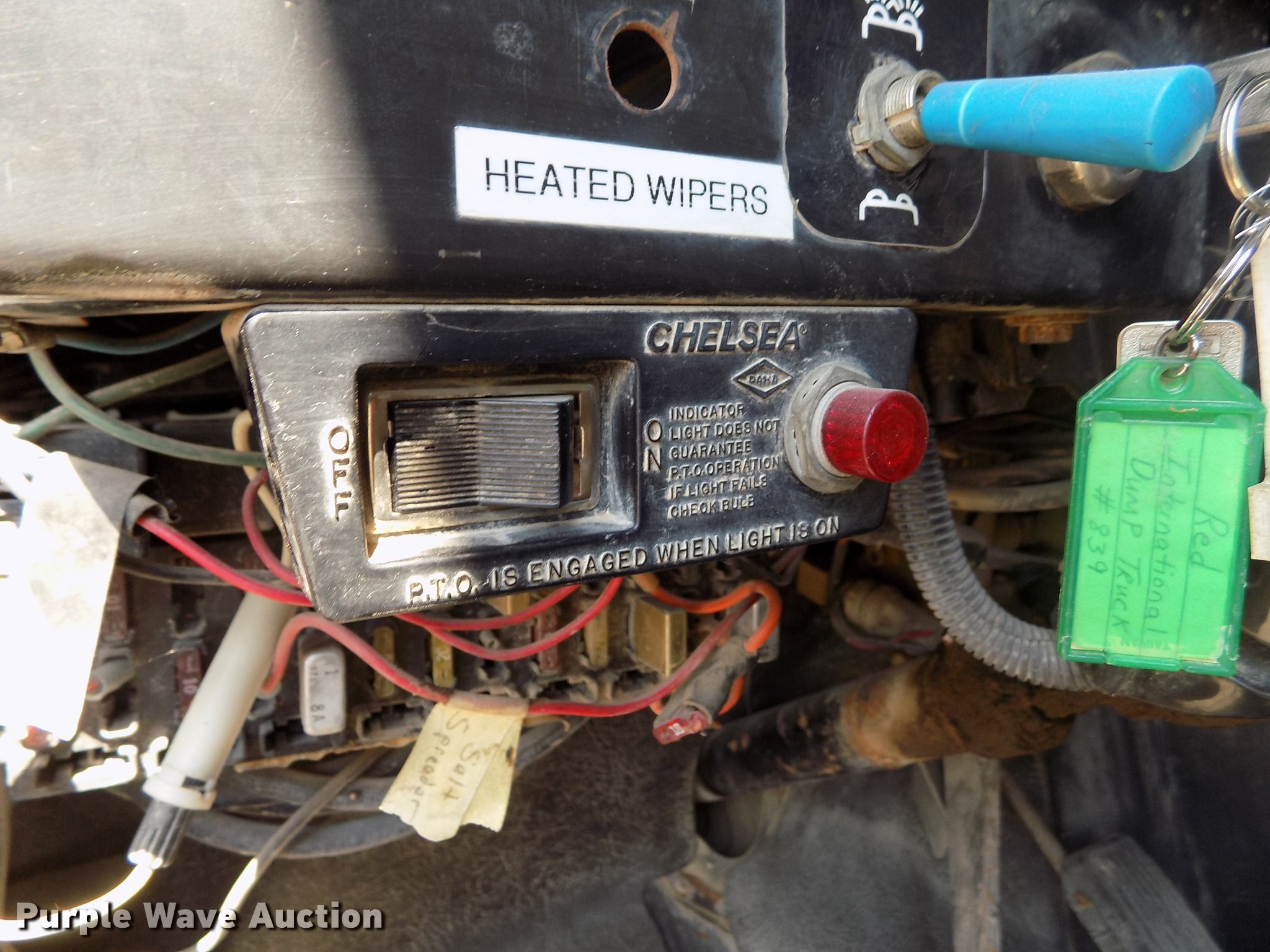 Purple Wave is selling a used Construction Dump Truck in Kansas. This item is a 1992 International 4700 dump truck with the following: 117,101 miles on odometer, International DTA360 5.9L L6 turbo diesel engine, Allison MT650 automatic transmission, Single axle, Heat, AM/FM, Spreader controls, Plow remote control, Chelsea PTO, Mabar steel dump bed, 10'L x 96"W, 34" side height, Manual end gate, Unattached, in bed,, Meyers 10'W plow, Henderson spreader, Five yd. capacity, Single fuel tank, Pintle hitch, Trailer wiring, Spring suspension, Air brakes, 152" wheelbase, 10.00R20 tires, GVWR 36,000 lbs