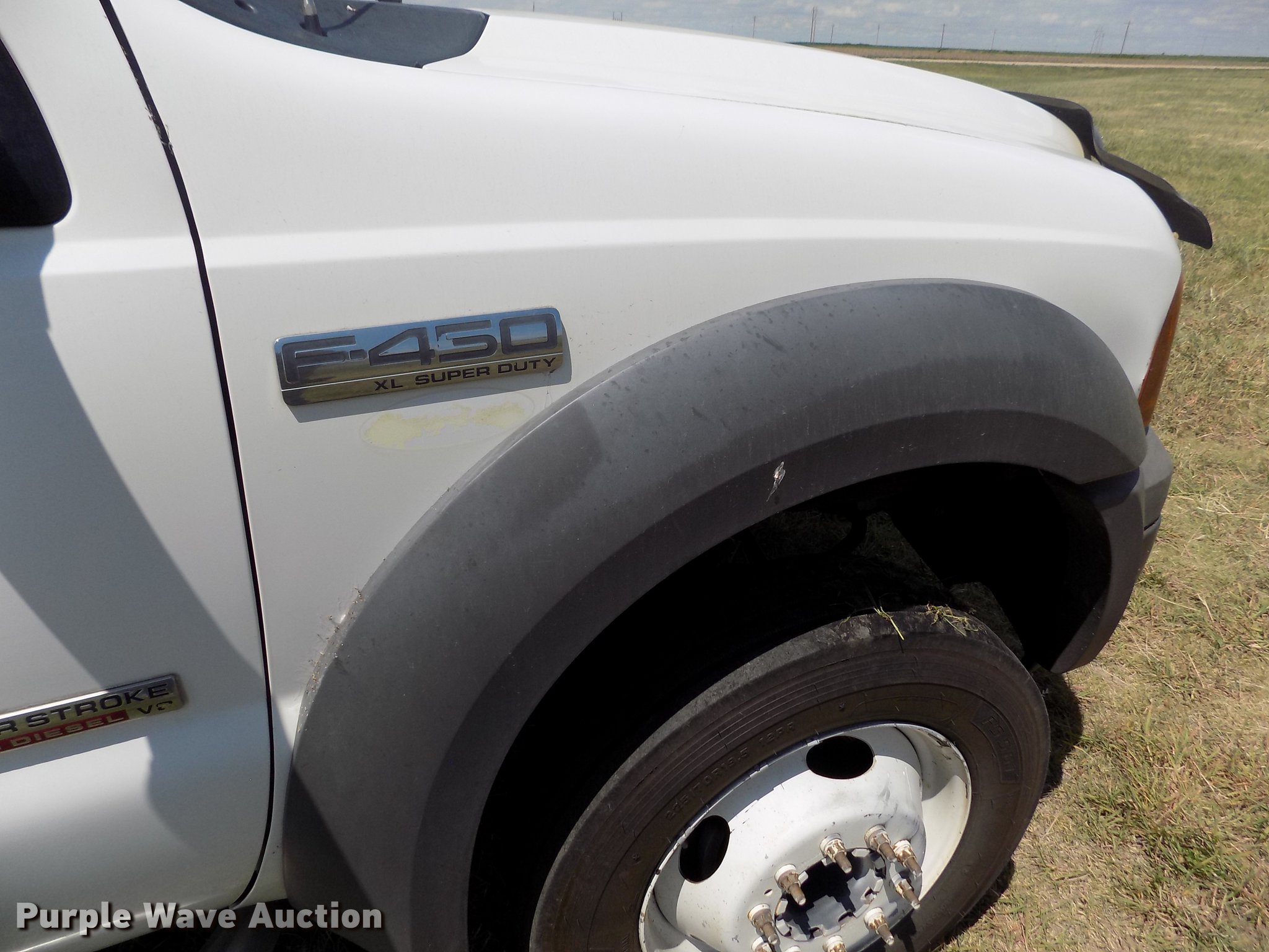 Purple Wave is selling a used Truck Chassis in Kansas. This item is a 2005 Ford F450 Super Duty truck cab and chassis with the following: 91,769 miles on odometer, 6.0L V8 OHV 32V turbo diesel engine, Automatic transmission, Single axle, AC and heat, AM/FM, Auxiliary controls, Trailer brake controller, Chelsea PTO, Block heater, Running boards, Front tow hooks, Single fuel tank, Single exhaust stack, Spring suspension, Hydraulic brakes, 225/70R19.5 tires, Windshield cracked, Turbo needs cleaned