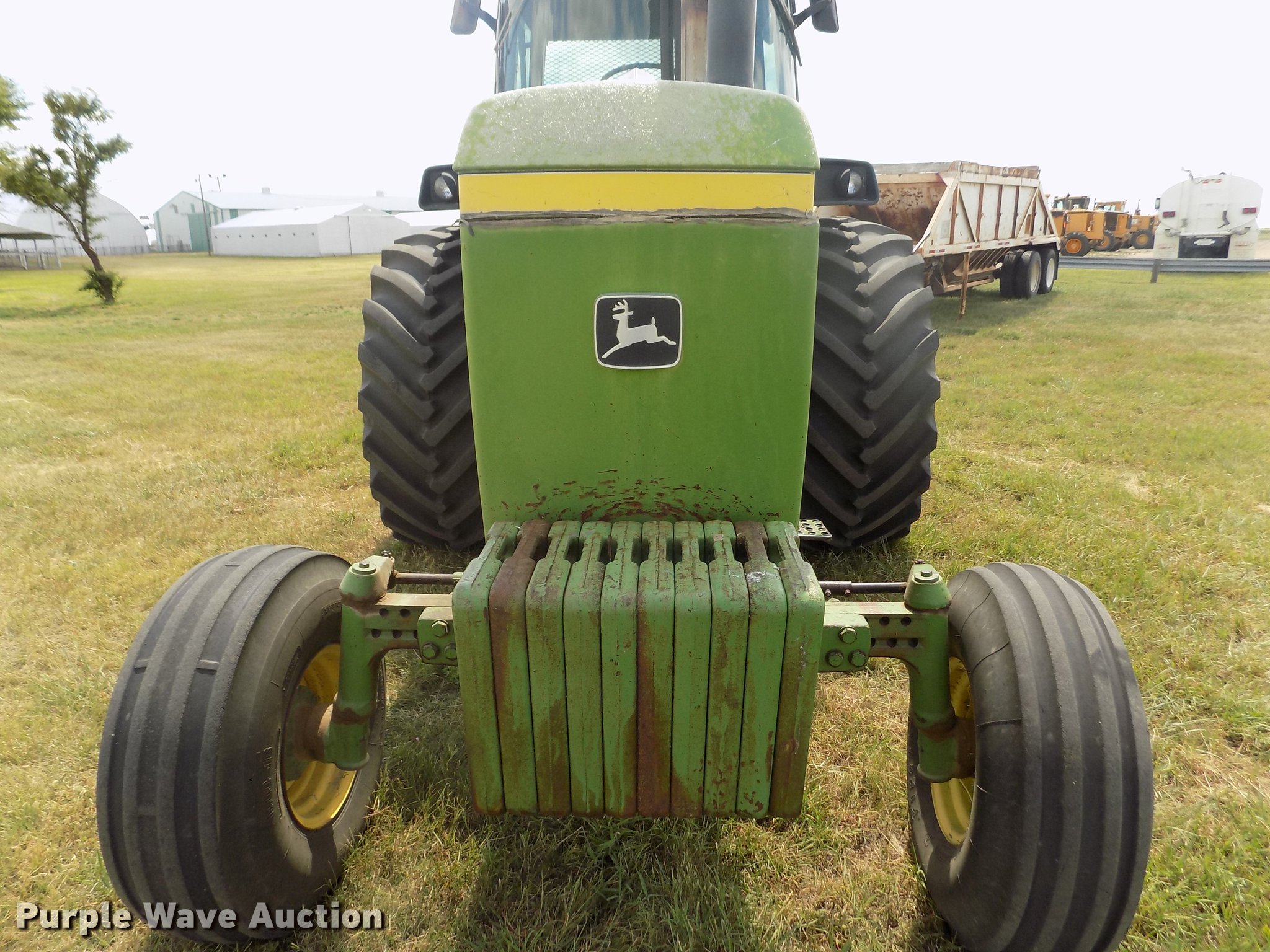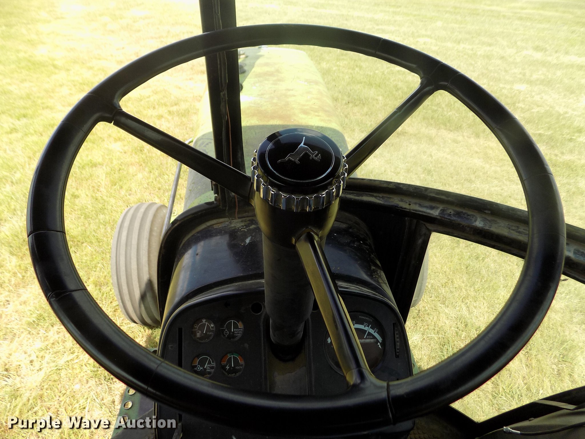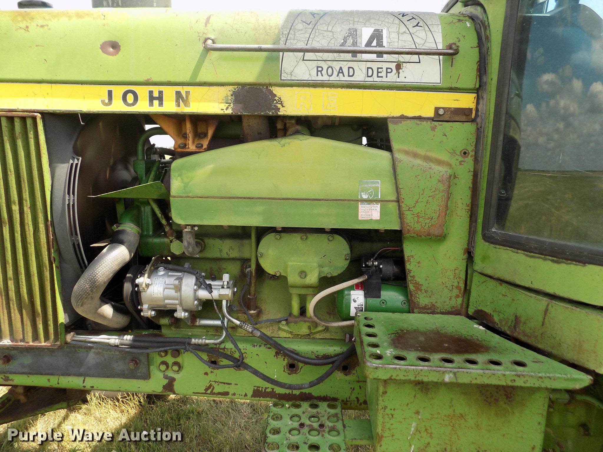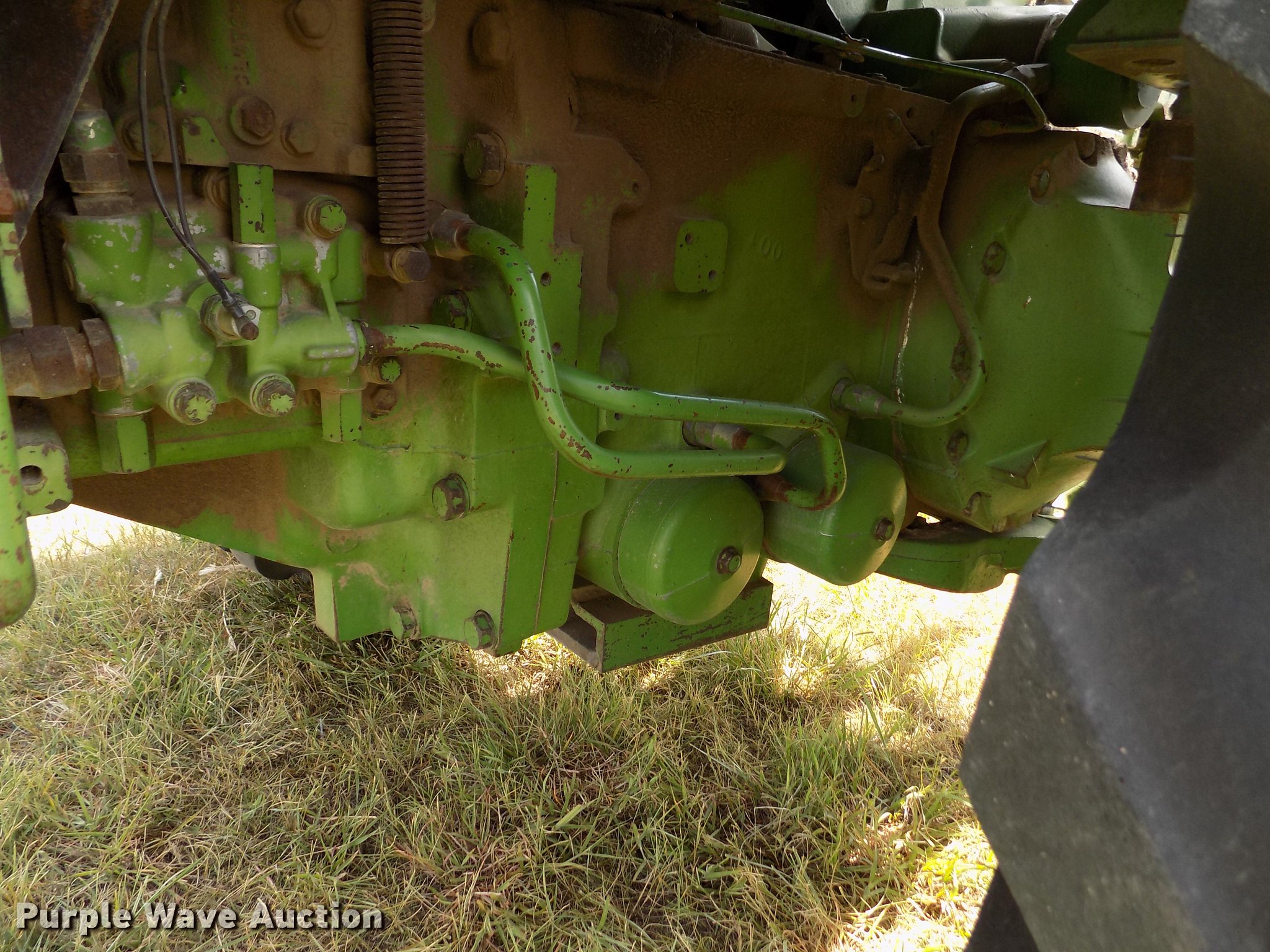 Purple Wave is selling a used Tractor in Kansas. This item is a 1973 John Deere 4630 tractor with the following: 2,906 hours on meter, John Deere 6.6L six cylinder turbo diesel engine, 150 HP, Powershift transmission, 8F-4R gears, Differential lock, AC and heat, AM/FM, Spring suspension seat, Tilt steering wheel, Rear window guard, Three point, 1000 PTO, (2) rear hydraulic remote sets, (10) suitcase weights, 112" wheelbase, 11.00-16 front tires, 30.5L-32 rear tires, Hour meter replaced, Serial 004340R