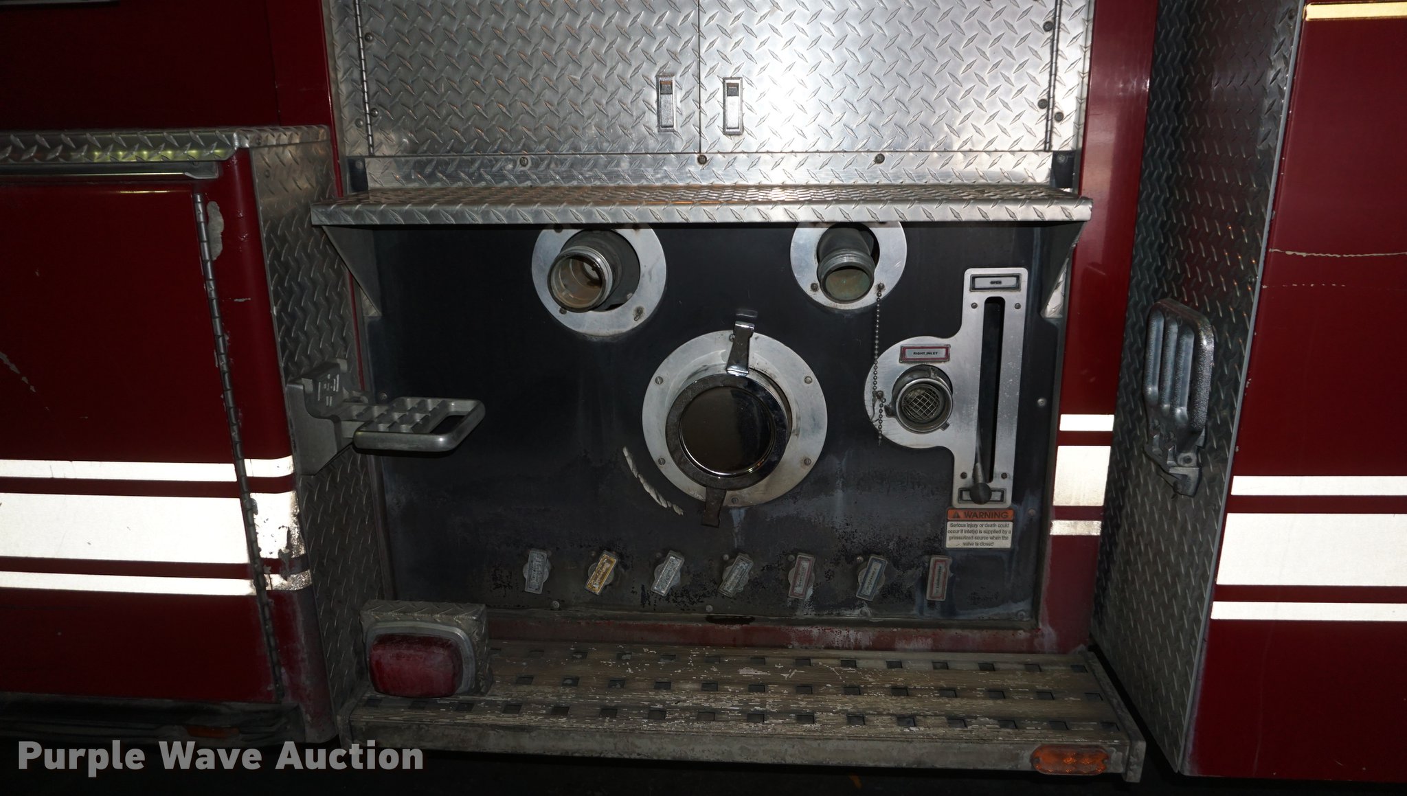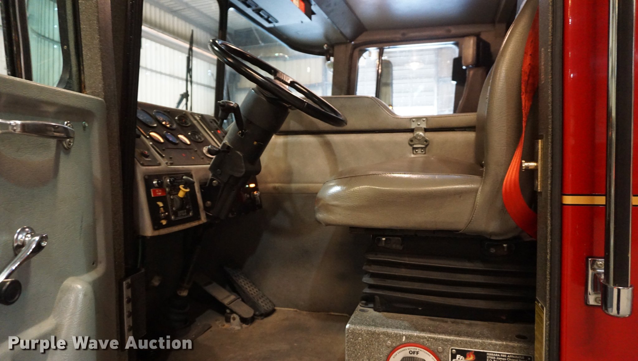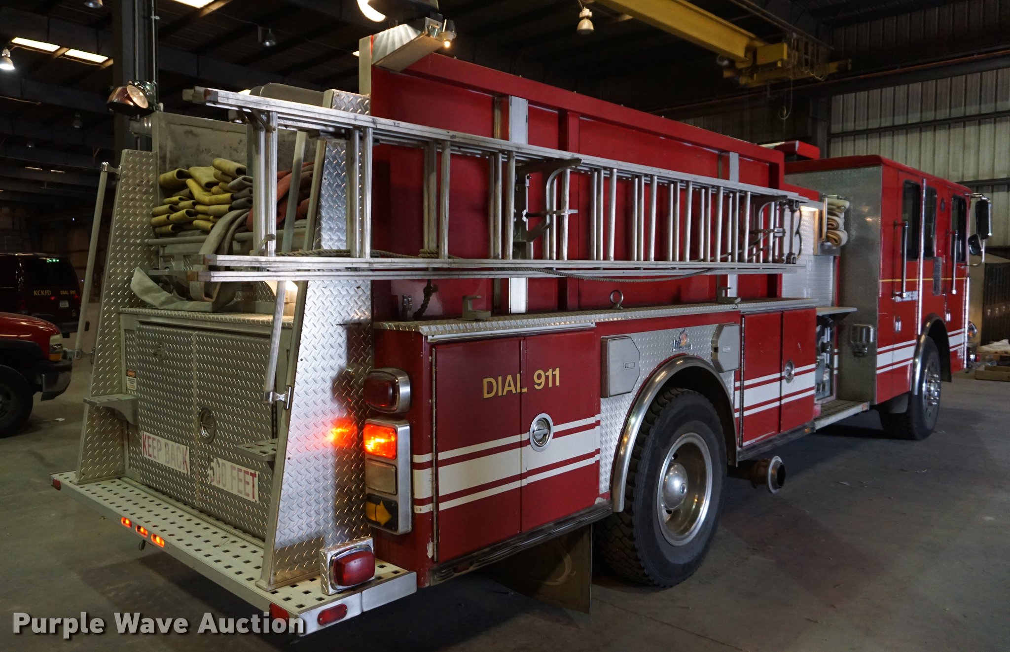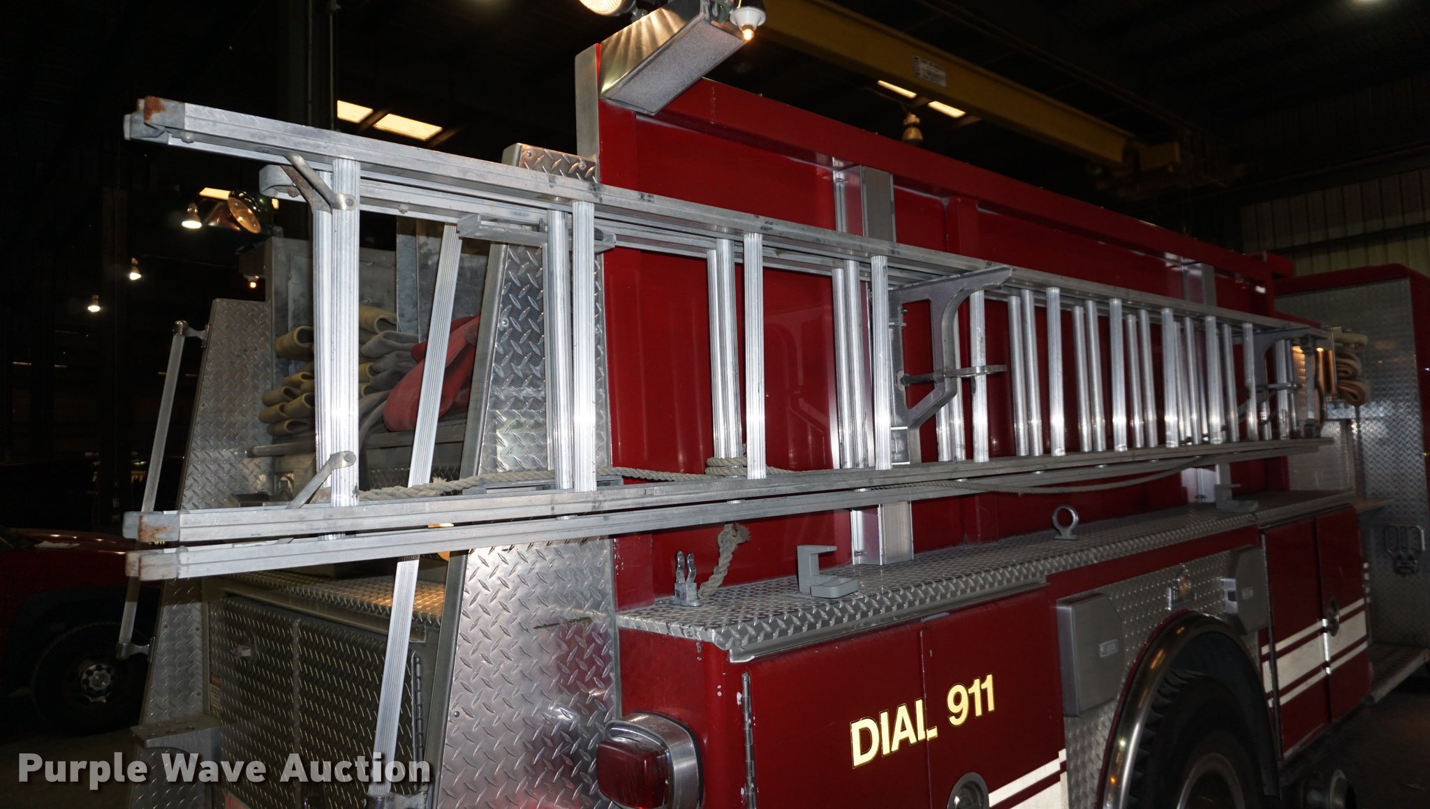 Purple Wave is selling a used Fire Truck or Emergency Vehicle in Kansas. This item is a 2001 HME pumper fire truck with the following: 85 hours on meter, Odometer display inoperable, Detroit Diesel Series 60 12.7L six cylinder turbo diesel engine, 400 HP, Allison automatic transmission, Single axle, AC and heat, Air suspension seat, PTO, 500 gallon tank, Hale OSC pump, 1,250 gpm, Hose, Ladder, Air brakes, 385/65R22.5 front tires, 11R22.5 rear tires, Unit# P92