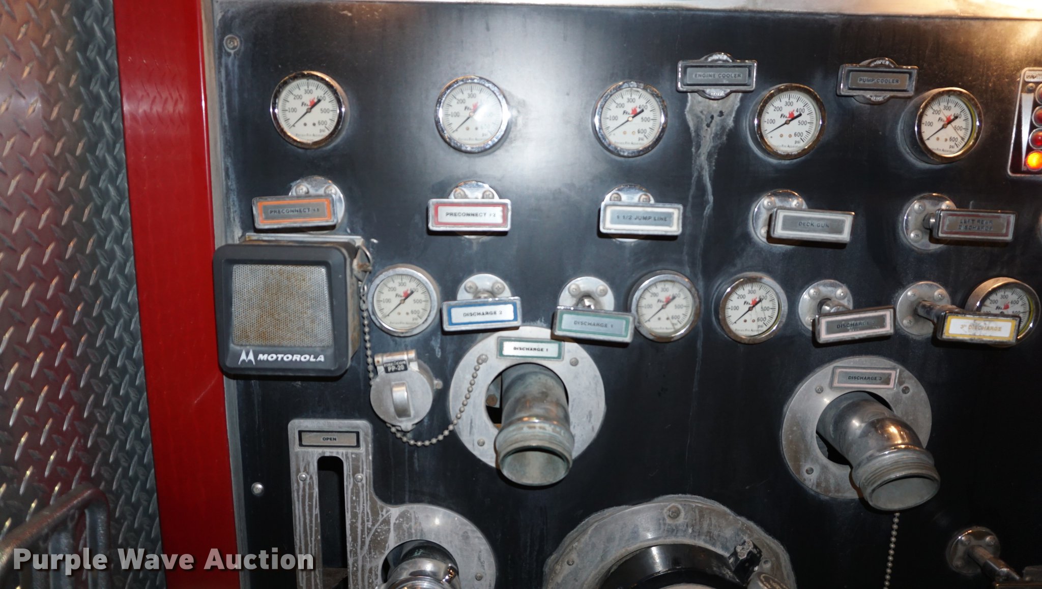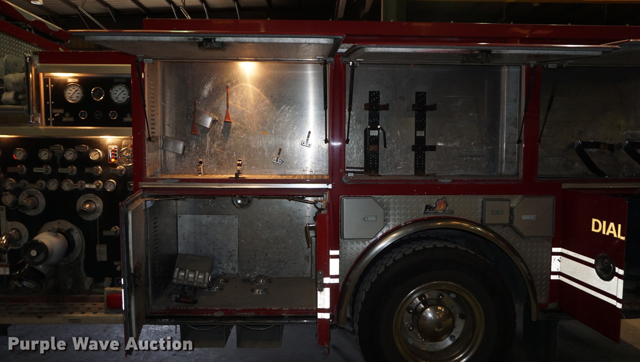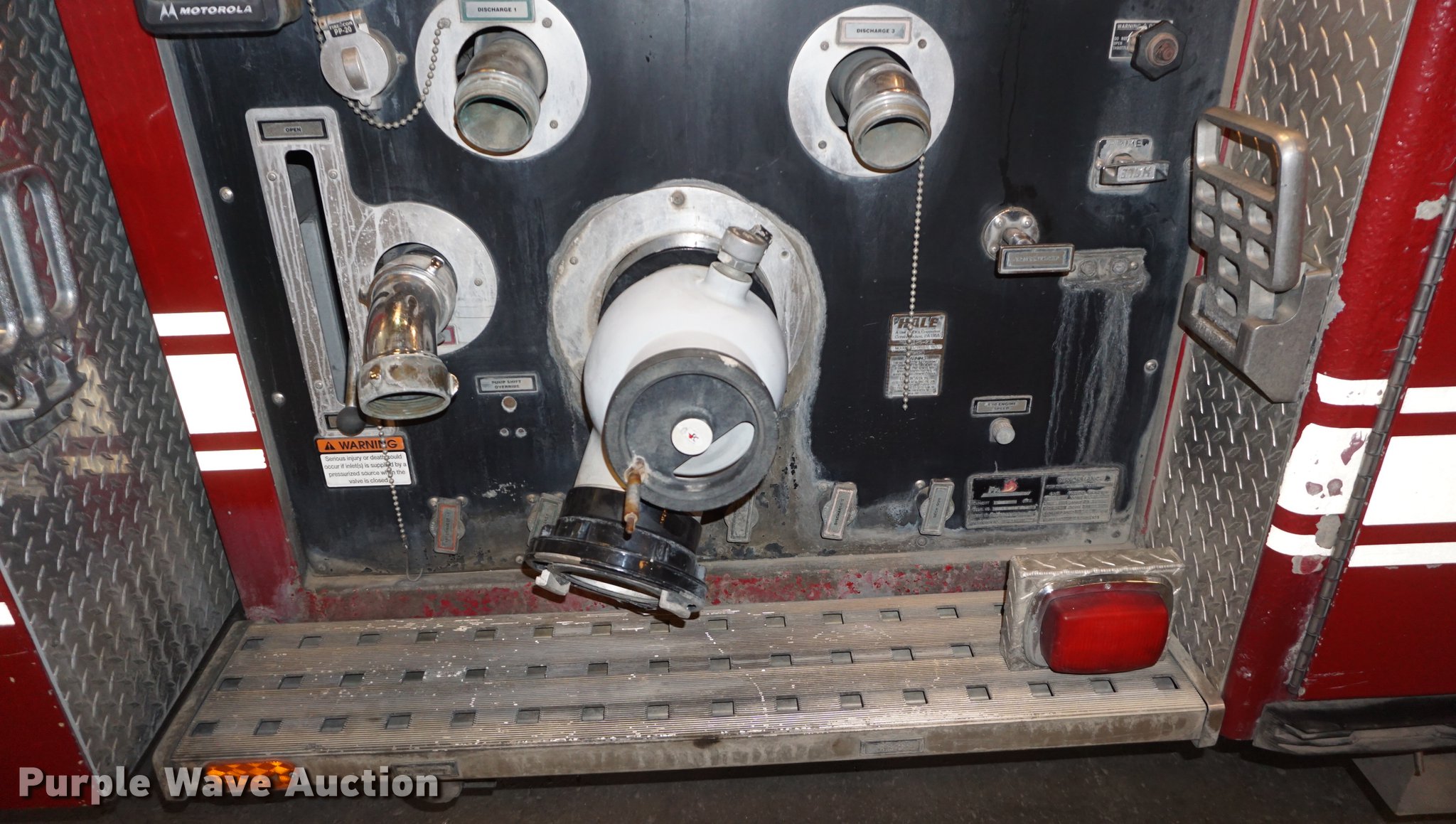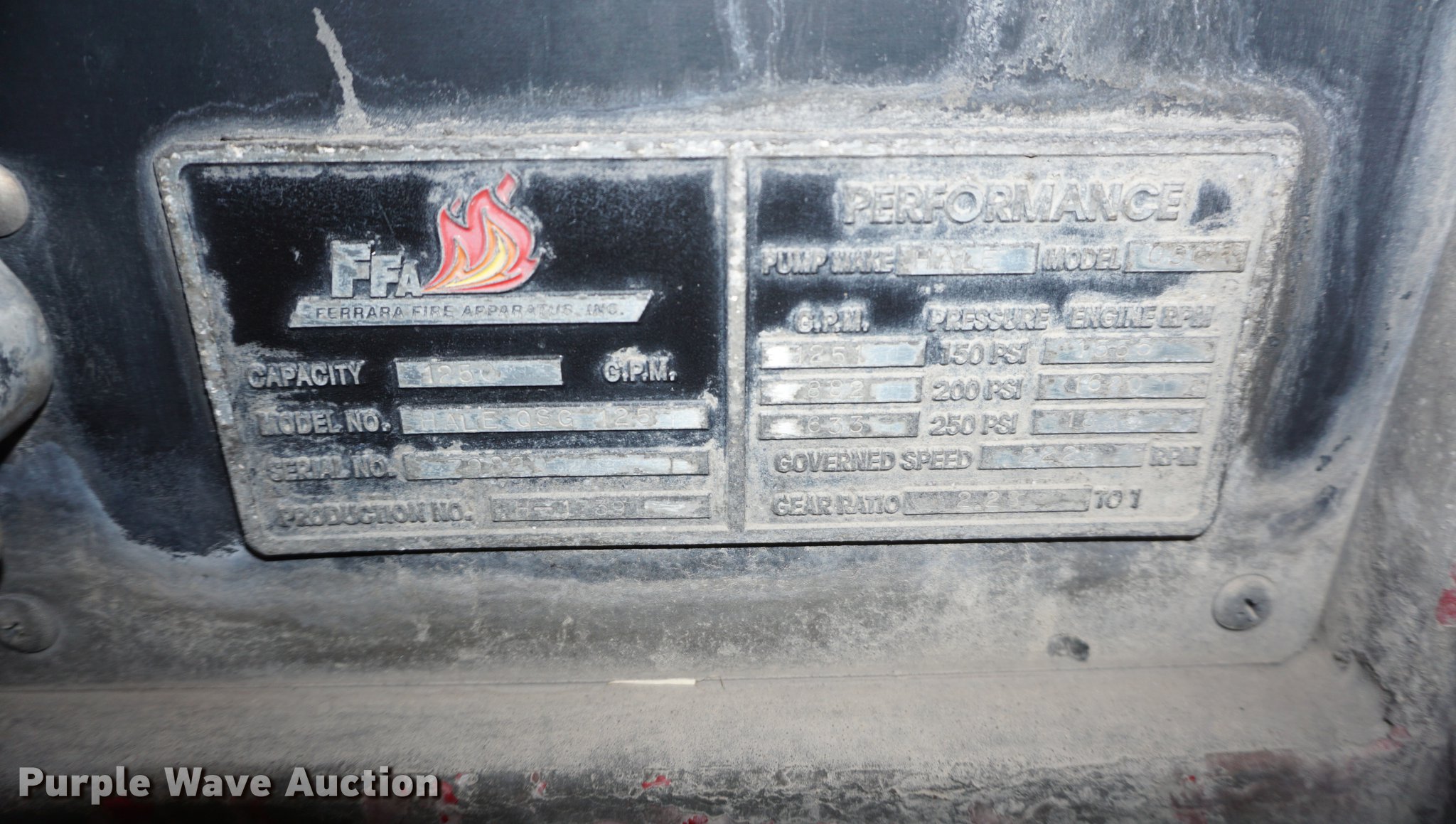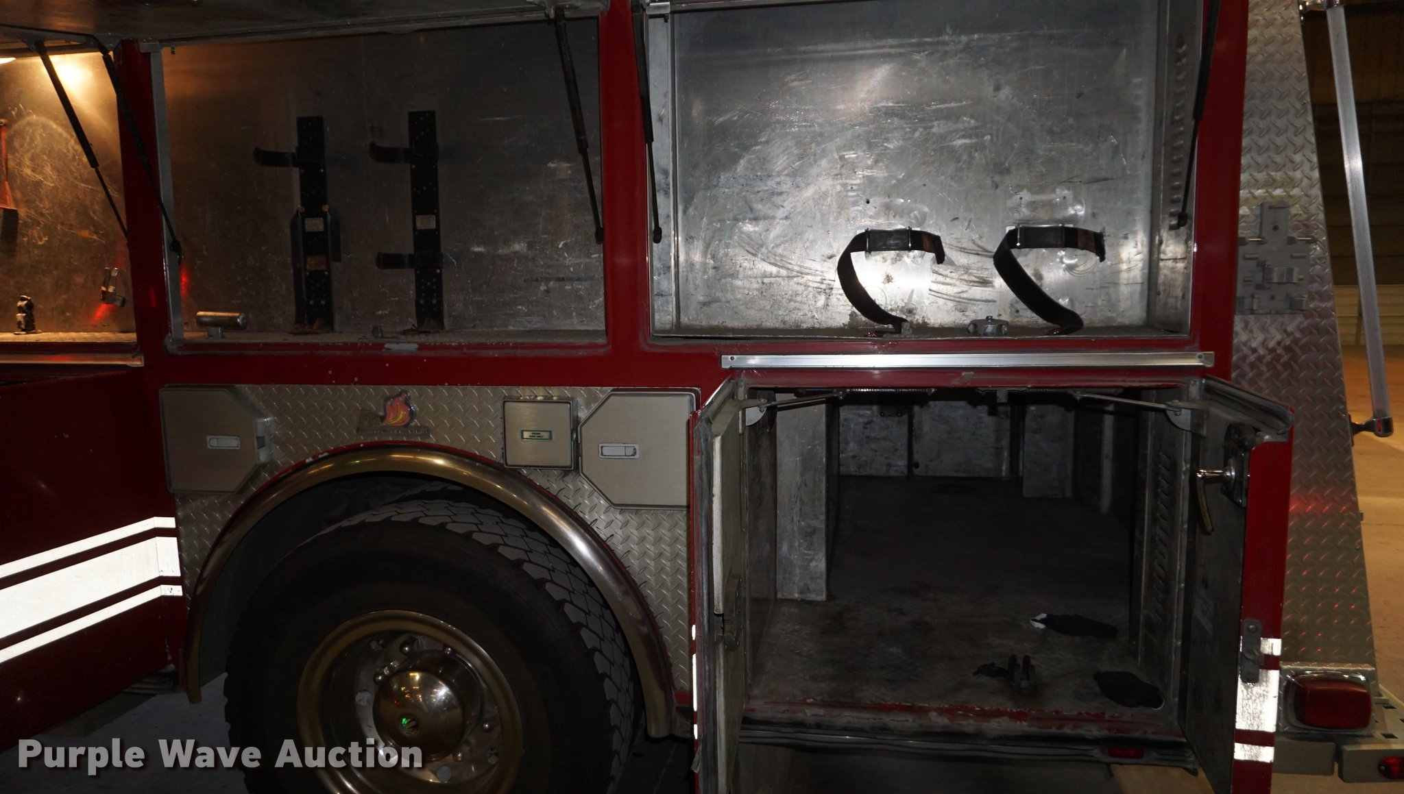 Purple Wave is selling a used Fire Truck or Emergency Vehicle in Kansas. This item is a 2001 HME pumper fire truck with the following: 85 hours on meter, Odometer display inoperable, Detroit Diesel Series 60 12.7L six cylinder turbo diesel engine, 400 HP, Allison automatic transmission, Single axle, AC and heat, Air suspension seat, PTO, 500 gallon tank, Hale OSC pump, 1,250 gpm, Hose, Ladder, Air brakes, 385/65R22.5 front tires, 11R22.5 rear tires, Unit# P92