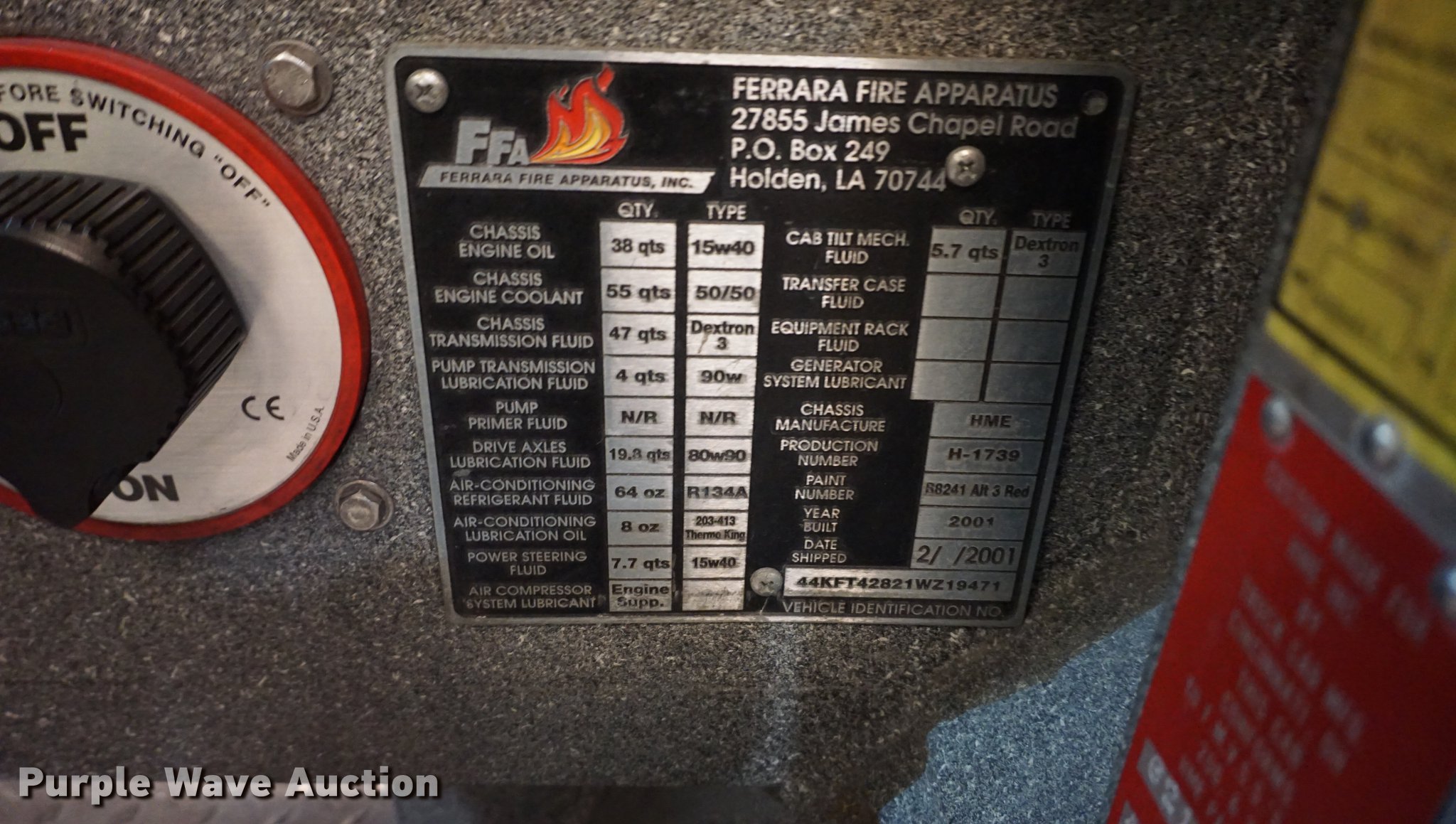 This 2001 HME pumper fire truck will sell to the highest bidder regardless of price.