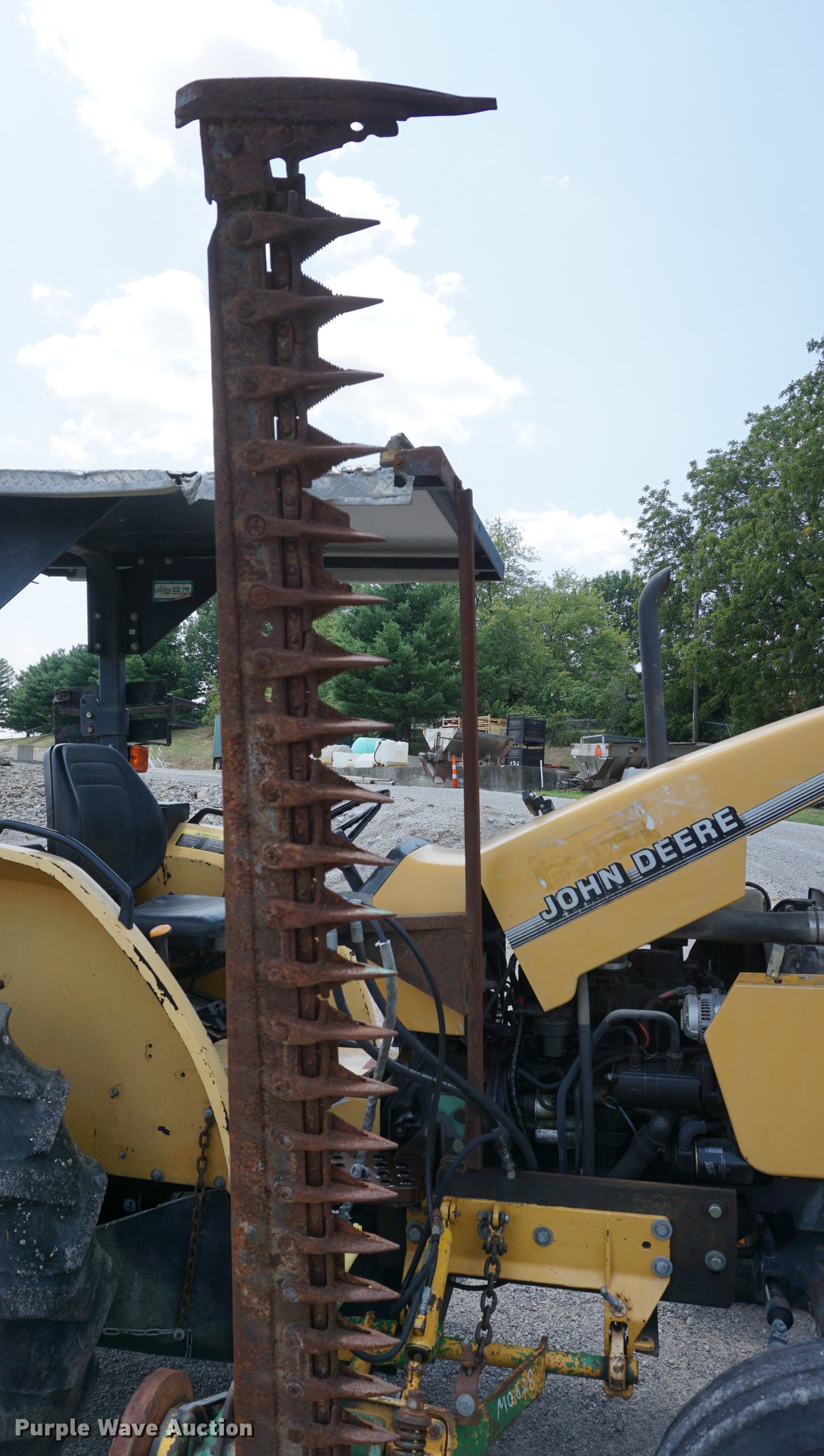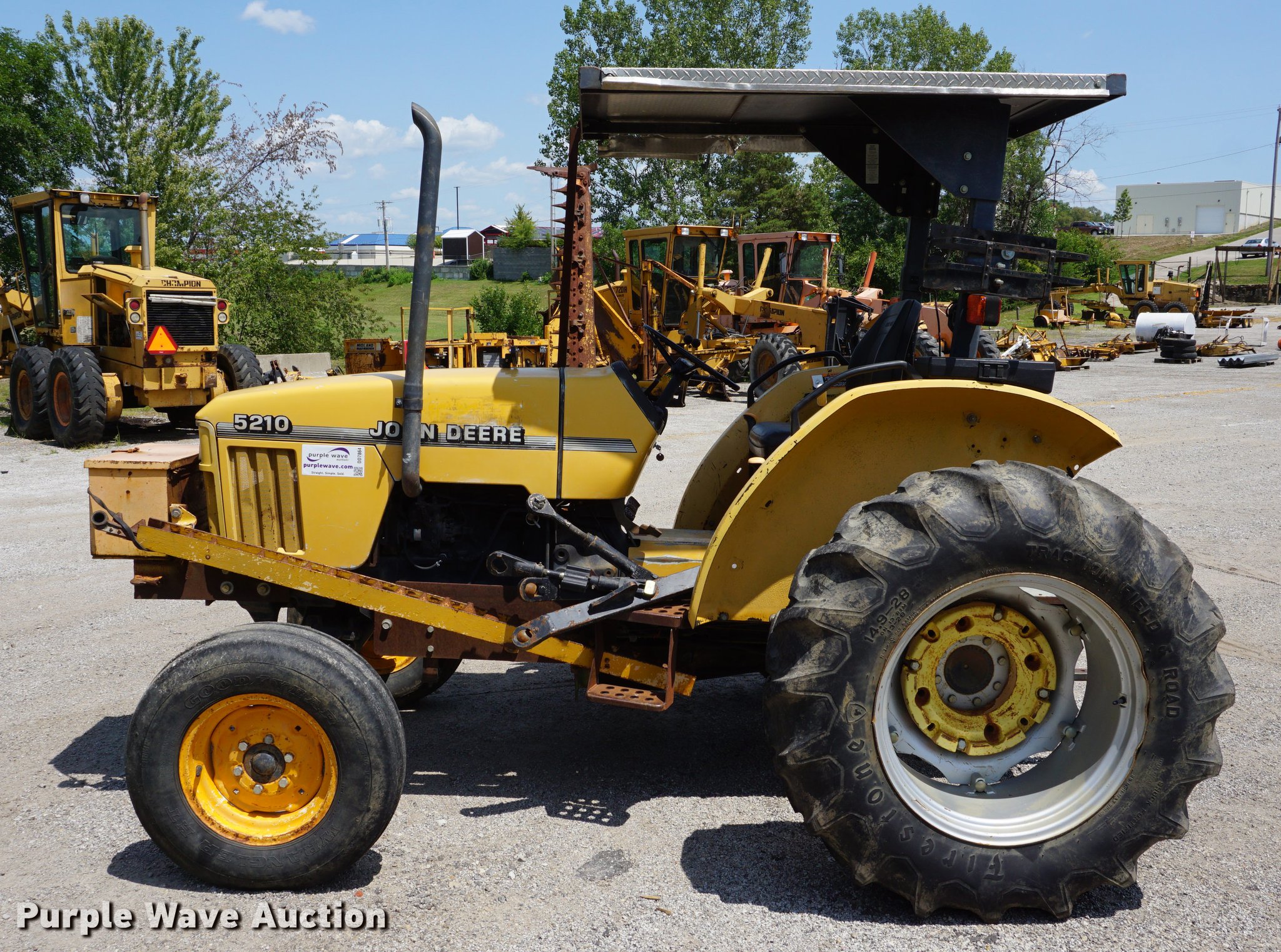 Purple Wave is selling a used Tractor in Missouri. This item is a 1999 John Deere 5210 tractor with the following: 2,755 hours on meter, John Deere 3029D 2.9L three cylinder diesel engine, 53 HP, Manual transmission, 9F-3R gears, Canopy, Suspension seat, Three point, 540 PTO, Rear hydraulic remote set, 6'W sickle mower, 215/85R16 front tires, 14.9-28 rear tires, Fuel leak by filter, Serial LV5210S222891
