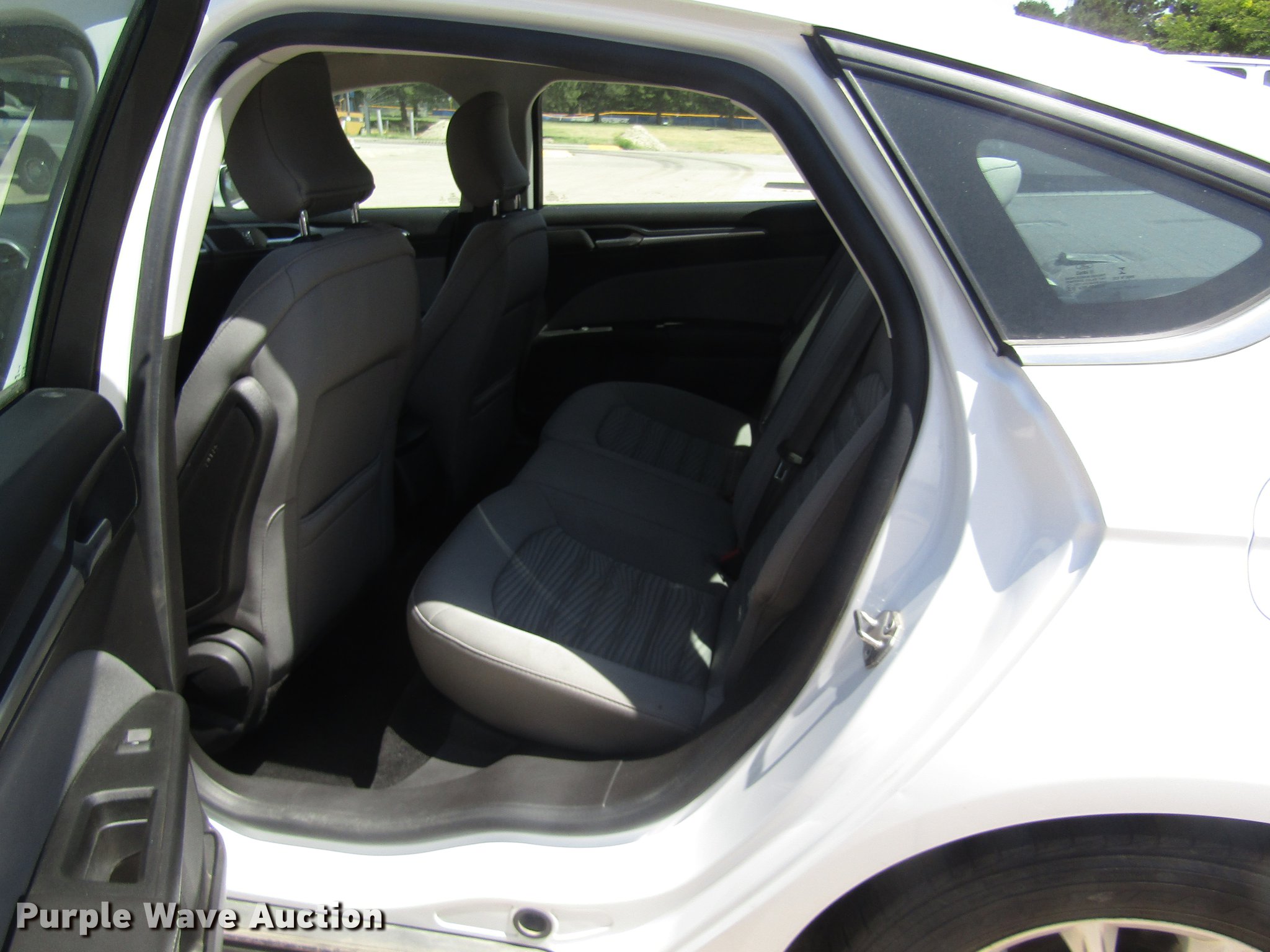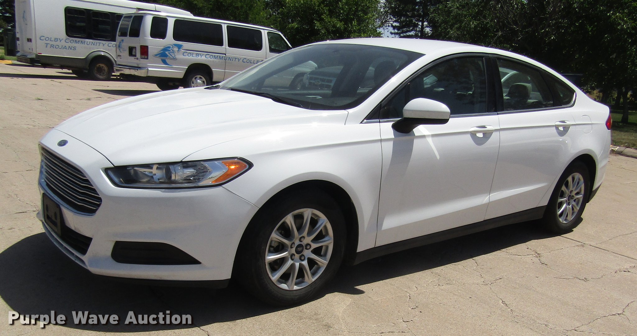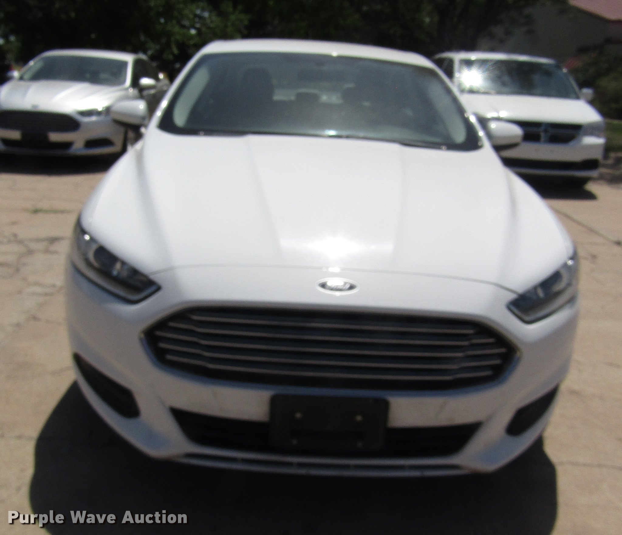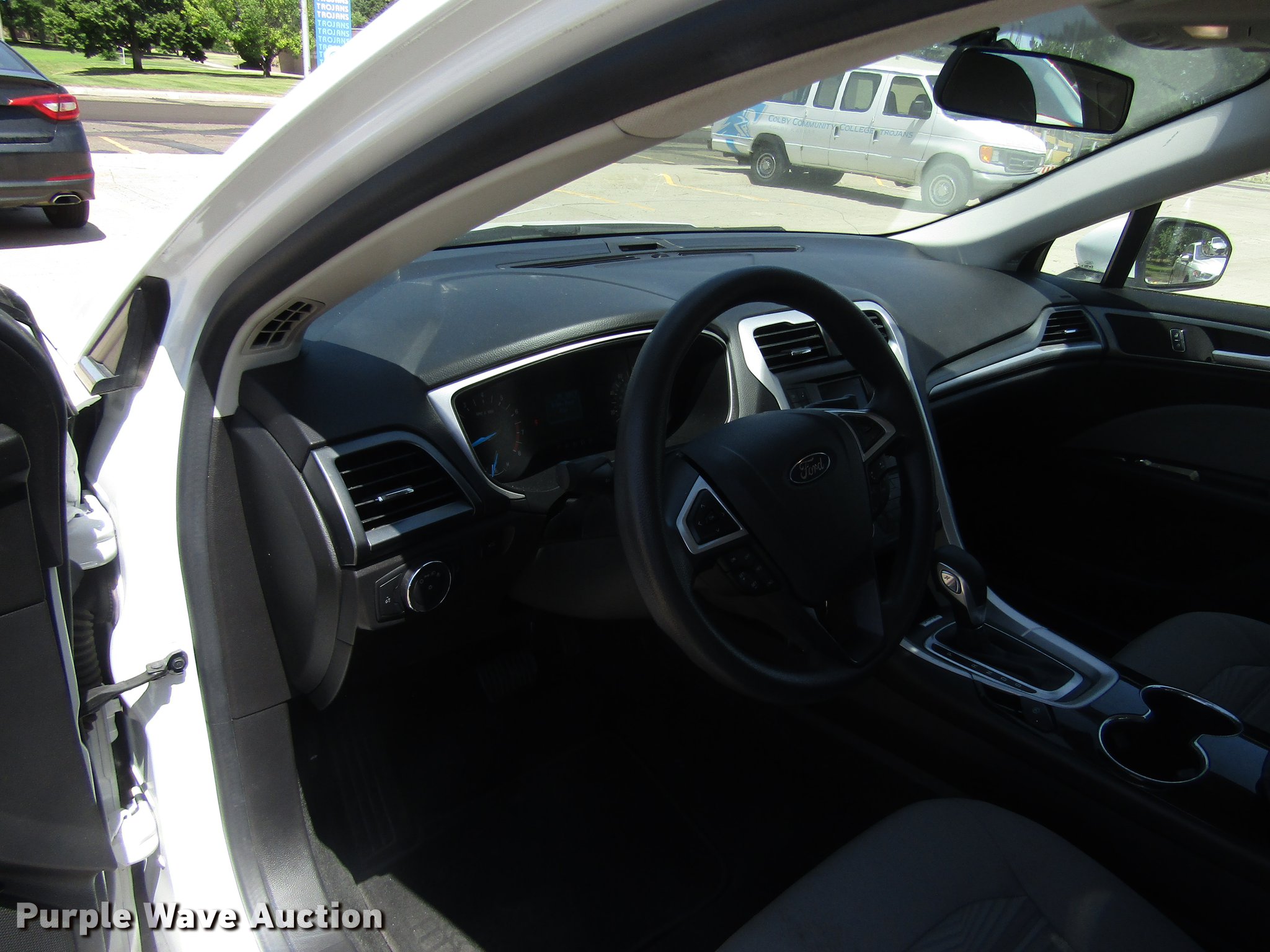 Purple Wave is selling a used Passenger Vehicle in Kansas. This item is a 2016 Ford Fusion with the following: 128,967 miles on odometer, 2.5L L4 DOHC 16V gas engine, Automatic transmission, AC and heat, Tilt, Cruise, AM/FM/CD, Power windows, locks, and mirrors, Cloth interior, P215/60R16 tires, Cracked windshield