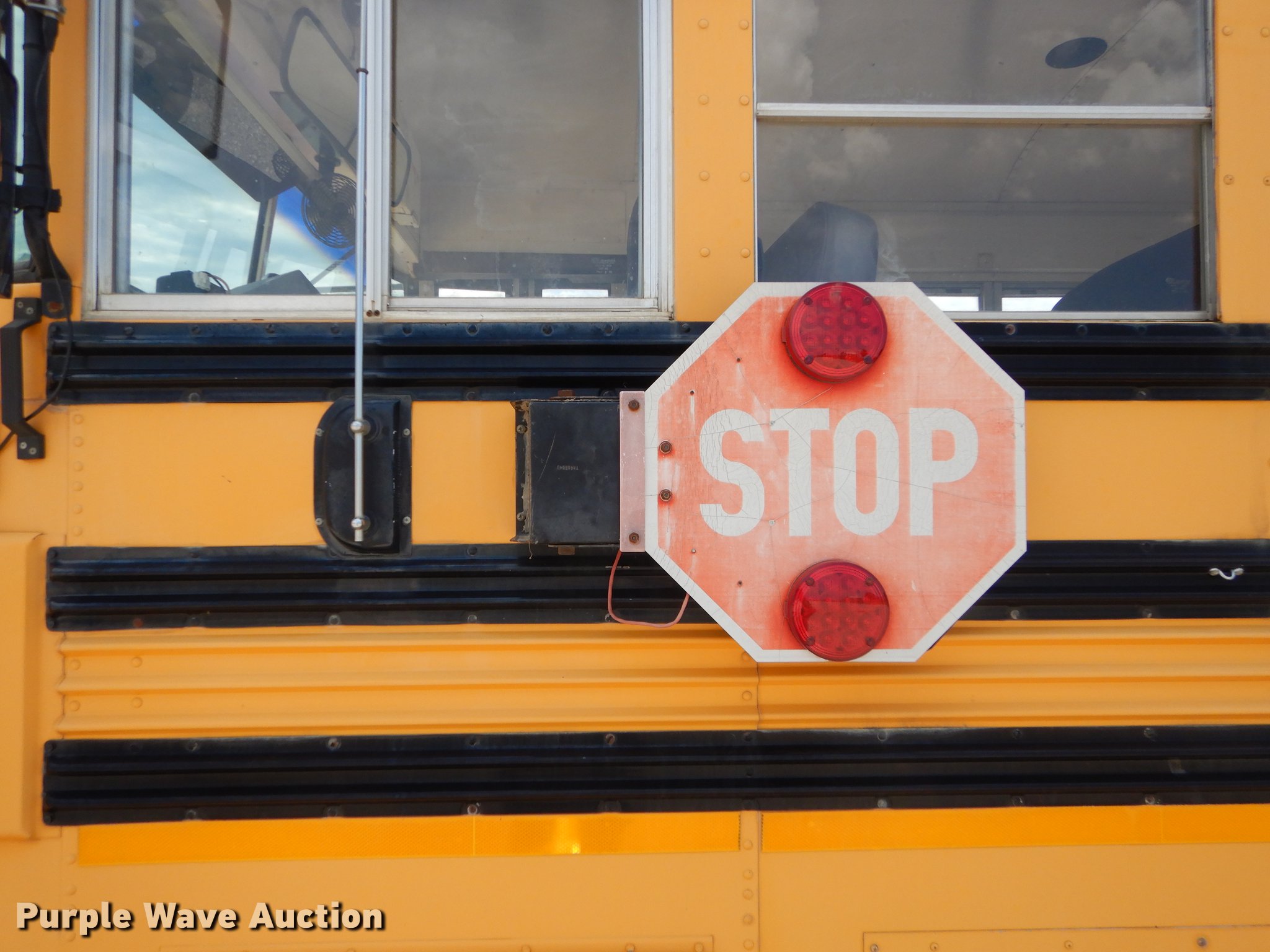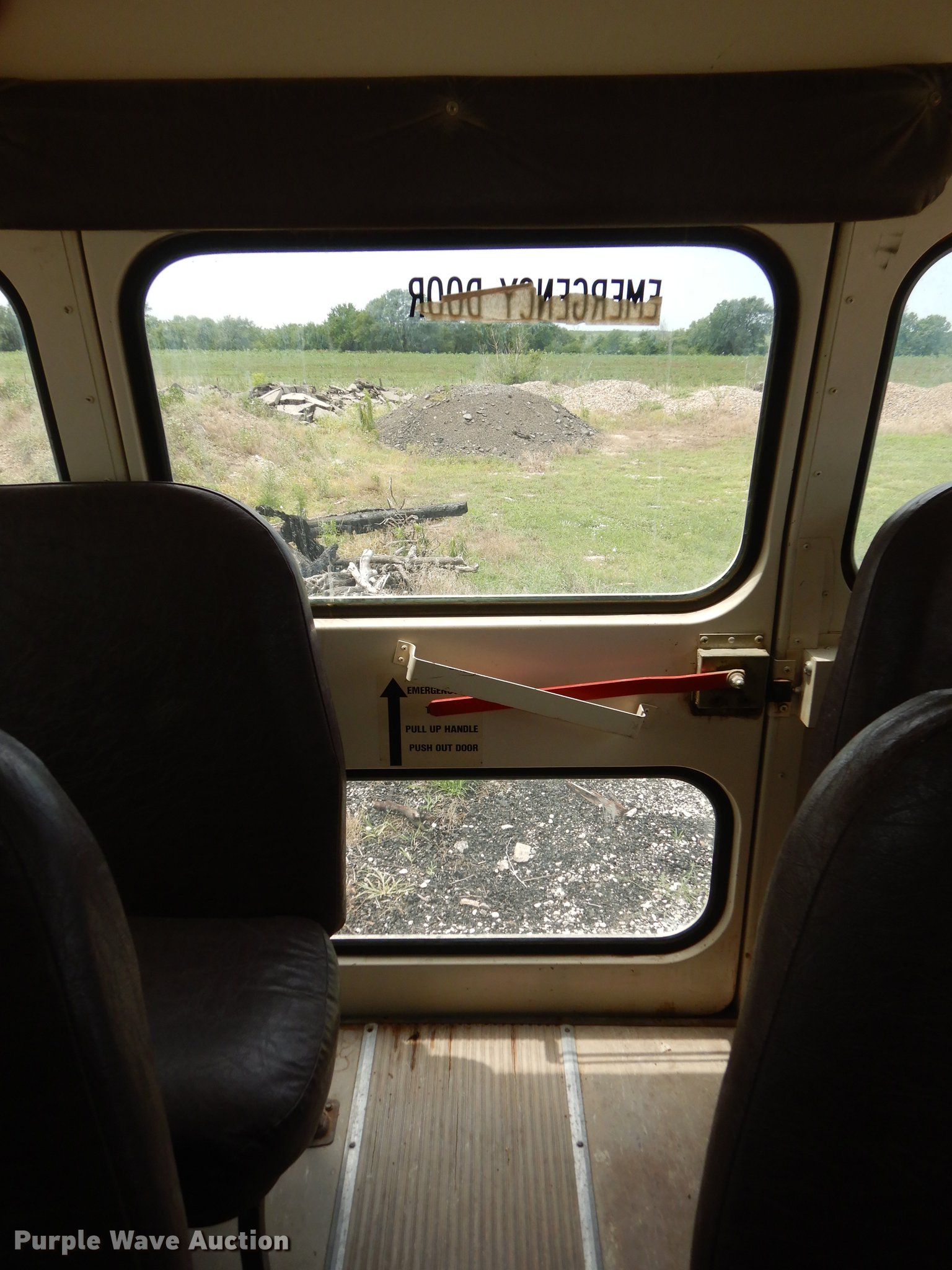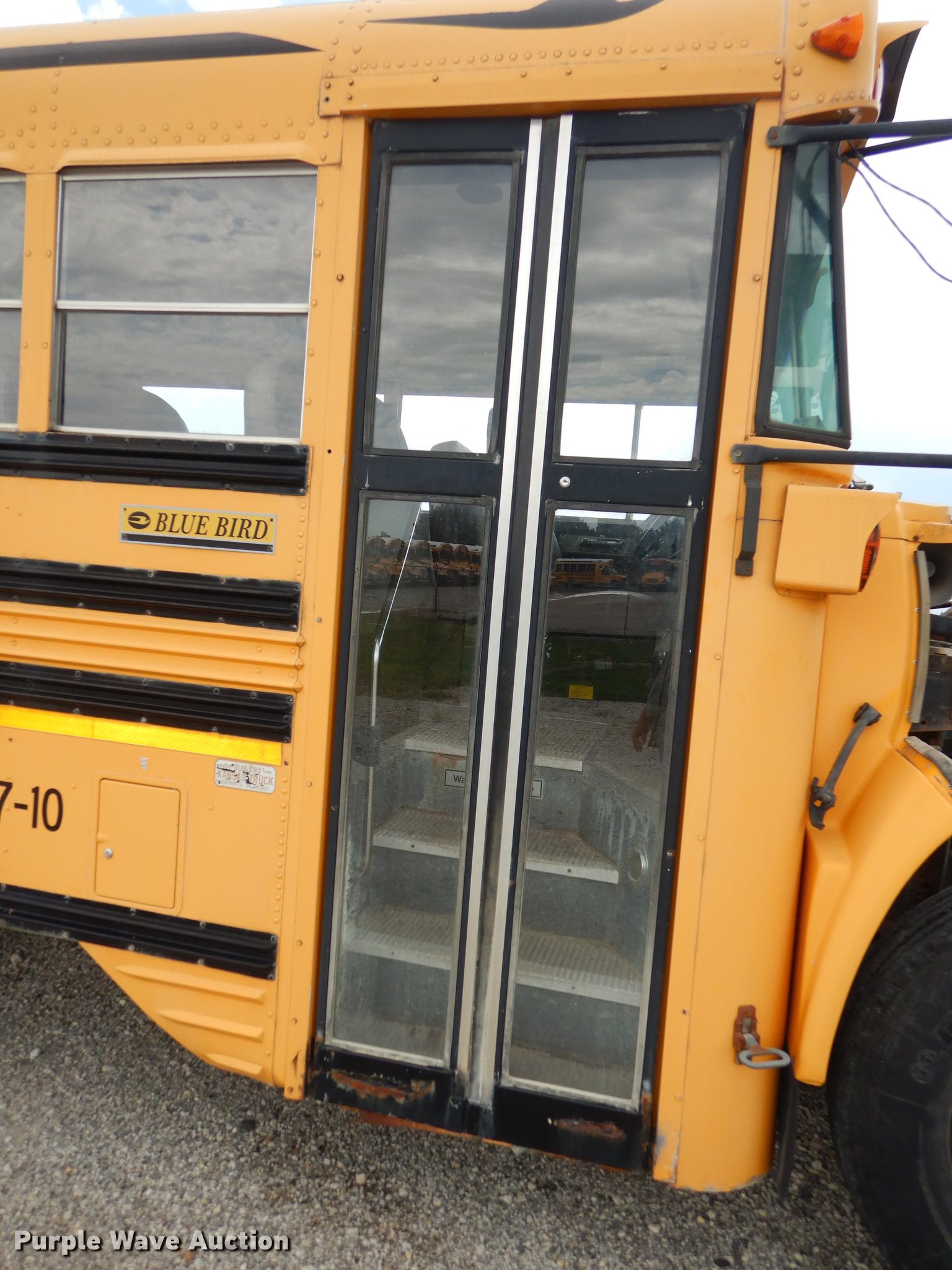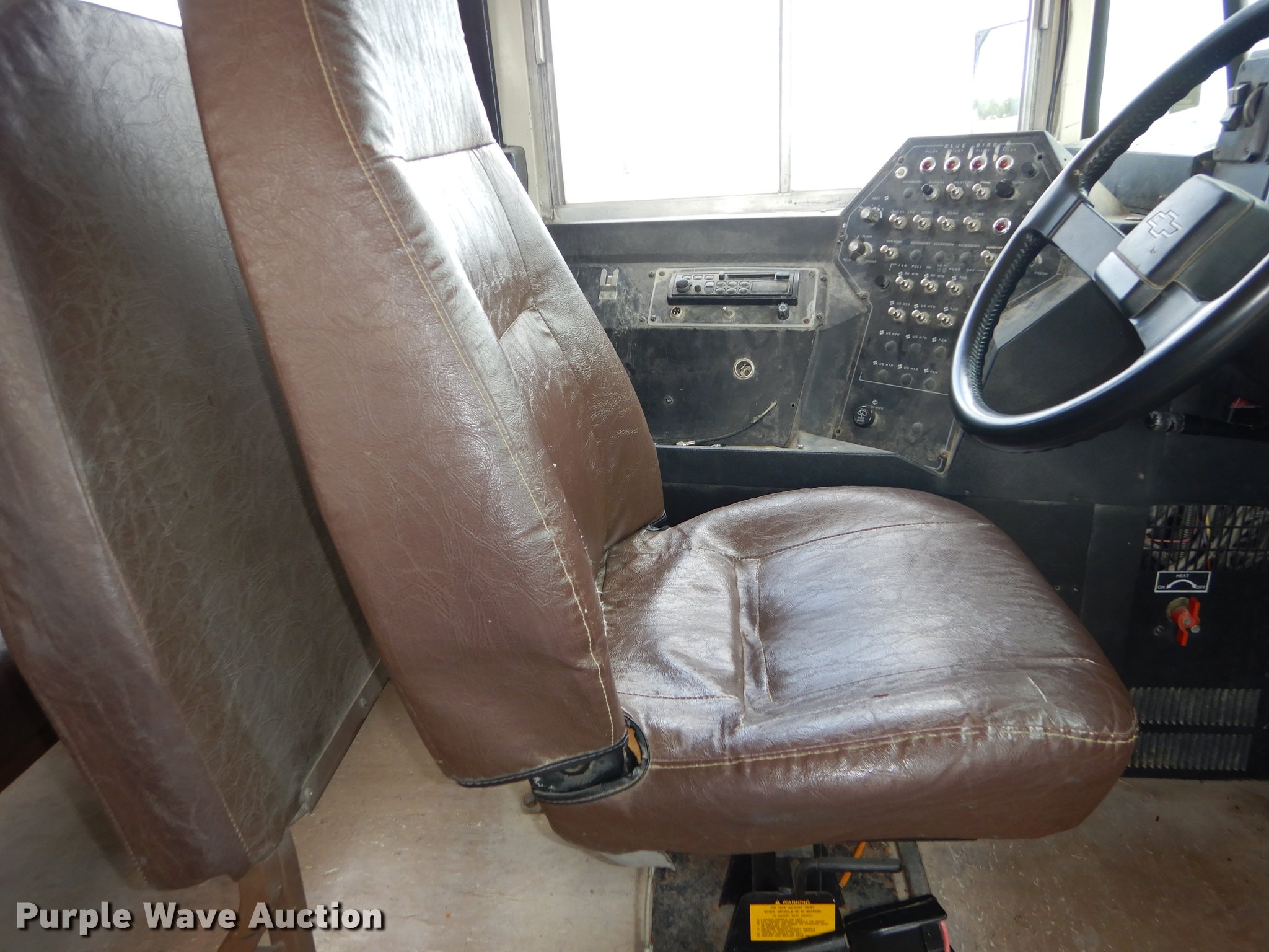 Purple Wave is selling a used Bus in Kansas. This item is a 1997 Chevrolet Blue Bird school bus with the following: 184,740 miles on odometer, 6.0L V8 gas engine, Automatic transmission, Single axle, Heat, AM/FM/cassette, Heated mirrors, Vinyl interior, 71 passenger capacity, Ceiling, rear, and side emergency exits, Lighted stop sign, Crossing arm, Hi-idle switch, Backup alarm, Underside luggage storage, Rear tow hooks, Spring suspension, Hydraulic brakes, 275" wheelbase, Goodyear 10R22.5 tires, GVWR 27,960 lbs, Engine issues, Idles hot, Cam bearing needs to be replaced, Does not maintain oil pressure when hot, Unit# 1997-10