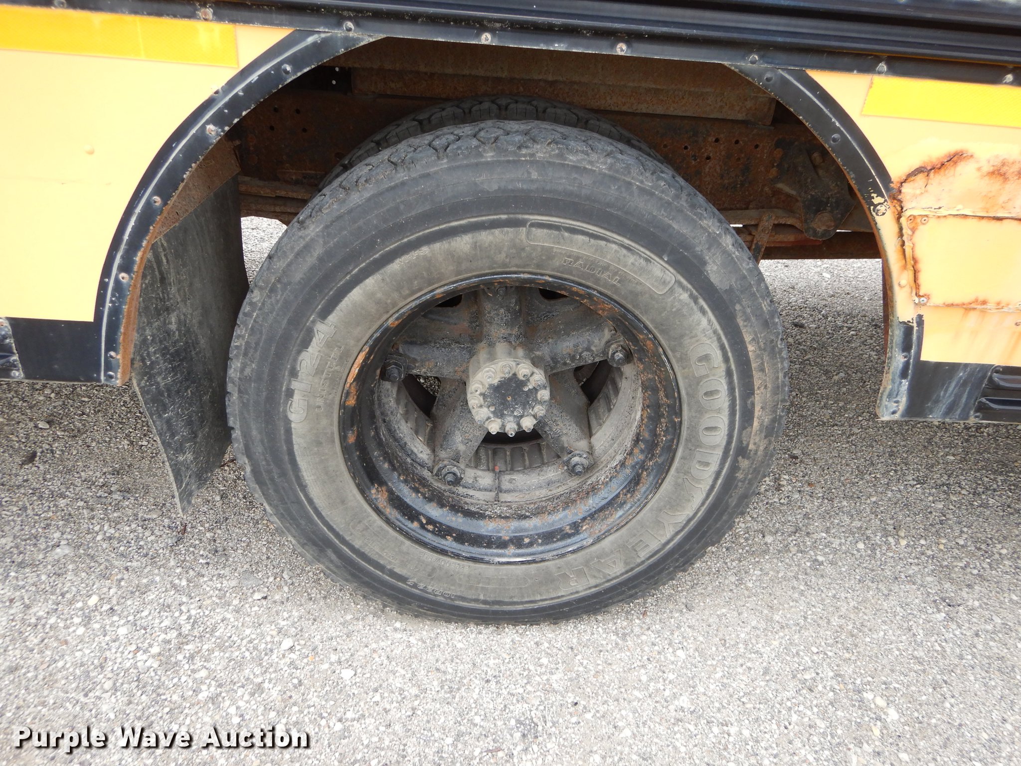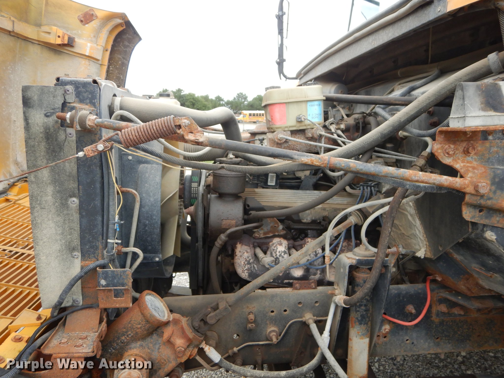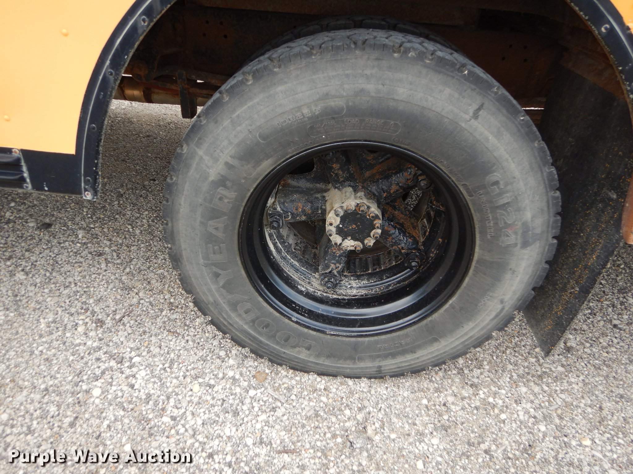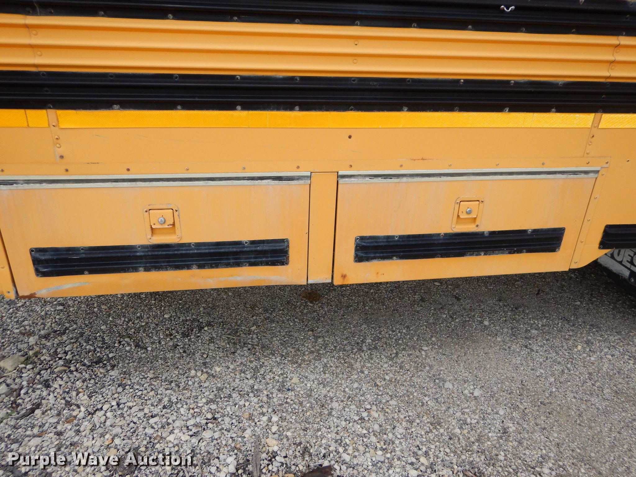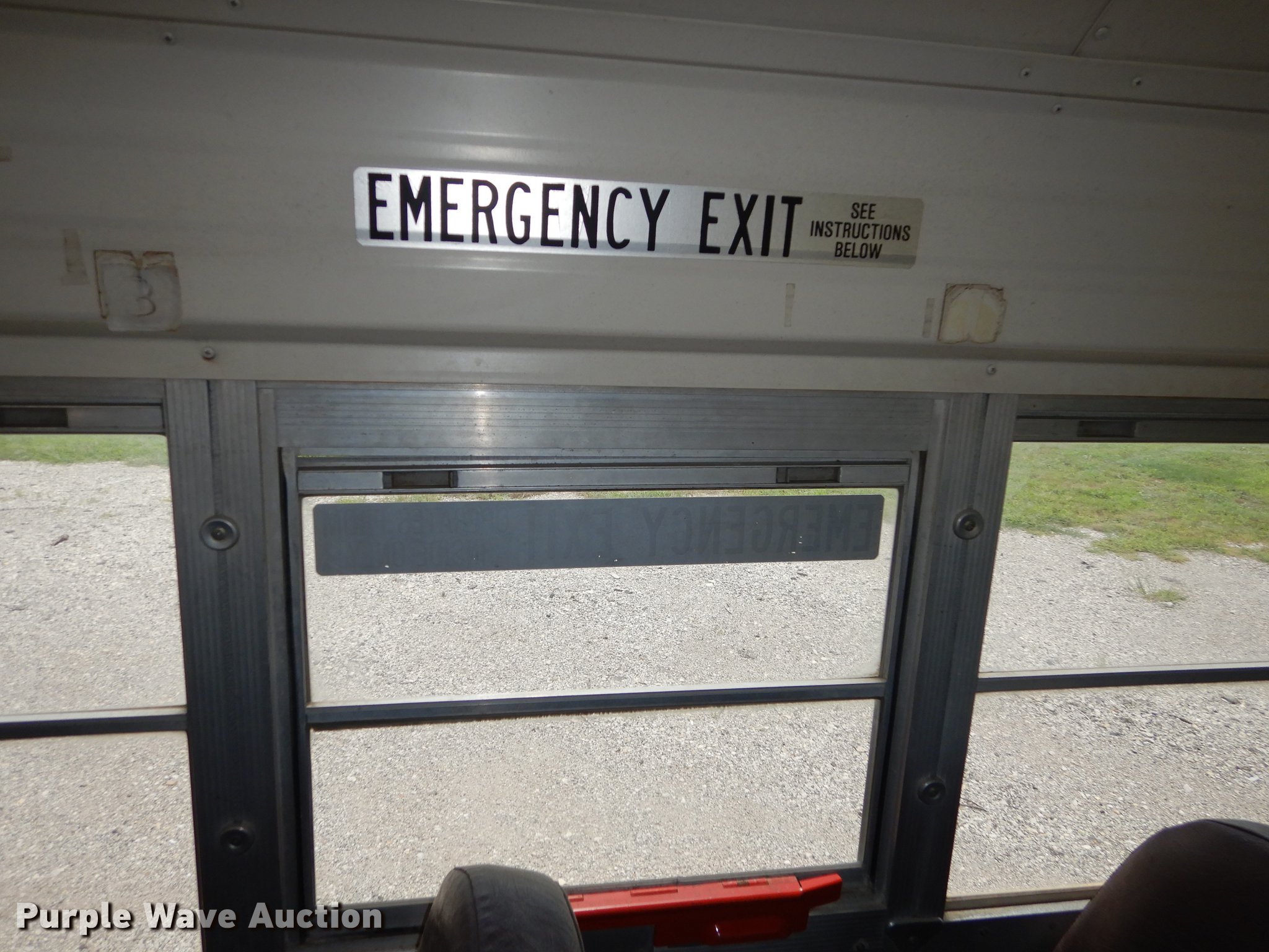 Purple Wave is selling a used Bus in Kansas. This item is a 1997 Chevrolet Blue Bird school bus with the following: 184,740 miles on odometer, 6.0L V8 gas engine, Automatic transmission, Single axle, Heat, AM/FM/cassette, Heated mirrors, Vinyl interior, 71 passenger capacity, Ceiling, rear, and side emergency exits, Lighted stop sign, Crossing arm, Hi-idle switch, Backup alarm, Underside luggage storage, Rear tow hooks, Spring suspension, Hydraulic brakes, 275" wheelbase, Goodyear 10R22.5 tires, GVWR 27,960 lbs, Engine issues, Idles hot, Cam bearing needs to be replaced, Does not maintain oil pressure when hot, Unit# 1997-10