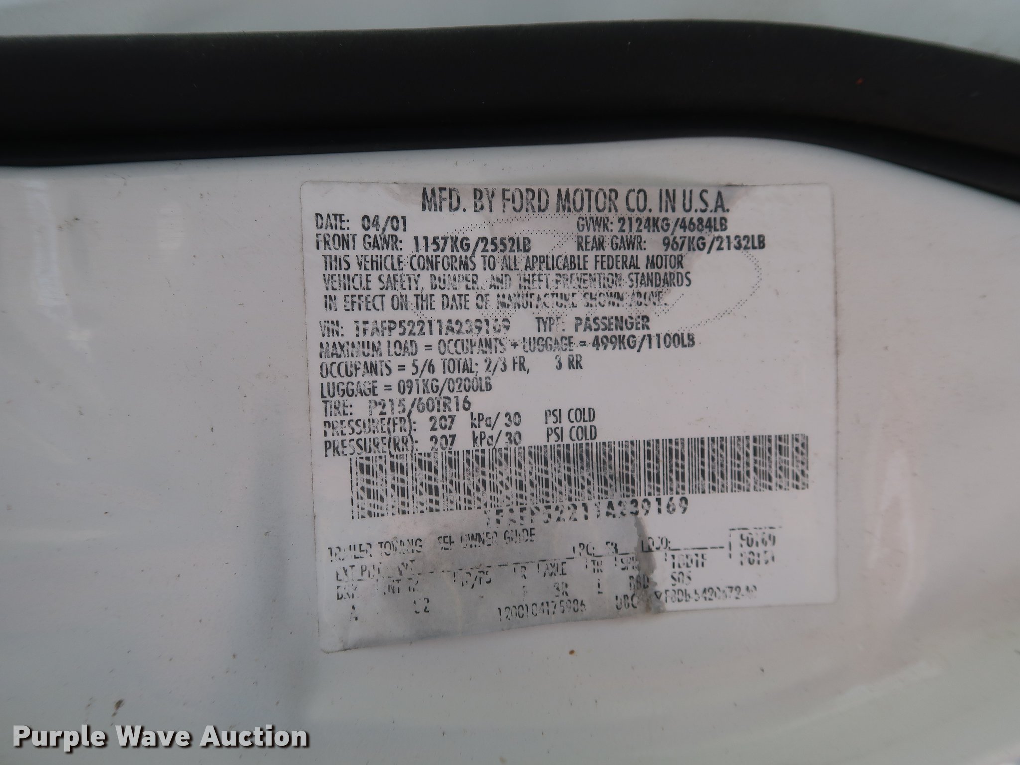 Purple Wave is selling a used Passenger Vehicle in Kansas. This item is a 2001 Ford Taurus with the following: 43,857 miles on odometer, 3.0L V6 OHV 12V FFV gas engine, Automatic transmission, AC and heat, Tilt, Cruise, AM/FM, Power windows, locks, and mirrors, Cloth interior, 215/60R16 tires, Unit# 700